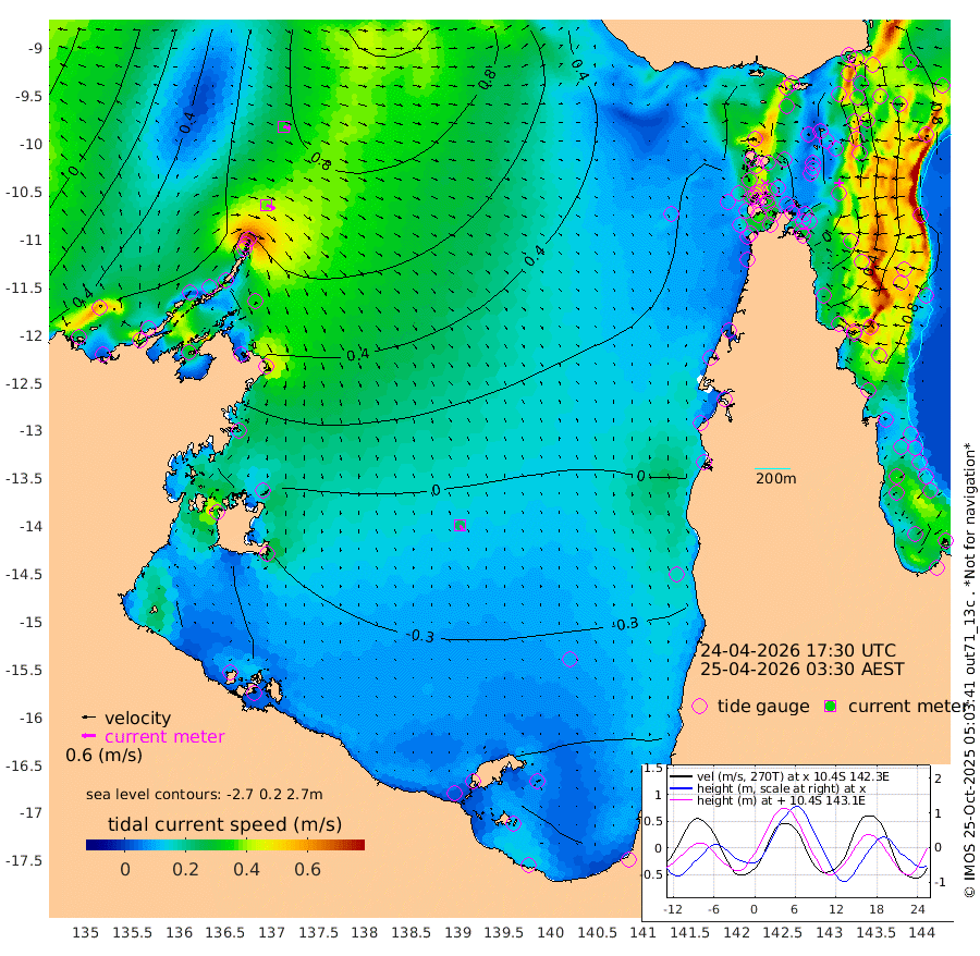 39cm/s 112T +3cm/s rms + 7cm/s -42T. ARA-GOC87 57m 24cm/s 157T +3cm/s rms + 2cm/s -2T. ARA-GOC87 60m 31cm/s 107T +2cm/s rms + 3cm/s 61T. ARA-GOC87 47m 18cm Daru 30cm Bobo Island 69cm Meer Island Barge 59cm Bramble Cay 37cm Unnamed Cay 43cm Pearce Cay 48cm Stephens Island 36cm Merrie England Shoals 16cm Mutacomal Reef 58cm Darnley Island Barge 70cm East Cay 41cm Yorke Island Barge 26cm Rennel Island 32cm Aureed Island 12cm Dungeness Reef -6cm Zagai Island -8cm Yam Island -3cm Dauan Island 2cm Saibai Island -23cm Phipi Reef -5cm Warrior Reef - West -10cm Mabuiag Island Barge 28cm Half Way Island 9cm Coconut Island 21cm Dugong Islet -3cm Poll Island -1cm Kirkcaldie Reef -28cm Suarji Island 3cm Sue Islet 39cm Hawkesbury Island -18cm Alert Patches -12cm Twin Island 22cm Badu Island -20cm St Pauls (Moa Island) 20cm Kubin (Moa Island) -9cm Ince Point -2cm Thursday Island -6cm Nardana Patches 11cm Turtle Head 14cm Round Island 34cm Goods Island 40cm Booby Island 30cm White Rocks Area 41cm Carpentaria -11cm Papou Point 45cm Bampfield Head 29cm Crab Island 36cm Red Wallis Island 25cm Packe Island 8cm Harrington Reef 38cm Herald Camp -18cm Sharp Point 10cm Red Island Point -8cm Possession Island -11cm Alpha Rock -2cm Frederick Point 15cm Wyborn Reef Light 10cm Tetley Island 56cm Triangle Reef 26cm Turtle Head Island 63cm Maclennan Cay 69cm Raine Island 39cm Mcsweeny Reef 44cm Collette Reef 59cm Shadwell Reef 49cm Hannibal Island 59cm Round Point 31cm Vrilya Point 56cm Cape Grenville 63cm Hicks Island 79cm Sir Charles Hardy Island 18cm Harvey Island 68cm Kay Reef 71cm Rocky Island 79cm Chapman Island 77cm Ham Reef 74cm Jubilee Reef 60cm Night Island 75cm Unnamed Reef No. 3 72cm Morris Island 71cm 1st 3 Mile Opening 73cm Creech Reef 71cm Fife Island 93cm Eden Reef 75cm Stanley Island 81cm Normanby River 79cm Yabooma Island 87cm Hutchison River 65cm Elcho Island 54cm North West Crocodile Island 92cm Cape Wessel 78cm Stevens Island 111cm Guluwuru Island 73cm Hopeful Bay 80cm Auster Point 90cm Two Island Bay 123cm Cadell Strait 225cm Mallison Island 85cm Melville Bay (Gove Harbour) 98cm Truant Island 59cm Cape Arnhem 13cm Cape Grey -14cm Hawk Island -60cm Milner Bay (Groote Eylandt) -70cm Cape Beatrice -115cm West Island -118cm Centre Island -113cm Mornington Island -108cm West Wellesley Islands -120cm Bountiful Island -167cm Albert River Mouth -181cm Sweers Island -165cm Karumba -61cm Nassau River Offshore -13cm Christmas Creek 19cm Archer River 33cm Boyd Point 34cm Weipa (Humbug Point) 18cm Pennefather River 34cm Cullen Point