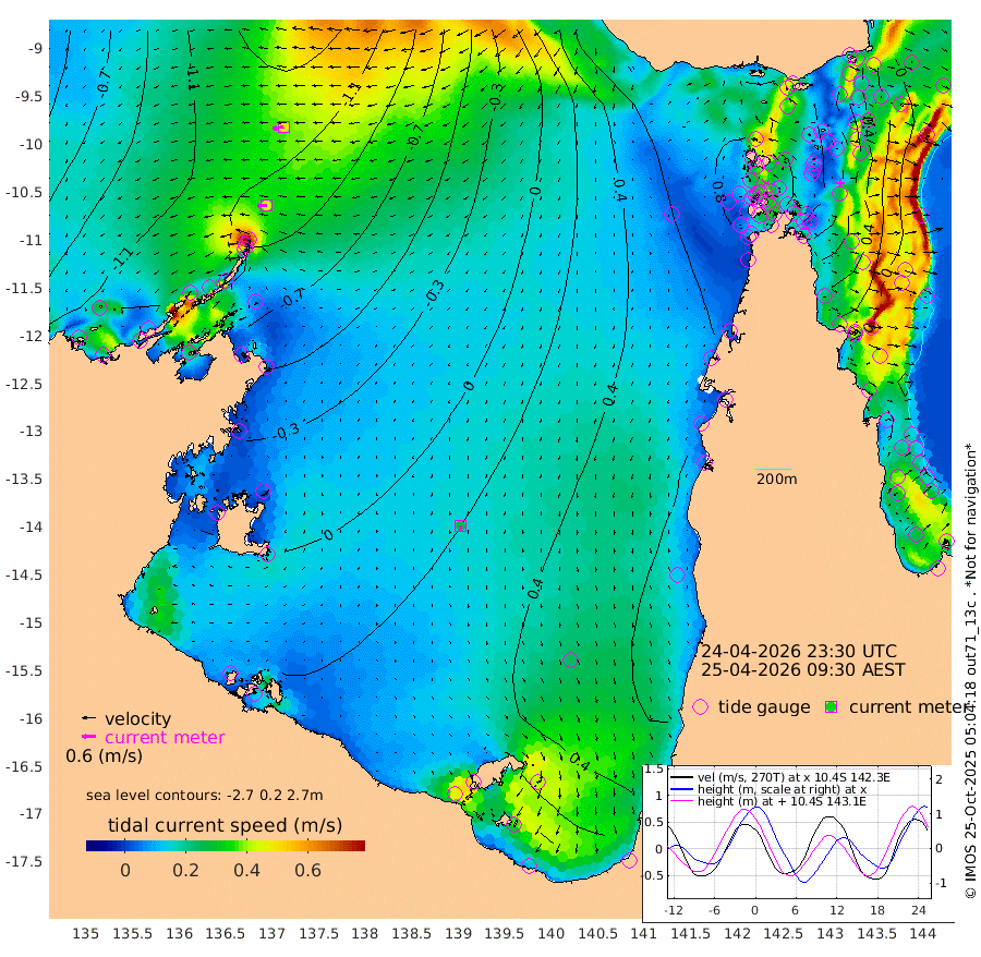 42cm/s -94T +3cm/s rms + 7cm/s -42T. ARA-GOC87 57m 26cm/s -176T +3cm/s rms + 2cm/s -2T. ARA-GOC87 60m 49cm/s -100T +2cm/s rms + 3cm/s 61T. ARA-GOC87 47m 73cm Daru 50cm Bobo Island -8cm Meer Island Barge 12cm Bramble Cay 45cm Unnamed Cay 45cm Pearce Cay 32cm Stephens Island 44cm Merrie England Shoals 75cm Mutacomal Reef 18cm Darnley Island Barge -3cm East Cay 41cm Yorke Island Barge 60cm Rennel Island 49cm Aureed Island 85cm Dungeness Reef 94cm Zagai Island 112cm Yam Island 122cm Dauan Island 104cm Saibai Island 135cm Phipi Reef 113cm Warrior Reef - West 115cm Mabuiag Island Barge 61cm Half Way Island 79cm Coconut Island 77cm Dugong Islet 99cm Poll Island 107cm Kirkcaldie Reef 123cm Suarji Island 91cm Sue Islet 125cm Hawkesbury Island 130cm Alert Patches 123cm Twin Island 126cm Badu Island 133cm St Pauls (Moa Island) 122cm Kubin (Moa Island) 128cm Ince Point 129cm Thursday Island 129cm Nardana Patches 128cm Turtle Head 110cm Round Island 118cm Goods Island 113cm Booby Island 113cm White Rocks Area 76cm Carpentaria 108cm Papou Point 87cm Bampfield Head 98cm Crab Island 117cm Red Wallis Island 130cm Packe Island 86cm Harrington Reef 116cm Herald Camp 44cm Sharp Point 116cm Red Island Point 108cm Possession Island 104cm Alpha Rock 106cm Frederick Point 72cm Wyborn Reef Light 81cm Tetley Island 11cm Triangle Reef 69cm Turtle Head Island 6cm Maclennan Cay -15cm Raine Island 41cm Mcsweeny Reef 29cm Collette Reef 3cm Shadwell Reef 27cm Hannibal Island 15cm Round Point 91cm Vrilya Point 14cm Cape Grenville 4cm Hicks Island 2cm Sir Charles Hardy Island 4cm Harvey Island -4cm Kay Reef -11cm Rocky Island -19cm Chapman Island -19cm Ham Reef -14cm Jubilee Reef -5cm Night Island -14cm Unnamed Reef No. 3 -12cm Morris Island -13cm 1st 3 Mile Opening -12cm Creech Reef -12cm Fife Island -30cm Eden Reef -14cm Stanley Island -19cm Normanby River -135cm Yabooma Island -154cm Hutchison River -138cm Elcho Island -121cm North West Crocodile Island -139cm Cape Wessel -145cm Stevens Island -141cm Guluwuru Island -138cm Hopeful Bay -136cm Auster Point -138cm Two Island Bay -162cm Cadell Strait -214cm Mallison Island -121cm Melville Bay (Gove Harbour) -134cm Truant Island -89cm Cape Arnhem -60cm Cape Grey -42cm Hawk Island -30cm Milner Bay (Groote Eylandt) -6cm Cape Beatrice 30cm West Island 25cm Centre Island 51cm Mornington Island 46cm West Wellesley Islands 53cm Bountiful Island 37cm Albert River Mouth 16cm Sweers Island 57cm Karumba 82cm Nassau River Offshore 87cm Christmas Creek 72cm Archer River 68cm Boyd Point 74cm Weipa (Humbug Point) 71cm Pennefather River 82cm Cullen Point