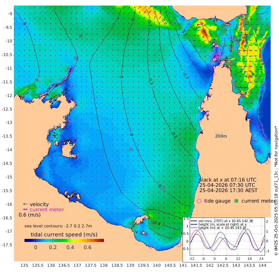 21cm/s 31T +3cm/s rms + 7cm/s -42T. ARA-GOC87 57m 21cm/s -14T +3cm/s rms + 2cm/s -2T. ARA-GOC87 60m 27cm/s 36T +2cm/s rms + 3cm/s 61T. ARA-GOC87 47m -8cm Daru 7cm Bobo Island 35cm Meer Island Barge 33cm Bramble Cay 16cm Unnamed Cay 11cm Pearce Cay 27cm Stephens Island 25cm Merrie England Shoals -7cm Mutacomal Reef 31cm Darnley Island Barge 37cm East Cay 12cm Yorke Island Barge 2cm Rennel Island 7cm Aureed Island -29cm Dungeness Reef -69cm Zagai Island -84cm Yam Island -137cm Dauan Island -124cm Saibai Island -122cm Phipi Reef -83cm Warrior Reef - West -139cm Mabuiag Island Barge 2cm Half Way Island -25cm Coconut Island -13cm Dugong Islet -54cm Poll Island -52cm Kirkcaldie Reef -87cm Suarji Island -52cm Sue Islet -198cm Hawkesbury Island -102cm Alert Patches -96cm Twin Island -190cm Badu Island -111cm St Pauls (Moa Island) -165cm Kubin (Moa Island) -126cm Ince Point -140cm Thursday Island -138cm Nardana Patches -154cm Turtle Head -163cm Round Island -179cm Goods Island -192cm Booby Island -181cm White Rocks Area -149cm Carpentaria -100cm Papou Point -183cm Bampfield Head -160cm Crab Island -185cm Red Wallis Island -171cm Packe Island -14cm Harrington Reef -188cm Herald Camp -29cm Sharp Point -142cm Red Island Point -113cm Possession Island -74cm Alpha Rock -62cm Frederick Point -16cm Wyborn Reef Light -30cm Tetley Island 10cm Triangle Reef -15cm Turtle Head Island 22cm Maclennan Cay 28cm Raine Island 17cm Mcsweeny Reef 23cm Collette Reef 27cm Shadwell Reef 32cm Hannibal Island 32cm Round Point -145cm Vrilya Point 33cm Cape Grenville 31cm Hicks Island 22cm Sir Charles Hardy Island 11cm Harvey Island 39cm Kay Reef 33cm Rocky Island 30cm Chapman Island 31cm Ham Reef 32cm Jubilee Reef 31cm Night Island 31cm Unnamed Reef No. 3 37cm Morris Island 30cm 1st 3 Mile Opening 34cm Creech Reef 47cm Fife Island 50cm Eden Reef 43cm Stanley Island 51cm Normanby River -9cm Yabooma Island -3cm Hutchison River 3cm Elcho Island -6cm North West Crocodile Island 27cm Cape Wessel 18cm Stevens Island 49cm Guluwuru Island 21cm Hopeful Bay 23cm Auster Point 19cm Two Island Bay 24cm Cadell Strait 134cm Mallison Island 41cm Melville Bay (Gove Harbour) 41cm Truant Island 37cm Cape Arnhem 46cm Cape Grey 49cm Hawk Island 66cm Milner Bay (Groote Eylandt) 63cm Cape Beatrice 71cm West Island 71cm Centre Island 79cm Mornington Island 85cm West Wellesley Islands 79cm Bountiful Island 113cm Albert River Mouth 142cm Sweers Island 96cm Karumba 21cm Nassau River Offshore -24cm Christmas Creek -63cm Archer River -84cm Boyd Point -94cm Weipa (Humbug Point) -87cm Pennefather River -133cm Cullen Point