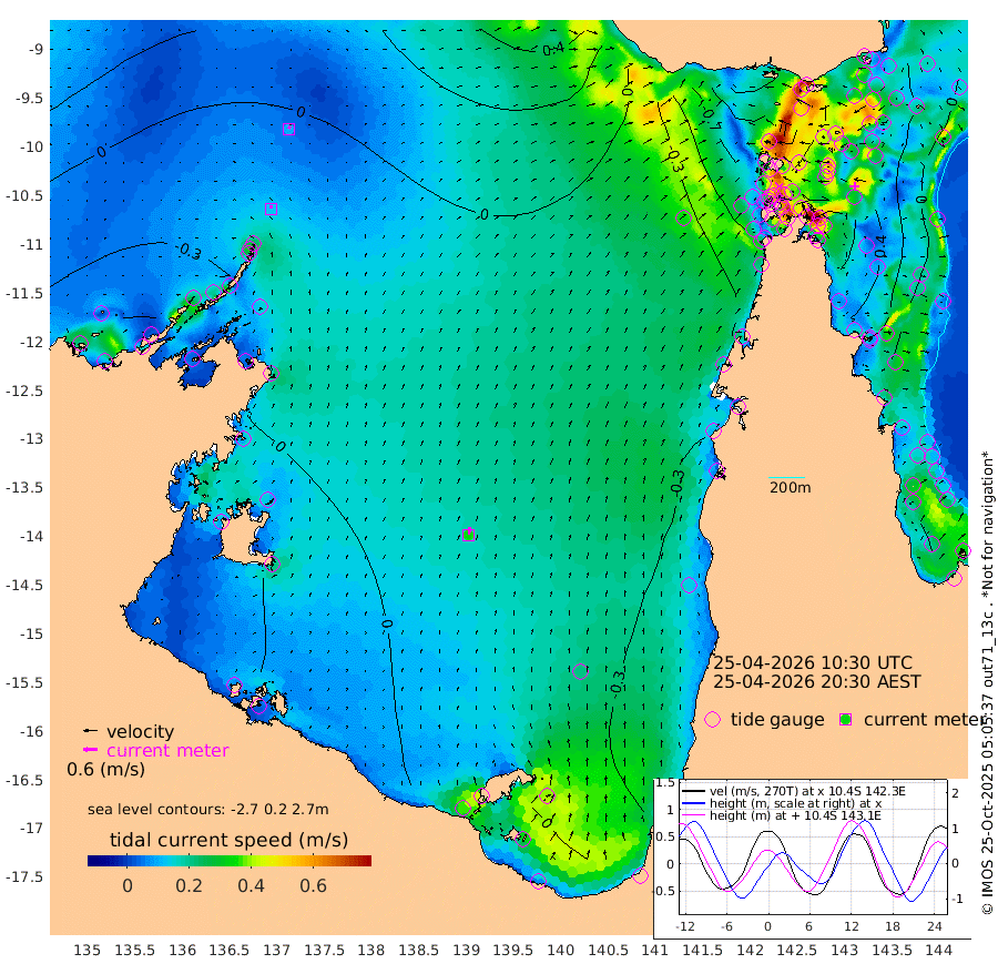 13cm/s -5T +3cm/s rms + 7cm/s -42T. ARA-GOC87 57m 34cm/s 9T +3cm/s rms + 2cm/s -2T. ARA-GOC87 60m 10cm/s 25T +2cm/s rms + 3cm/s 61T. ARA-GOC87 47m 42cm Daru 42cm Bobo Island -1cm Meer Island Barge 16cm Bramble Cay 39cm Unnamed Cay 28cm Pearce Cay 32cm Stephens Island 43cm Merrie England Shoals 48cm Mutacomal Reef 21cm Darnley Island Barge 4cm East Cay 31cm Yorke Island Barge 41cm Rennel Island 33cm Aureed Island 31cm Dungeness Reef 21cm Zagai Island 21cm Yam Island -52cm Dauan Island -39cm Saibai Island -35cm Phipi Reef 0cm Warrior Reef - West -19cm Mabuiag Island Barge 42cm Half Way Island 45cm Coconut Island 42cm Dugong Islet 35cm Poll Island 40cm Kirkcaldie Reef 34cm Suarji Island 32cm Sue Islet -68cm Hawkesbury Island 23cm Alert Patches 27cm Twin Island -66cm Badu Island 22cm St Pauls (Moa Island) -40cm Kubin (Moa Island) 1cm Ince Point -10cm Thursday Island -8cm Nardana Patches -39cm Turtle Head -30cm Round Island -68cm Goods Island -73cm Booby Island -58cm White Rocks Area -33cm Carpentaria 24cm Papou Point -38cm Bampfield Head -58cm Crab Island -68cm Red Wallis Island -54cm Packe Island 63cm Harrington Reef -59cm Herald Camp 12cm Sharp Point -30cm Red Island Point 15cm Possession Island 36cm Alpha Rock 40cm Frederick Point 53cm Wyborn Reef Light 51cm Tetley Island -5cm Triangle Reef 58cm Turtle Head Island 0cm Maclennan Cay -16cm Raine Island 34cm Mcsweeny Reef 26cm Collette Reef -1cm Shadwell Reef 30cm Hannibal Island 18cm Round Point -50cm Vrilya Point 17cm Cape Grenville 8cm Hicks Island -9cm Sir Charles Hardy Island 6cm Harvey Island 5cm Kay Reef -11cm Rocky Island -24cm Chapman Island -18cm Ham Reef -13cm Jubilee Reef -6cm Night Island -17cm Unnamed Reef No. 3 -8cm Morris Island -12cm 1st 3 Mile Opening -11cm Creech Reef -7cm Fife Island -21cm Eden Reef -6cm Stanley Island -2cm Normanby River -42cm Yabooma Island -49cm Hutchison River -38cm Elcho Island -38cm North West Crocodile Island -10cm Cape Wessel -23cm Stevens Island -20cm Guluwuru Island -28cm Hopeful Bay -11cm Auster Point -18cm Two Island Bay -55cm Cadell Strait -56cm Mallison Island -16cm Melville Bay (Gove Harbour) -13cm Truant Island -7cm Cape Arnhem 15cm Cape Grey 17cm Hawk Island 49cm Milner Bay (Groote Eylandt) 39cm Cape Beatrice 65cm West Island 69cm Centre Island 13cm Mornington Island 13cm West Wellesley Islands -10cm Bountiful Island -4cm Albert River Mouth 22cm Sweers Island -7cm Karumba -43cm Nassau River Offshore -64cm Christmas Creek -69cm Archer River -61cm Boyd Point -79cm Weipa (Humbug Point) -41cm Pennefather River -59cm Cullen Point