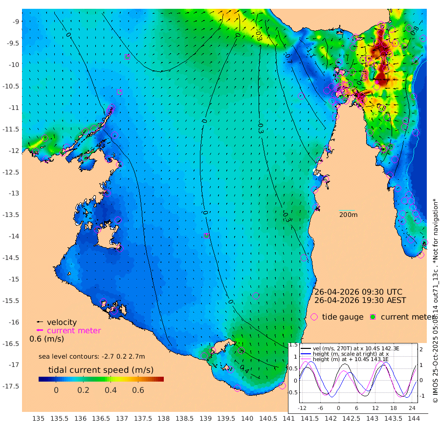 17cm/s 34T +3cm/s rms + 7cm/s -42T. ARA-GOC87 57m 24cm/s 0T +3cm/s rms + 2cm/s -2T. ARA-GOC87 60m 21cm/s 42T +2cm/s rms + 3cm/s 61T. ARA-GOC87 47m 63cm Daru 75cm Bobo Island 56cm Meer Island Barge 71cm Bramble Cay 76cm Unnamed Cay 72cm Pearce Cay 81cm Stephens Island 85cm Merrie England Shoals 67cm Mutacomal Reef 73cm Darnley Island Barge 65cm East Cay 66cm Yorke Island Barge 70cm Rennel Island 68cm Aureed Island 42cm Dungeness Reef -1cm Zagai Island -10cm Yam Island -96cm Dauan Island -86cm Saibai Island -70cm Phipi Reef -19cm Warrior Reef - West -84cm Mabuiag Island Barge 69cm Half Way Island 54cm Coconut Island 59cm Dugong Islet 23cm Poll Island 30cm Kirkcaldie Reef -2cm Suarji Island 17cm Sue Islet -143cm Hawkesbury Island -19cm Alert Patches -12cm Twin Island -135cm Badu Island -28cm St Pauls (Moa Island) -102cm Kubin (Moa Island) -51cm Ince Point -69cm Thursday Island -66cm Nardana Patches -92cm Turtle Head -100cm Round Island -127cm Goods Island -143cm Booby Island -126cm White Rocks Area -105cm Carpentaria -22cm Papou Point -119cm Bampfield Head -119cm Crab Island -136cm Red Wallis Island -111cm Packe Island 74cm Harrington Reef -134cm Herald Camp -6cm Sharp Point -82cm Red Island Point -37cm Possession Island 1cm Alpha Rock 22cm Frederick Point 62cm Wyborn Reef Light 51cm Tetley Island 36cm Triangle Reef 70cm Turtle Head Island 49cm Maclennan Cay 39cm Raine Island 73cm Mcsweeny Reef 69cm Collette Reef 49cm Shadwell Reef 81cm Hannibal Island 74cm Round Point -109cm Vrilya Point 69cm Cape Grenville 63cm Hicks Island 48cm Sir Charles Hardy Island 22cm Harvey Island 64cm Kay Reef 48cm Rocky Island 38cm Chapman Island 39cm Ham Reef 45cm Jubilee Reef 47cm Night Island 42cm Unnamed Reef No. 3 54cm Morris Island 44cm 1st 3 Mile Opening 48cm Creech Reef 61cm Fife Island 58cm Eden Reef 57cm Stanley Island 69cm Normanby River -23cm Yabooma Island -14cm Hutchison River -13cm Elcho Island -19cm North West Crocodile Island 19cm Cape Wessel 5cm Stevens Island 34cm Guluwuru Island 2cm Hopeful Bay 14cm Auster Point 6cm Two Island Bay 0cm Cadell Strait 68cm Mallison Island 28cm Melville Bay (Gove Harbour) 30cm Truant Island 28cm Cape Arnhem 39cm Cape Grey 38cm Hawk Island 55cm Milner Bay (Groote Eylandt) 50cm Cape Beatrice 61cm West Island 63cm Centre Island 52cm Mornington Island 55cm West Wellesley Islands 38cm Bountiful Island 54cm Albert River Mouth 80cm Sweers Island 46cm Karumba -2cm Nassau River Offshore -34cm Christmas Creek -62cm Archer River -73cm Boyd Point -87cm Weipa (Humbug Point) -67cm Pennefather River -108cm Cullen Point