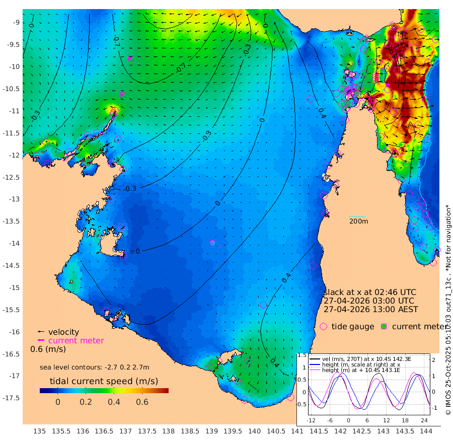 25cm/s -95T +3cm/s rms + 7cm/s -42T. ARA-GOC87 57m 12cm/s -141T +3cm/s rms + 2cm/s -2T. ARA-GOC87 60m 27cm/s -99T +2cm/s rms + 3cm/s 61T. ARA-GOC87 47m -76cm Daru -92cm Bobo Island -98cm Meer Island Barge -110cm Bramble Cay -103cm Unnamed Cay -97cm Pearce Cay -110cm Stephens Island -110cm Merrie England Shoals -84cm Mutacomal Reef -104cm Darnley Island Barge -110cm East Cay -89cm Yorke Island Barge -89cm Rennel Island -85cm Aureed Island -53cm Dungeness Reef -2cm Zagai Island -1cm Yam Island 80cm Dauan Island 67cm Saibai Island 72cm Phipi Reef 14cm Warrior Reef - West 60cm Mabuiag Island Barge -86cm Half Way Island -64cm Coconut Island -75cm Dugong Islet -30cm Poll Island -37cm Kirkcaldie Reef 1cm Suarji Island -26cm Sue Islet 59cm Hawkesbury Island 10cm Alert Patches 0cm Twin Island 73cm Badu Island 21cm St Pauls (Moa Island) 43cm Kubin (Moa Island) 29cm Ince Point 38cm Thursday Island 38cm Nardana Patches 46cm Turtle Head 37cm Round Island 54cm Goods Island 62cm Booby Island 48cm White Rocks Area 35cm Carpentaria 9cm Papou Point 20cm Bampfield Head 60cm Crab Island 59cm Red Wallis Island 45cm Packe Island -83cm Harrington Reef 44cm Herald Camp 16cm Sharp Point 42cm Red Island Point 12cm Possession Island -14cm Alpha Rock -34cm Frederick Point -82cm Wyborn Reef Light -69cm Tetley Island -75cm Triangle Reef -90cm Turtle Head Island -92cm Maclennan Cay -85cm Raine Island -97cm Mcsweeny Reef -97cm Collette Reef -86cm Shadwell Reef -111cm Hannibal Island -115cm Round Point 58cm Vrilya Point -108cm Cape Grenville -105cm Hicks Island -106cm Sir Charles Hardy Island -33cm Harvey Island -111cm Kay Reef -96cm Rocky Island -93cm Chapman Island -91cm Ham Reef -93cm Jubilee Reef -85cm Night Island -93cm Unnamed Reef No. 3 -102cm Morris Island -90cm 1st 3 Mile Opening -95cm Creech Reef -105cm Fife Island -116cm Eden Reef -106cm Stanley Island -122cm Normanby River -78cm Yabooma Island -88cm Hutchison River -69cm Elcho Island -57cm North West Crocodile Island -99cm Cape Wessel -88cm Stevens Island -103cm Guluwuru Island -82cm Hopeful Bay -90cm Auster Point -89cm Two Island Bay -94cm Cadell Strait -175cm Mallison Island -87cm Melville Bay (Gove Harbour) -99cm Truant Island -63cm Cape Arnhem -40cm Cape Grey -21cm Hawk Island -3cm Milner Bay (Groote Eylandt) 11cm Cape Beatrice 34cm West Island 36cm Centre Island 54cm Mornington Island 48cm West Wellesley Islands 60cm Bountiful Island 94cm Albert River Mouth 80cm Sweers Island 97cm Karumba 59cm Nassau River Offshore 48cm Christmas Creek 41cm Archer River 35cm Boyd Point 42cm Weipa (Humbug Point) 46cm Pennefather River 51cm Cullen Point