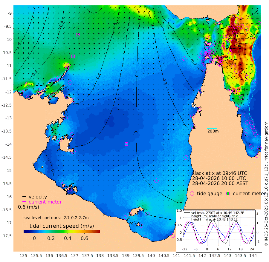 21cm/s 81T +3cm/s rms + 7cm/s -42T. ARA-GOC87 57m 12cm/s -13T +3cm/s rms + 2cm/s -2T. ARA-GOC87 60m 25cm/s 74T +2cm/s rms + 3cm/s 61T. ARA-GOC87 47m 78cm Daru 96cm Bobo Island 86cm Meer Island Barge 102cm Bramble Cay 95cm Unnamed Cay 102cm Pearce Cay 104cm Stephens Island 106cm Merrie England Shoals 81cm Mutacomal Reef 95cm Darnley Island Barge 99cm East Cay 83cm Yorke Island Barge 88cm Rennel Island 87cm Aureed Island 57cm Dungeness Reef 6cm Zagai Island -5cm Yam Island -77cm Dauan Island -73cm Saibai Island -46cm Phipi Reef -5cm Warrior Reef - West -73cm Mabuiag Island Barge 82cm Half Way Island 71cm Coconut Island 68cm Dugong Islet 31cm Poll Island 37cm Kirkcaldie Reef 3cm Suarji Island 20cm Sue Islet -101cm Hawkesbury Island -9cm Alert Patches -4cm Twin Island -88cm Badu Island -25cm St Pauls (Moa Island) -73cm Kubin (Moa Island) -39cm Ince Point -53cm Thursday Island -51cm Nardana Patches -60cm Turtle Head -74cm Round Island -81cm Goods Island -100cm Booby Island -83cm White Rocks Area -90cm Carpentaria -16cm Papou Point -84cm Bampfield Head -81cm Crab Island -95cm Red Wallis Island -73cm Packe Island 84cm Harrington Reef -105cm Herald Camp -13cm Sharp Point -50cm Red Island Point -26cm Possession Island 1cm Alpha Rock 32cm Frederick Point 75cm Wyborn Reef Light 61cm Tetley Island 65cm Triangle Reef 84cm Turtle Head Island 77cm Maclennan Cay 76cm Raine Island 93cm Mcsweeny Reef 92cm Collette Reef 77cm Shadwell Reef 106cm Hannibal Island 108cm Round Point -80cm Vrilya Point 95cm Cape Grenville 93cm Hicks Island 80cm Sir Charles Hardy Island 29cm Harvey Island 96cm Kay Reef 82cm Rocky Island 80cm Chapman Island 74cm Ham Reef 79cm Jubilee Reef 76cm Night Island 80cm Unnamed Reef No. 3 90cm Morris Island 76cm 1st 3 Mile Opening 82cm Creech Reef 97cm Fife Island 102cm Eden Reef 90cm Stanley Island 105cm Normanby River 45cm Yabooma Island 75cm Hutchison River 58cm Elcho Island 46cm North West Crocodile Island 60cm Cape Wessel 66cm Stevens Island 80cm Guluwuru Island 57cm Hopeful Bay 59cm Auster Point 47cm Two Island Bay 78cm Cadell Strait 117cm Mallison Island 69cm Melville Bay (Gove Harbour) 72cm Truant Island 53cm Cape Arnhem 45cm Cape Grey 37cm Hawk Island 26cm Milner Bay (Groote Eylandt) 24cm Cape Beatrice 6cm West Island 8cm Centre Island 30cm Mornington Island 29cm West Wellesley Islands 22cm Bountiful Island 37cm Albert River Mouth 50cm Sweers Island 31cm Karumba 6cm Nassau River Offshore -11cm Christmas Creek -26cm Archer River -43cm Boyd Point -48cm Weipa (Humbug Point) -42cm Pennefather River -82cm Cullen Point