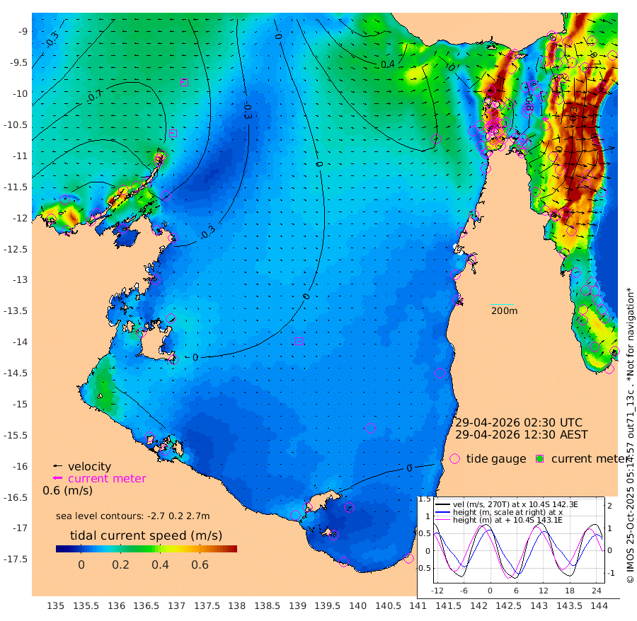 16cm/s -77T +3cm/s rms + 7cm/s -42T. ARA-GOC87 57m 9cm/s 168T +3cm/s rms + 2cm/s -2T. ARA-GOC87 60m 20cm/s -83T +2cm/s rms + 3cm/s 61T. ARA-GOC87 47m 5cm Daru -7cm Bobo Island -60cm Meer Island Barge -57cm Bramble Cay -30cm Unnamed Cay -20cm Pearce Cay -37cm Stephens Island -38cm Merrie England Shoals -3cm Mutacomal Reef -37cm Darnley Island Barge -69cm East Cay -13cm Yorke Island Barge -13cm Rennel Island -6cm Aureed Island 18cm Dungeness Reef 59cm Zagai Island 62cm Yam Island 87cm Dauan Island 81cm Saibai Island 78cm Phipi Reef 67cm Warrior Reef - West 68cm Mabuiag Island Barge -4cm Half Way Island 12cm Coconut Island 11cm Dugong Islet 41cm Poll Island 37cm Kirkcaldie Reef 58cm Suarji Island 44cm Sue Islet 28cm Hawkesbury Island 55cm Alert Patches 57cm Twin Island 31cm Badu Island 76cm St Pauls (Moa Island) 39cm Kubin (Moa Island) 57cm Ince Point 52cm Thursday Island 55cm Nardana Patches 33cm Turtle Head 23cm Round Island 10cm Goods Island 6cm Booby Island 0cm White Rocks Area 11cm Carpentaria 59cm Papou Point -19cm Bampfield Head 9cm Crab Island 13cm Red Wallis Island 26cm Packe Island 13cm Harrington Reef 17cm Herald Camp 35cm Sharp Point 33cm Red Island Point 41cm Possession Island 48cm Alpha Rock 38cm Frederick Point 3cm Wyborn Reef Light 15cm Tetley Island -40cm Triangle Reef 2cm Turtle Head Island -53cm Maclennan Cay -73cm Raine Island -28cm Mcsweeny Reef -38cm Collette Reef -56cm Shadwell Reef -46cm Hannibal Island -61cm Round Point 16cm Vrilya Point -58cm Cape Grenville -61cm Hicks Island -66cm Sir Charles Hardy Island -16cm Harvey Island -76cm Kay Reef -73cm Rocky Island -82cm Chapman Island -75cm Ham Reef -71cm Jubilee Reef -60cm Night Island -76cm Unnamed Reef No. 3 -78cm Morris Island -74cm 1st 3 Mile Opening -72cm Creech Reef -76cm Fife Island -95cm Eden Reef -80cm Stanley Island -87cm Normanby River -121cm Yabooma Island -135cm Hutchison River -117cm Elcho Island -102cm North West Crocodile Island -86cm Cape Wessel -110cm Stevens Island -80cm Guluwuru Island -110cm Hopeful Bay -93cm Auster Point -79cm Two Island Bay -103cm Cadell Strait -115cm Mallison Island -75cm Melville Bay (Gove Harbour) -79cm Truant Island -49cm Cape Arnhem -33cm Cape Grey -17cm Hawk Island -4cm Milner Bay (Groote Eylandt) 5cm Cape Beatrice 34cm West Island 34cm Centre Island 22cm Mornington Island 16cm West Wellesley Islands 2cm Bountiful Island 7cm Albert River Mouth 4cm Sweers Island 18cm Karumba 16cm Nassau River Offshore 6cm Christmas Creek -8cm Archer River -1cm Boyd Point -12cm Weipa (Humbug Point) 11cm Pennefather River 12cm Cullen Point