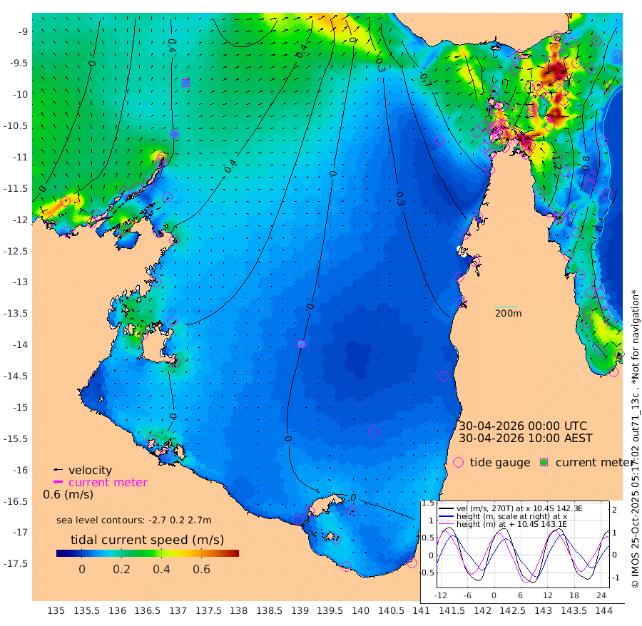 8cm/s 54T +3cm/s rms + 7cm/s -42T. ARA-GOC87 57m 12cm/s -176T +3cm/s rms + 2cm/s -2T. ARA-GOC87 60m 9cm/s 24T +2cm/s rms + 3cm/s 61T. ARA-GOC87 47m 111cm Daru 117cm Bobo Island 57cm Meer Island Barge 86cm Bramble Cay 103cm Unnamed Cay 112cm Pearce Cay 100cm Stephens Island 104cm Merrie England Shoals 116cm Mutacomal Reef 88cm Darnley Island Barge 68cm East Cay 97cm Yorke Island Barge 104cm Rennel Island 106cm Aureed Island 97cm Dungeness Reef 79cm Zagai Island 82cm Yam Island 31cm Dauan Island 31cm Saibai Island 39cm Phipi Reef 85cm Warrior Reef - West 10cm Mabuiag Island Barge 103cm Half Way Island 101cm Coconut Island 106cm Dugong Islet 92cm Poll Island 89cm Kirkcaldie Reef 71cm Suarji Island 80cm Sue Islet -37cm Hawkesbury Island 51cm Alert Patches 65cm Twin Island -39cm Badu Island 61cm St Pauls (Moa Island) -3cm Kubin (Moa Island) 31cm Ince Point 11cm Thursday Island 16cm Nardana Patches -11cm Turtle Head -24cm Round Island -49cm Goods Island -80cm Booby Island -62cm White Rocks Area -83cm Carpentaria 52cm Papou Point -79cm Bampfield Head -77cm Crab Island -61cm Red Wallis Island -13cm Packe Island 116cm Harrington Reef -45cm Herald Camp 18cm Sharp Point -10cm Red Island Point 22cm Possession Island 72cm Alpha Rock 89cm Frederick Point 113cm Wyborn Reef Light 110cm Tetley Island 58cm Triangle Reef 105cm Turtle Head Island 57cm Maclennan Cay 30cm Raine Island 96cm Mcsweeny Reef 84cm Collette Reef 51cm Shadwell Reef 95cm Hannibal Island 90cm Round Point -83cm Vrilya Point 75cm Cape Grenville 67cm Hicks Island 66cm Sir Charles Hardy Island 23cm Harvey Island 61cm Kay Reef 46cm Rocky Island 38cm Chapman Island 35cm Ham Reef 40cm Jubilee Reef 45cm Night Island 38cm Unnamed Reef No. 3 48cm Morris Island 27cm 1st 3 Mile Opening 40cm Creech Reef 55cm Fife Island 49cm Eden Reef 44cm Stanley Island 62cm Normanby River 38cm Yabooma Island 59cm Hutchison River 42cm Elcho Island 44cm North West Crocodile Island 56cm Cape Wessel 54cm Stevens Island 67cm Guluwuru Island 43cm Hopeful Bay 43cm Auster Point 56cm Two Island Bay 76cm Cadell Strait 106cm Mallison Island 58cm Melville Bay (Gove Harbour) 60cm Truant Island 41cm Cape Arnhem 22cm Cape Grey 26cm Hawk Island 0cm Milner Bay (Groote Eylandt) 5cm Cape Beatrice -8cm West Island -17cm Centre Island 9cm Mornington Island 3cm West Wellesley Islands 9cm Bountiful Island 3cm Albert River Mouth 1cm Sweers Island 6cm Karumba 9cm Nassau River Offshore -4cm Christmas Creek -37cm Archer River -41cm Boyd Point -48cm Weipa (Humbug Point) -60cm Pennefather River -65cm Cullen Point