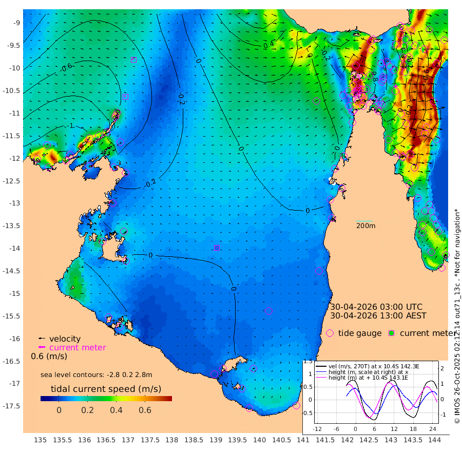 12cm/s -57T +3cm/s rms + 7cm/s -42T. ARA-GOC87 57m 4cm/s 137T +3cm/s rms + 2cm/s -2T. ARA-GOC87 60m 15cm/s -64T +2cm/s rms + 3cm/s 61T. ARA-GOC87 47m -12cm Daru -20cm Bobo Island -63cm Meer Island Barge -64cm Bramble Cay -42cm Unnamed Cay -33cm Pearce Cay -46cm Stephens Island -50cm Merrie England Shoals -20cm Mutacomal Reef -44cm Darnley Island Barge -73cm East Cay -23cm Yorke Island Barge -28cm Rennel Island -17cm Aureed Island -1cm Dungeness Reef 38cm Zagai Island 38cm Yam Island 57cm Dauan Island 55cm Saibai Island 43cm Phipi Reef 42cm Warrior Reef - West 39cm Mabuiag Island Barge -18cm Half Way Island -6cm Coconut Island -5cm Dugong Islet 20cm Poll Island 14cm Kirkcaldie Reef 32cm Suarji Island 24cm Sue Islet -12cm Hawkesbury Island 25cm Alert Patches 30cm Twin Island -10cm Badu Island 47cm St Pauls (Moa Island) 5cm Kubin (Moa Island) 27cm Ince Point 20cm Thursday Island 23cm Nardana Patches -2cm Turtle Head -10cm Round Island -28cm Goods Island -31cm Booby Island -36cm White Rocks Area -10cm Carpentaria 34cm Papou Point -51cm Bampfield Head -23cm Crab Island -21cm Red Wallis Island -9cm Packe Island -5cm Harrington Reef -17cm Herald Camp 27cm Sharp Point -2cm Red Island Point 14cm Possession Island 27cm Alpha Rock 15cm Frederick Point -14cm Wyborn Reef Light -3cm Tetley Island -46cm Triangle Reef -15cm Turtle Head Island -58cm Maclennan Cay -77cm Raine Island -38cm Mcsweeny Reef -47cm Collette Reef -61cm Shadwell Reef -55cm Hannibal Island -69cm Round Point -12cm Vrilya Point -65cm Cape Grenville -67cm Hicks Island -72cm Sir Charles Hardy Island -18cm Harvey Island -81cm Kay Reef -77cm Rocky Island -84cm Chapman Island -77cm Ham Reef -74cm Jubilee Reef -63cm Night Island -79cm Unnamed Reef No. 3 -81cm Morris Island -78cm 1st 3 Mile Opening -76cm Creech Reef -77cm Fife Island -96cm Eden Reef -83cm Stanley Island -88cm Normanby River -116cm Yabooma Island -131cm Hutchison River -110cm Elcho Island -98cm North West Crocodile Island -68cm Cape Wessel -99cm Stevens Island -63cm Guluwuru Island -98cm Hopeful Bay -79cm Auster Point -64cm Two Island Bay -92cm Cadell Strait -77cm Mallison Island -61cm Melville Bay (Gove Harbour) -63cm Truant Island -37cm Cape Arnhem -25cm Cape Grey -9cm Hawk Island 7cm Milner Bay (Groote Eylandt) 12cm Cape Beatrice 41cm West Island 41cm Centre Island 19cm Mornington Island 16cm West Wellesley Islands -5cm Bountiful Island 5cm Albert River Mouth 8cm Sweers Island 10cm Karumba 2cm Nassau River Offshore -13cm Christmas Creek -30cm Archer River -20cm Boyd Point -36cm Weipa (Humbug Point) -11cm Pennefather River -12cm Cullen Point