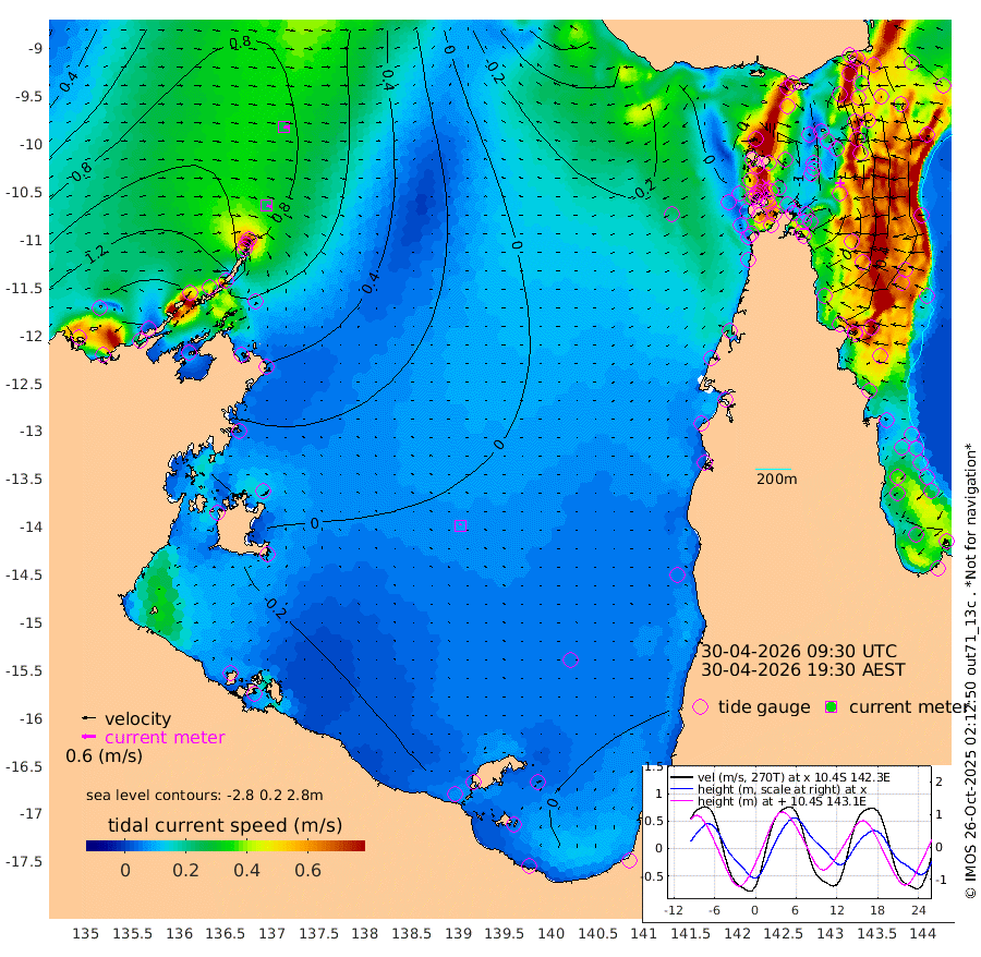 24cm/s 112T +3cm/s rms + 7cm/s -42T. ARA-GOC87 57m 8cm/s -31T +3cm/s rms + 2cm/s -2T. ARA-GOC87 60m 26cm/s 102T +2cm/s rms + 3cm/s 61T. ARA-GOC87 47m 4cm Daru 17cm Bobo Island 54cm Meer Island Barge 58cm Bramble Cay 31cm Unnamed Cay 33cm Pearce Cay 39cm Stephens Island 45cm Merrie England Shoals 9cm Mutacomal Reef 35cm Darnley Island Barge 65cm East Cay 14cm Yorke Island Barge 19cm Rennel Island 9cm Aureed Island -13cm Dungeness Reef -59cm Zagai Island -63cm Yam Island -91cm Dauan Island -90cm Saibai Island -69cm Phipi Reef -65cm Warrior Reef - West -68cm Mabuiag Island Barge 11cm Half Way Island -2cm Coconut Island -8cm Dugong Islet -35cm Poll Island -28cm Kirkcaldie Reef -63cm Suarji Island -41cm Sue Islet -10cm Hawkesbury Island -46cm Alert Patches -50cm Twin Island -17cm Badu Island -71cm St Pauls (Moa Island) -33cm Kubin (Moa Island) -51cm Ince Point -47cm Thursday Island -49cm Nardana Patches -27cm Turtle Head -20cm Round Island -4cm Goods Island -2cm Booby Island 1cm White Rocks Area -23cm Carpentaria -51cm Papou Point 4cm Bampfield Head 7cm Crab Island -9cm Red Wallis Island -21cm Packe Island -3cm Harrington Reef -28cm Herald Camp -33cm Sharp Point -13cm Red Island Point -35cm Possession Island -48cm Alpha Rock -29cm Frederick Point 5cm Wyborn Reef Light -7cm Tetley Island 37cm Triangle Reef 16cm Turtle Head Island 44cm Maclennan Cay 67cm Raine Island 30cm Mcsweeny Reef 39cm Collette Reef 51cm Shadwell Reef 48cm Hannibal Island 66cm Round Point 4cm Vrilya Point 54cm Cape Grenville 56cm Hicks Island 47cm Sir Charles Hardy Island 15cm Harvey Island 70cm Kay Reef 64cm Rocky Island 72cm Chapman Island 64cm Ham Reef 63cm Jubilee Reef 54cm Night Island 68cm Unnamed Reef No. 3 70cm Morris Island 62cm 1st 3 Mile Opening 63cm Creech Reef 72cm Fife Island 85cm Eden Reef 71cm Stanley Island 79cm Normanby River 141cm Yabooma Island 169cm Hutchison River 146cm Elcho Island 135cm North West Crocodile Island 88cm Cape Wessel 135cm Stevens Island 81cm Guluwuru Island 128cm Hopeful Bay 106cm Auster Point 94cm Two Island Bay 141cm Cadell Strait 96cm Mallison Island 78cm Melville Bay (Gove Harbour) 80cm Truant Island 47cm Cape Arnhem 30cm Cape Grey 19cm Hawk Island -8cm Milner Bay (Groote Eylandt) -12cm Cape Beatrice -53cm West Island -51cm Centre Island -27cm Mornington Island -32cm West Wellesley Islands -29cm Bountiful Island -12cm Albert River Mouth -7cm Sweers Island -10cm Karumba -18cm Nassau River Offshore -11cm Christmas Creek 15cm Archer River 0cm Boyd Point 9cm Weipa (Humbug Point) 15cm Pennefather River -10cm Cullen Point