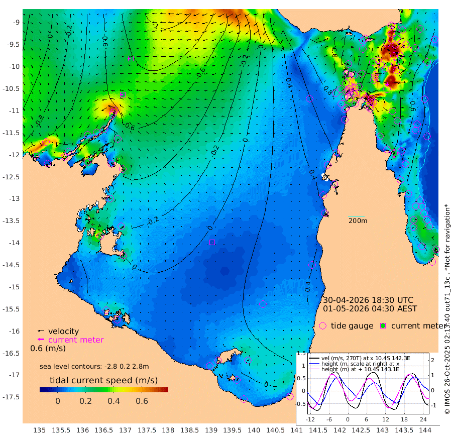 27cm/s -89T +3cm/s rms + 7cm/s -42T. ARA-GOC87 57m 2cm/s 178T +3cm/s rms + 2cm/s -2T. ARA-GOC87 60m 27cm/s -103T +2cm/s rms + 3cm/s 61T. ARA-GOC87 47m -83cm Daru -97cm Bobo Island -43cm Meer Island Barge -67cm Bramble Cay -75cm Unnamed Cay -93cm Pearce Cay -77cm Stephens Island -80cm Merrie England Shoals -83cm Mutacomal Reef -68cm Darnley Island Barge -52cm East Cay -74cm Yorke Island Barge -78cm Rennel Island -84cm Aureed Island -68cm Dungeness Reef -54cm Zagai Island -43cm Yam Island 3cm Dauan Island 0cm Saibai Island -14cm Phipi Reef -51cm Warrior Reef - West 14cm Mabuiag Island Barge -76cm Half Way Island -82cm Coconut Island -72cm Dugong Islet -63cm Poll Island -59cm Kirkcaldie Reef -40cm Suarji Island -53cm Sue Islet 59cm Hawkesbury Island -28cm Alert Patches -39cm Twin Island 50cm Badu Island -31cm St Pauls (Moa Island) 31cm Kubin (Moa Island) -5cm Ince Point 13cm Thursday Island 9cm Nardana Patches 33cm Turtle Head 45cm Round Island 66cm Goods Island 91cm Booby Island 78cm White Rocks Area 85cm Carpentaria -31cm Papou Point 87cm Bampfield Head 72cm Crab Island 77cm Red Wallis Island 42cm Packe Island -89cm Harrington Reef 81cm Herald Camp -9cm Sharp Point 21cm Red Island Point -7cm Possession Island -40cm Alpha Rock -62cm Frederick Point -86cm Wyborn Reef Light -82cm Tetley Island -43cm Triangle Reef -89cm Turtle Head Island -38cm Maclennan Cay -23cm Raine Island -73cm Mcsweeny Reef -66cm Collette Reef -38cm Shadwell Reef -74cm Hannibal Island -71cm Round Point 72cm Vrilya Point -53cm Cape Grenville -49cm Hicks Island -36cm Sir Charles Hardy Island -17cm Harvey Island -43cm Kay Reef -31cm Rocky Island -27cm Chapman Island -24cm Ham Reef -28cm Jubilee Reef -32cm Night Island -28cm Unnamed Reef No. 3 -34cm Morris Island -18cm 1st 3 Mile Opening -28cm Creech Reef -42cm Fife Island -37cm Eden Reef -30cm Stanley Island -44cm Normanby River -45cm Yabooma Island -81cm Hutchison River -63cm Elcho Island -58cm North West Crocodile Island -71cm Cape Wessel -76cm Stevens Island -88cm Guluwuru Island -61cm Hopeful Bay -65cm Auster Point -68cm Two Island Bay -104cm Cadell Strait -130cm Mallison Island -75cm Melville Bay (Gove Harbour) -81cm Truant Island -56cm Cape Arnhem -34cm Cape Grey -35cm Hawk Island -5cm Milner Bay (Groote Eylandt) -2cm Cape Beatrice 24cm West Island 23cm Centre Island 9cm Mornington Island 19cm West Wellesley Islands 37cm Bountiful Island 19cm Albert River Mouth 10cm Sweers Island 15cm Karumba 24cm Nassau River Offshore 35cm Christmas Creek 44cm Archer River 51cm Boyd Point 64cm Weipa (Humbug Point) 41cm Pennefather River 73cm Cullen Point