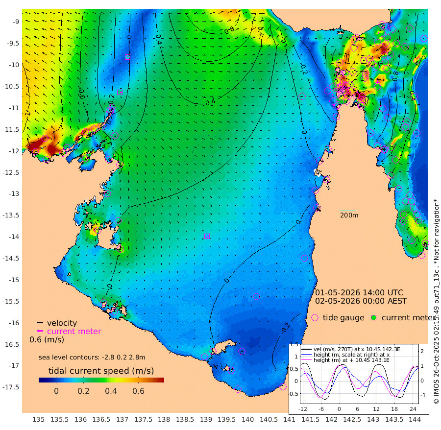 20cm/s 100T +3cm/s rms + 7cm/s -42T. ARA-GOC87 57m 11cm/s 137T +3cm/s rms + 2cm/s -2T. ARA-GOC87 60m 16cm/s 89T +2cm/s rms + 3cm/s 61T. ARA-GOC87 47m 115cm Daru 122cm Bobo Island 53cm Meer Island Barge 70cm Bramble Cay 93cm Unnamed Cay 111cm Pearce Cay 92cm Stephens Island 87cm Merrie England Shoals 107cm Mutacomal Reef 89cm Darnley Island Barge 58cm East Cay 105cm Yorke Island Barge 102cm Rennel Island 119cm Aureed Island 115cm Dungeness Reef 127cm Zagai Island 113cm Yam Island 95cm Dauan Island 99cm Saibai Island 108cm Phipi Reef 127cm Warrior Reef - West 71cm Mabuiag Island Barge 100cm Half Way Island 126cm Coconut Island 108cm Dugong Islet 117cm Poll Island 113cm Kirkcaldie Reef 128cm Suarji Island 115cm Sue Islet 8cm Hawkesbury Island 105cm Alert Patches 111cm Twin Island 34cm Badu Island 113cm St Pauls (Moa Island) 40cm Kubin (Moa Island) 83cm Ince Point 68cm Thursday Island 72cm Nardana Patches 48cm Turtle Head 29cm Round Island 13cm Goods Island -7cm Booby Island -1cm White Rocks Area 4cm Carpentaria 99cm Papou Point 13cm Bampfield Head -7cm Crab Island -2cm Red Wallis Island 28cm Packe Island 126cm Harrington Reef 5cm Herald Camp 34cm Sharp Point 46cm Red Island Point 80cm Possession Island 97cm Alpha Rock 117cm Frederick Point 115cm Wyborn Reef Light 116cm Tetley Island 60cm Triangle Reef 115cm Turtle Head Island 54cm Maclennan Cay 32cm Raine Island 93cm Mcsweeny Reef 83cm Collette Reef 51cm Shadwell Reef 87cm Hannibal Island 70cm Round Point -12cm Vrilya Point 61cm Cape Grenville 59cm Hicks Island 60cm Sir Charles Hardy Island 20cm Harvey Island 47cm Kay Reef 39cm Rocky Island 36cm Chapman Island 33cm Ham Reef 38cm Jubilee Reef 38cm Night Island 36cm Unnamed Reef No. 3 39cm Morris Island 36cm 1st 3 Mile Opening 40cm Creech Reef 39cm Fife Island 38cm Eden Reef 34cm Stanley Island 39cm Normanby River -84cm Yabooma Island -65cm Hutchison River -74cm Elcho Island -80cm North West Crocodile Island -5cm Cape Wessel -51cm Stevens Island 38cm Guluwuru Island -56cm Hopeful Bay -24cm Auster Point -34cm Two Island Bay -24cm Cadell Strait 86cm Mallison Island 20cm Melville Bay (Gove Harbour) 26cm Truant Island 26cm Cape Arnhem 15cm Cape Grey 5cm Hawk Island -13cm Milner Bay (Groote Eylandt) -18cm Cape Beatrice -26cm West Island -19cm Centre Island -14cm Mornington Island -17cm West Wellesley Islands -33cm Bountiful Island -63cm Albert River Mouth -64cm Sweers Island -58cm Karumba -12cm Nassau River Offshore 4cm Christmas Creek -2cm Archer River 5cm Boyd Point -8cm Weipa (Humbug Point) -4cm Pennefather River -11cm Cullen Point
