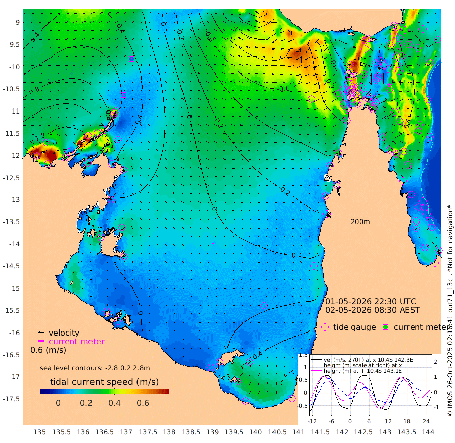 7cm/s -79T +3cm/s rms + 7cm/s -42T. ARA-GOC87 57m 11cm/s -115T +3cm/s rms + 2cm/s -2T. ARA-GOC87 60m 4cm/s -67T +2cm/s rms + 3cm/s 61T. ARA-GOC87 47m 29cm Daru 28cm Bobo Island 36cm Meer Island Barge 52cm Bramble Cay 45cm Unnamed Cay 34cm Pearce Cay 40cm Stephens Island 51cm Merrie England Shoals 41cm Mutacomal Reef 32cm Darnley Island Barge 46cm East Cay 23cm Yorke Island Barge 33cm Rennel Island 21cm Aureed Island 17cm Dungeness Reef -11cm Zagai Island -2cm Yam Island -19cm Dauan Island -25cm Saibai Island -9cm Phipi Reef -3cm Warrior Reef - West -25cm Mabuiag Island Barge 26cm Half Way Island 15cm Coconut Island 21cm Dugong Islet 4cm Poll Island 6cm Kirkcaldie Reef -12cm Suarji Island -5cm Sue Islet -12cm Hawkesbury Island -15cm Alert Patches -13cm Twin Island -13cm Badu Island -22cm St Pauls (Moa Island) -10cm Kubin (Moa Island) -18cm Ince Point -22cm Thursday Island -20cm Nardana Patches -12cm Turtle Head -14cm Round Island -9cm Goods Island -26cm Booby Island -12cm White Rocks Area -62cm Carpentaria -18cm Papou Point -32cm Bampfield Head -32cm Crab Island -22cm Red Wallis Island -6cm Packe Island 17cm Harrington Reef -18cm Herald Camp -12cm Sharp Point -16cm Red Island Point -22cm Possession Island -4cm Alpha Rock 1cm Frederick Point 29cm Wyborn Reef Light 23cm Tetley Island 29cm Triangle Reef 16cm Turtle Head Island 35cm Maclennan Cay 38cm Raine Island 35cm Mcsweeny Reef 37cm Collette Reef 36cm Shadwell Reef 45cm Hannibal Island 54cm Round Point -48cm Vrilya Point 46cm Cape Grenville 43cm Hicks Island 48cm Sir Charles Hardy Island 12cm Harvey Island 52cm Kay Reef 45cm Rocky Island 44cm Chapman Island 38cm Ham Reef 39cm Jubilee Reef 35cm Night Island 40cm Unnamed Reef No. 3 47cm Morris Island 35cm 1st 3 Mile Opening 38cm Creech Reef 46cm Fife Island 54cm Eden Reef 46cm Stanley Island 56cm Normanby River 137cm Yabooma Island 157cm Hutchison River 135cm Elcho Island 134cm North West Crocodile Island 66cm Cape Wessel 118cm Stevens Island 57cm Guluwuru Island 110cm Hopeful Bay 77cm Auster Point 78cm Two Island Bay 111cm Cadell Strait 46cm Mallison Island 61cm Melville Bay (Gove Harbour) 55cm Truant Island 31cm Cape Arnhem 25cm Cape Grey 25cm Hawk Island 12cm Milner Bay (Groote Eylandt) 18cm Cape Beatrice -1cm West Island -12cm Centre Island 35cm Mornington Island 34cm West Wellesley Islands 80cm Bountiful Island 96cm Albert River Mouth 85cm Sweers Island 87cm Karumba 45cm Nassau River Offshore 28cm Christmas Creek 5cm Archer River -13cm Boyd Point 3cm Weipa (Humbug Point) -35cm Pennefather River -33cm Cullen Point