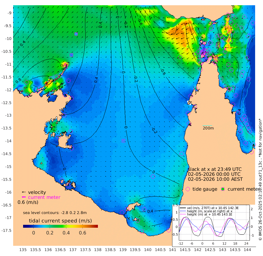8cm/s 47T +3cm/s rms + 7cm/s -42T. ARA-GOC87 57m 9cm/s -113T +3cm/s rms + 2cm/s -2T. ARA-GOC87 60m 12cm/s 39T +2cm/s rms + 3cm/s 61T. ARA-GOC87 47m 66cm Daru 70cm Bobo Island 37cm Meer Island Barge 62cm Bramble Cay 67cm Unnamed Cay 67cm Pearce Cay 61cm Stephens Island 71cm Merrie England Shoals 75cm Mutacomal Reef 52cm Darnley Island Barge 46cm East Cay 54cm Yorke Island Barge 61cm Rennel Island 60cm Aureed Island 51cm Dungeness Reef 37cm Zagai Island 37cm Yam Island 7cm Dauan Island 6cm Saibai Island 16cm Phipi Reef 44cm Warrior Reef - West -16cm Mabuiag Island Barge 55cm Half Way Island 55cm Coconut Island 54cm Dugong Islet 44cm Poll Island 37cm Kirkcaldie Reef 25cm Suarji Island 32cm Sue Islet -64cm Hawkesbury Island 5cm Alert Patches 15cm Twin Island -51cm Badu Island 10cm St Pauls (Moa Island) -34cm Kubin (Moa Island) -10cm Ince Point -27cm Thursday Island -21cm Nardana Patches -37cm Turtle Head -50cm Round Island -64cm Goods Island -97cm Booby Island -76cm White Rocks Area -114cm Carpentaria 7cm Papou Point -101cm Bampfield Head -92cm Crab Island -81cm Red Wallis Island -40cm Packe Island 57cm Harrington Reef -76cm Herald Camp 3cm Sharp Point -39cm Red Island Point -20cm Possession Island 28cm Alpha Rock 36cm Frederick Point 68cm Wyborn Reef Light 63cm Tetley Island 37cm Triangle Reef 47cm Turtle Head Island 34cm Maclennan Cay 23cm Raine Island 58cm Mcsweeny Reef 54cm Collette Reef 35cm Shadwell Reef 63cm Hannibal Island 63cm Round Point -106cm Vrilya Point 50cm Cape Grenville 44cm Hicks Island 46cm Sir Charles Hardy Island 13cm Harvey Island 45cm Kay Reef 35cm Rocky Island 32cm Chapman Island 25cm Ham Reef 29cm Jubilee Reef 30cm Night Island 28cm Unnamed Reef No. 3 36cm Morris Island 18cm 1st 3 Mile Opening 26cm Creech Reef 40cm Fife Island 40cm Eden Reef 32cm Stanley Island 46cm Normanby River 109cm Yabooma Island 141cm Hutchison River 118cm Elcho Island 116cm North West Crocodile Island 84cm Cape Wessel 117cm Stevens Island 91cm Guluwuru Island 103cm Hopeful Bay 81cm Auster Point 86cm Two Island Bay 125cm Cadell Strait 125cm Mallison Island 86cm Melville Bay (Gove Harbour) 84cm Truant Island 57cm Cape Arnhem 40cm Cape Grey 44cm Hawk Island 24cm Milner Bay (Groote Eylandt) 27cm Cape Beatrice 6cm West Island -4cm Centre Island 41cm Mornington Island 37cm West Wellesley Islands 69cm Bountiful Island 93cm Albert River Mouth 87cm Sweers Island 81cm Karumba 33cm Nassau River Offshore 5cm Christmas Creek -34cm Archer River -51cm Boyd Point -47cm Weipa (Humbug Point) -75cm Pennefather River -84cm Cullen Point