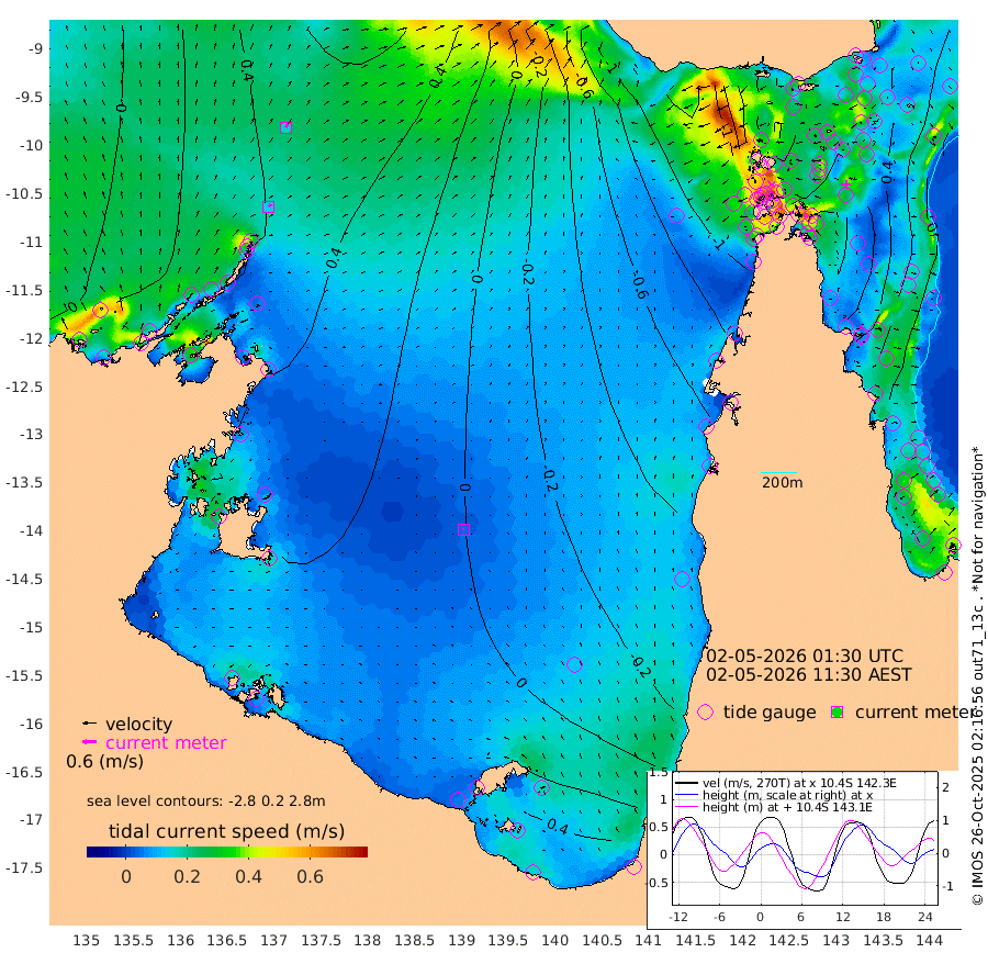13cm/s 42T +3cm/s rms + 7cm/s -42T. ARA-GOC87 57m 4cm/s -101T +3cm/s rms + 2cm/s -2T. ARA-GOC87 60m 17cm/s 32T +2cm/s rms + 3cm/s 61T. ARA-GOC87 47m 57cm Daru 62cm Bobo Island 7cm Meer Island Barge 28cm Bramble Cay 42cm Unnamed Cay 51cm Pearce Cay 37cm Stephens Island 41cm Merrie England Shoals 59cm Mutacomal Reef 32cm Darnley Island Barge 9cm East Cay 45cm Yorke Island Barge 44cm Rennel Island 55cm Aureed Island 46cm Dungeness Reef 57cm Zagai Island 49cm Yam Island 26cm Dauan Island 30cm Saibai Island 24cm Phipi Reef 61cm Warrior Reef - West -8cm Mabuiag Island Barge 43cm Half Way Island 51cm Coconut Island 48cm Dugong Islet 50cm Poll Island 37cm Kirkcaldie Reef 38cm Suarji Island 43cm Sue Islet -99cm Hawkesbury Island 9cm Alert Patches 24cm Twin Island -80cm Badu Island 27cm St Pauls (Moa Island) -53cm Kubin (Moa Island) -8cm Ince Point -31cm Thursday Island -23cm Nardana Patches -57cm Turtle Head -76cm Round Island -102cm Goods Island -135cm Booby Island -117cm White Rocks Area -124cm Carpentaria 17cm Papou Point -143cm Bampfield Head -123cm Crab Island -114cm Red Wallis Island -68cm Packe Island 53cm Harrington Reef -110cm Herald Camp 15cm Sharp Point -58cm Red Island Point -23cm Possession Island 36cm Alpha Rock 39cm Frederick Point 58cm Wyborn Reef Light 58cm Tetley Island 15cm Triangle Reef 36cm Turtle Head Island 5cm Maclennan Cay -15cm Raine Island 38cm Mcsweeny Reef 30cm Collette Reef 4cm Shadwell Reef 35cm Hannibal Island 26cm Round Point -127cm Vrilya Point 16cm Cape Grenville 9cm Hicks Island 9cm Sir Charles Hardy Island 4cm Harvey Island 3cm Kay Reef -5cm Rocky Island -9cm Chapman Island -11cm Ham Reef -8cm Jubilee Reef -1cm Night Island -10cm Unnamed Reef No. 3 -5cm Morris Island -20cm 1st 3 Mile Opening -11cm Creech Reef 2cm Fife Island -7cm Eden Reef -10cm Stanley Island 1cm Normanby River 21cm Yabooma Island 45cm Hutchison River 36cm Elcho Island 36cm North West Crocodile Island 53cm Cape Wessel 50cm Stevens Island 70cm Guluwuru Island 38cm Hopeful Bay 36cm Auster Point 46cm Two Island Bay 66cm Cadell Strait 130cm Mallison Island 61cm Melville Bay (Gove Harbour) 61cm Truant Island 48cm Cape Arnhem 33cm Cape Grey 43cm Hawk Island 32cm Milner Bay (Groote Eylandt) 34cm Cape Beatrice 28cm West Island 21cm Centre Island 43cm Mornington Island 40cm West Wellesley Islands 47cm Bountiful Island 74cm Albert River Mouth 74cm Sweers Island 60cm Karumba 17cm Nassau River Offshore -17cm Christmas Creek -63cm Archer River -71cm Boyd Point -81cm Weipa (Humbug Point) -90cm Pennefather River -104cm Cullen Point