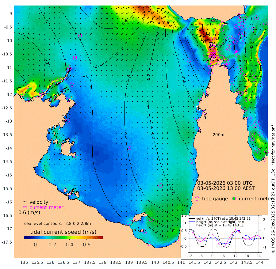 16cm/s 29T +3cm/s rms + 7cm/s -42T. ARA-GOC87 57m 7cm/s -17T +3cm/s rms + 2cm/s -2T. ARA-GOC87 60m 20cm/s 25T +2cm/s rms + 3cm/s 61T. ARA-GOC87 47m -1cm Daru 4cm Bobo Island -35cm Meer Island Barge -27cm Bramble Cay -18cm Unnamed Cay -9cm Pearce Cay -20cm Stephens Island -21cm Merrie England Shoals -3cm Mutacomal Reef -17cm Darnley Island Barge -40cm East Cay -6cm Yorke Island Barge -14cm Rennel Island 4cm Aureed Island -7cm Dungeness Reef 21cm Zagai Island 7cm Yam Island 4cm Dauan Island 14cm Saibai Island -11cm Phipi Reef 21cm Warrior Reef - West -27cm Mabuiag Island Barge -11cm Half Way Island -2cm Coconut Island -6cm Dugong Islet 4cm Poll Island -13cm Kirkcaldie Reef -1cm Suarji Island 4cm Sue Islet -135cm Hawkesbury Island -30cm Alert Patches -16cm Twin Island -111cm Badu Island -9cm St Pauls (Moa Island) -89cm Kubin (Moa Island) -41cm Ince Point -61cm Thursday Island -54cm Nardana Patches -90cm Turtle Head -111cm Round Island -133cm Goods Island -156cm Booby Island -144cm White Rocks Area -119cm Carpentaria -17cm Papou Point -170cm Bampfield Head -136cm Crab Island -135cm Red Wallis Island -104cm Packe Island -5cm Harrington Reef -142cm Herald Camp 10cm Sharp Point -89cm Red Island Point -58cm Possession Island 0cm Alpha Rock -9cm Frederick Point -1cm Wyborn Reef Light 2cm Tetley Island -24cm Triangle Reef -25cm Turtle Head Island -37cm Maclennan Cay -51cm Raine Island -16cm Mcsweeny Reef -21cm Collette Reef -36cm Shadwell Reef -22cm Hannibal Island -33cm Round Point -129cm Vrilya Point -35cm Cape Grenville -40cm Hicks Island -40cm Sir Charles Hardy Island -11cm Harvey Island -45cm Kay Reef -46cm Rocky Island -48cm Chapman Island -47cm Ham Reef -46cm Jubilee Reef -37cm Night Island -47cm Unnamed Reef No. 3 -49cm Morris Island -57cm 1st 3 Mile Opening -49cm Creech Reef -39cm Fife Island -53cm Eden Reef -52cm Stanley Island -48cm Normanby River -41cm Yabooma Island -32cm Hutchison River -23cm Elcho Island -22cm North West Crocodile Island 20cm Cape Wessel -3cm Stevens Island 38cm Guluwuru Island -10cm Hopeful Bay -2cm Auster Point 6cm Two Island Bay 8cm Cadell Strait 118cm Mallison Island 29cm Melville Bay (Gove Harbour) 29cm Truant Island 30cm Cape Arnhem 25cm Cape Grey 37cm Hawk Island 45cm Milner Bay (Groote Eylandt) 45cm Cape Beatrice 55cm West Island 51cm Centre Island 51cm Mornington Island 53cm West Wellesley Islands 44cm Bountiful Island 80cm Albert River Mouth 85cm Sweers Island 60cm Karumba 8cm Nassau River Offshore -32cm Christmas Creek -76cm Archer River -80cm Boyd Point -96cm Weipa (Humbug Point) -92cm Pennefather River -110cm Cullen Point