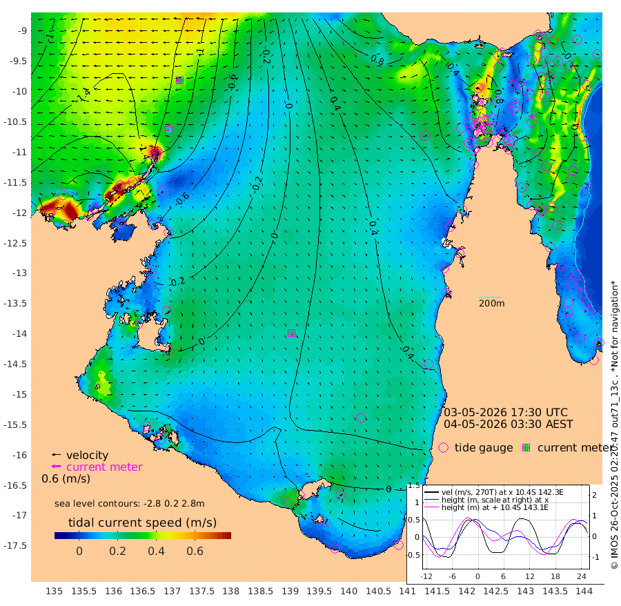 18cm/s -87T +3cm/s rms + 7cm/s -42T. ARA-GOC87 57m 23cm/s 158T +3cm/s rms + 2cm/s -2T. ARA-GOC87 60m 26cm/s -96T +2cm/s rms + 3cm/s 61T. ARA-GOC87 47m 18cm Daru 14cm Bobo Island 7cm Meer Island Barge -4cm Bramble Cay 5cm Unnamed Cay 12cm Pearce Cay 9cm Stephens Island -3cm Merrie England Shoals 10cm Mutacomal Reef 16cm Darnley Island Barge 5cm East Cay 22cm Yorke Island Barge 14cm Rennel Island 27cm Aureed Island 32cm Dungeness Reef 48cm Zagai Island 49cm Yam Island 74cm Dauan Island 78cm Saibai Island 66cm Phipi Reef 57cm Warrior Reef - West 63cm Mabuiag Island Barge 17cm Half Way Island 26cm Coconut Island 28cm Dugong Islet 37cm Poll Island 40cm Kirkcaldie Reef 62cm Suarji Island 48cm Sue Islet 56cm Hawkesbury Island 59cm Alert Patches 55cm Twin Island 56cm Badu Island 62cm St Pauls (Moa Island) 53cm Kubin (Moa Island) 59cm Ince Point 63cm Thursday Island 62cm Nardana Patches 62cm Turtle Head 51cm Round Island 58cm Goods Island 68cm Booby Island 57cm White Rocks Area 84cm Carpentaria 48cm Papou Point 69cm Bampfield Head 56cm Crab Island 65cm Red Wallis Island 58cm Packe Island 28cm Harrington Reef 75cm Herald Camp 22cm Sharp Point 57cm Red Island Point 54cm Possession Island 42cm Alpha Rock 42cm Frederick Point 11cm Wyborn Reef Light 17cm Tetley Island 13cm Triangle Reef 14cm Turtle Head Island 14cm Maclennan Cay 4cm Raine Island 12cm Mcsweeny Reef 10cm Collette Reef 8cm Shadwell Reef 4cm Hannibal Island -5cm Round Point 63cm Vrilya Point 4cm Cape Grenville 5cm Hicks Island 18cm Sir Charles Hardy Island 3cm Harvey Island 1cm Kay Reef 6cm Rocky Island 8cm Chapman Island 10cm Ham Reef 7cm Jubilee Reef 6cm Night Island 9cm Unnamed Reef No. 3 2cm Morris Island 9cm 1st 3 Mile Opening 10cm Creech Reef 3cm Fife Island -1cm Eden Reef 4cm Stanley Island -3cm Normanby River -200cm Yabooma Island -235cm Hutchison River -211cm Elcho Island -204cm North West Crocodile Island -121cm Cape Wessel -193cm Stevens Island -103cm Guluwuru Island -171cm Hopeful Bay -141cm Auster Point -146cm Two Island Bay -187cm Cadell Strait -66cm Mallison Island -102cm Melville Bay (Gove Harbour) -103cm Truant Island -61cm Cape Arnhem -44cm Cape Grey -44cm Hawk Island -31cm Milner Bay (Groote Eylandt) -24cm Cape Beatrice 11cm West Island 15cm Centre Island 9cm Mornington Island 16cm West Wellesley Islands 4cm Bountiful Island -56cm Albert River Mouth -56cm Sweers Island -39cm Karumba 33cm Nassau River Offshore 56cm Christmas Creek 52cm Archer River 61cm Boyd Point 57cm Weipa (Humbug Point) 47cm Pennefather River 66cm Cullen Point