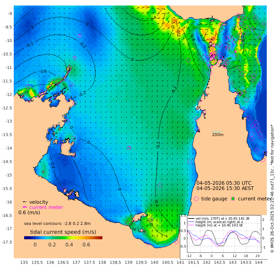 15cm/s -6T +3cm/s rms + 7cm/s -42T. ARA-GOC87 57m 19cm/s 9T +3cm/s rms + 2cm/s -2T. ARA-GOC87 60m 13cm/s 2T +2cm/s rms + 3cm/s 61T. ARA-GOC87 47m -91cm Daru -84cm Bobo Island -70cm Meer Island Barge -87cm Bramble Cay -94cm Unnamed Cay -90cm Pearce Cay -87cm Stephens Island -94cm Merrie England Shoals -92cm Mutacomal Reef -78cm Darnley Island Barge -80cm East Cay -78cm Yorke Island Barge -89cm Rennel Island -76cm Aureed Island -90cm Dungeness Reef -69cm Zagai Island -79cm Yam Island -78cm Dauan Island -63cm Saibai Island -105cm Phipi Reef -79cm Warrior Reef - West -74cm Mabuiag Island Barge -81cm Half Way Island -87cm Coconut Island -82cm Dugong Islet -79cm Poll Island -89cm Kirkcaldie Reef -81cm Suarji Island -72cm Sue Islet -131cm Hawkesbury Island -91cm Alert Patches -83cm Twin Island -127cm Badu Island -79cm St Pauls (Moa Island) -110cm Kubin (Moa Island) -87cm Ince Point -91cm Thursday Island -90cm Nardana Patches -110cm Turtle Head -118cm Round Island -124cm Goods Island -115cm Booby Island -115cm White Rocks Area -52cm Carpentaria -75cm Papou Point -129cm Bampfield Head -94cm Crab Island -103cm Red Wallis Island -113cm Packe Island -86cm Harrington Reef -126cm Herald Camp -12cm Sharp Point -104cm Red Island Point -94cm Possession Island -66cm Alpha Rock -85cm Frederick Point -90cm Wyborn Reef Light -87cm Tetley Island -67cm Triangle Reef -99cm Turtle Head Island -72cm Maclennan Cay -70cm Raine Island -83cm Mcsweeny Reef -82cm Collette Reef -72cm Shadwell Reef -89cm Hannibal Island -91cm Round Point -70cm Vrilya Point -81cm Cape Grenville -82cm Hicks Island -85cm Sir Charles Hardy Island -24cm Harvey Island -80cm Kay Reef -75cm Rocky Island -72cm Chapman Island -66cm Ham Reef -70cm Jubilee Reef -62cm Night Island -67cm Unnamed Reef No. 3 -76cm Morris Island -74cm 1st 3 Mile Opening -71cm Creech Reef -64cm Fife Island -81cm Eden Reef -74cm Stanley Island -78cm Normanby River -93cm Yabooma Island -115cm Hutchison River -83cm Elcho Island -81cm North West Crocodile Island -26cm Cape Wessel -65cm Stevens Island -35cm Guluwuru Island -62cm Hopeful Bay -46cm Auster Point -39cm Two Island Bay -75cm Cadell Strait 14cm Mallison Island -36cm Melville Bay (Gove Harbour) -33cm Truant Island -14cm Cape Arnhem -4cm Cape Grey 6cm Hawk Island 43cm Milner Bay (Groote Eylandt) 41cm Cape Beatrice 73cm West Island 73cm Centre Island 25cm Mornington Island 35cm West Wellesley Islands -3cm Bountiful Island 28cm Albert River Mouth 42cm Sweers Island 10cm Karumba -23cm Nassau River Offshore -53cm Christmas Creek -69cm Archer River -62cm Boyd Point -81cm Weipa (Humbug Point) -54cm Pennefather River -67cm Cullen Point