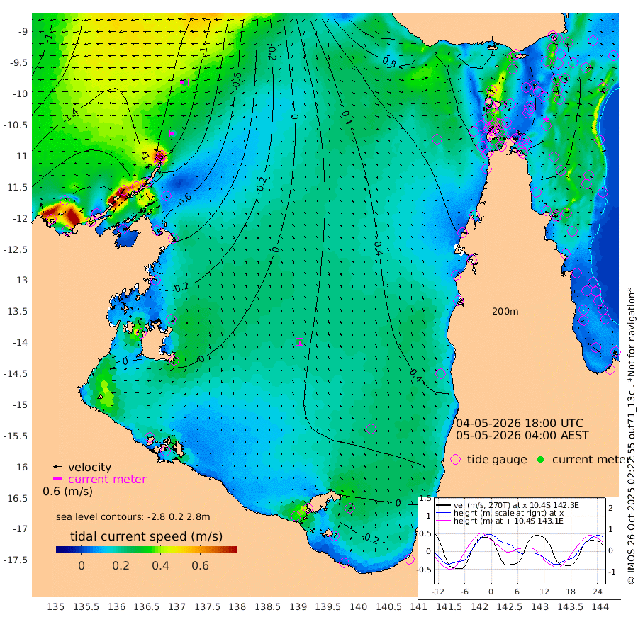 20cm/s -89T +3cm/s rms + 7cm/s -42T. ARA-GOC87 57m 27cm/s 162T +3cm/s rms + 2cm/s -2T. ARA-GOC87 60m 28cm/s -96T +2cm/s rms + 3cm/s 61T. ARA-GOC87 47m 24cm Daru 21cm Bobo Island 17cm Meer Island Barge 9cm Bramble Cay 15cm Unnamed Cay 21cm Pearce Cay 19cm Stephens Island 10cm Merrie England Shoals 19cm Mutacomal Reef 25cm Darnley Island Barge 18cm East Cay 29cm Yorke Island Barge 22cm Rennel Island 33cm Aureed Island 35cm Dungeness Reef 43cm Zagai Island 45cm Yam Island 66cm Dauan Island 71cm Saibai Island 60cm Phipi Reef 53cm Warrior Reef - West 59cm Mabuiag Island Barge 23cm Half Way Island 30cm Coconut Island 33cm Dugong Islet 38cm Poll Island 41cm Kirkcaldie Reef 57cm Suarji Island 47cm Sue Islet 64cm Hawkesbury Island 57cm Alert Patches 53cm Twin Island 57cm Badu Island 57cm St Pauls (Moa Island) 56cm Kubin (Moa Island) 58cm Ince Point 62cm Thursday Island 60cm Nardana Patches 63cm Turtle Head 56cm Round Island 62cm Goods Island 72cm Booby Island 61cm White Rocks Area 85cm Carpentaria 44cm Papou Point 76cm Bampfield Head 59cm Crab Island 71cm Red Wallis Island 65cm Packe Island 33cm Harrington Reef 84cm Herald Camp 19cm Sharp Point 59cm Red Island Point 54cm Possession Island 43cm Alpha Rock 44cm Frederick Point 19cm Wyborn Reef Light 23cm Tetley Island 23cm Triangle Reef 19cm Turtle Head Island 24cm Maclennan Cay 15cm Raine Island 22cm Mcsweeny Reef 21cm Collette Reef 19cm Shadwell Reef 16cm Hannibal Island 10cm Round Point 66cm Vrilya Point 18cm Cape Grenville 17cm Hicks Island 31cm Sir Charles Hardy Island 7cm Harvey Island 16cm Kay Reef 19cm Rocky Island 23cm Chapman Island 24cm Ham Reef 19cm Jubilee Reef 18cm Night Island 24cm Unnamed Reef No. 3 15cm Morris Island 19cm 1st 3 Mile Opening 22cm Creech Reef 19cm Fife Island 14cm Eden Reef 18cm Stanley Island 13cm Normanby River -193cm Yabooma Island -230cm Hutchison River -206cm Elcho Island -199cm North West Crocodile Island -116cm Cape Wessel -186cm Stevens Island -103cm Guluwuru Island -162cm Hopeful Bay -137cm Auster Point -142cm Two Island Bay -182cm Cadell Strait -43cm Mallison Island -100cm Melville Bay (Gove Harbour) -101cm Truant Island -61cm Cape Arnhem -49cm Cape Grey -45cm Hawk Island -38cm Milner Bay (Groote Eylandt) -31cm Cape Beatrice 1cm West Island 4cm Centre Island 5cm Mornington Island 11cm West Wellesley Islands -1cm Bountiful Island -67cm Albert River Mouth -66cm Sweers Island -45cm Karumba 36cm Nassau River Offshore 62cm Christmas Creek 60cm Archer River 67cm Boyd Point 64cm Weipa (Humbug Point) 51cm Pennefather River 72cm Cullen Point