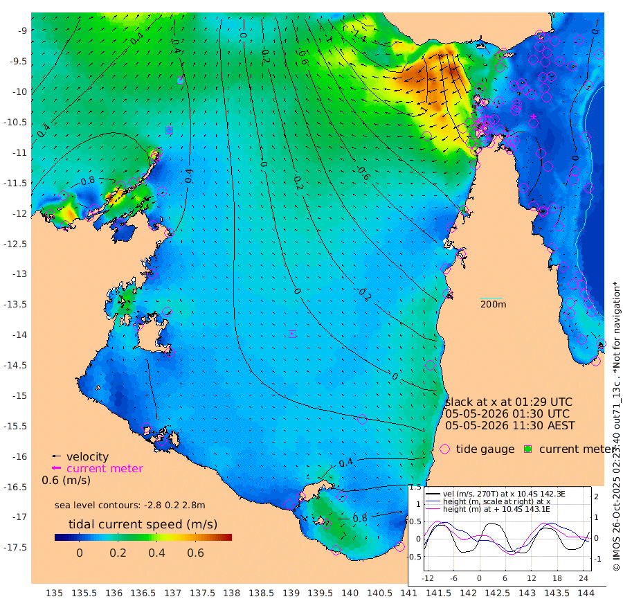 9cm/s 33T +3cm/s rms + 7cm/s -42T. ARA-GOC87 57m 13cm/s -78T +3cm/s rms + 2cm/s -2T. ARA-GOC87 60m 15cm/s 34T +2cm/s rms + 3cm/s 61T. ARA-GOC87 47m 20cm Daru 18cm Bobo Island -10cm Meer Island Barge 6cm Bramble Cay 12cm Unnamed Cay 11cm Pearce Cay 2cm Stephens Island 11cm Merrie England Shoals 21cm Mutacomal Reef 1cm Darnley Island Barge -11cm East Cay 8cm Yorke Island Barge 7cm Rennel Island 9cm Aureed Island 12cm Dungeness Reef 23cm Zagai Island 15cm Yam Island 23cm Dauan Island 21cm Saibai Island 34cm Phipi Reef 30cm Warrior Reef - West -11cm Mabuiag Island Barge 3cm Half Way Island 10cm Coconut Island 4cm Dugong Islet 10cm Poll Island 3cm Kirkcaldie Reef 3cm Suarji Island 8cm Sue Islet -84cm Hawkesbury Island -16cm Alert Patches -12cm Twin Island -54cm Badu Island -7cm St Pauls (Moa Island) -58cm Kubin (Moa Island) -28cm Ince Point -44cm Thursday Island -37cm Nardana Patches -54cm Turtle Head -75cm Round Island -83cm Goods Island -114cm Booby Island -100cm White Rocks Area -137cm Carpentaria -12cm Papou Point -139cm Bampfield Head -102cm Crab Island -106cm Red Wallis Island -74cm Packe Island 1cm Harrington Reef -110cm Herald Camp 4cm Sharp Point -50cm Red Island Point -43cm Possession Island -4cm Alpha Rock -4cm Frederick Point 14cm Wyborn Reef Light 12cm Tetley Island -7cm Triangle Reef -6cm Turtle Head Island -15cm Maclennan Cay -18cm Raine Island 4cm Mcsweeny Reef 3cm Collette Reef -7cm Shadwell Reef 7cm Hannibal Island 0cm Round Point -113cm Vrilya Point -8cm Cape Grenville -10cm Hicks Island -11cm Sir Charles Hardy Island -4cm Harvey Island -11cm Kay Reef -13cm Rocky Island -16cm Chapman Island -20cm Ham Reef -16cm Jubilee Reef -16cm Night Island -21cm Unnamed Reef No. 3 -15cm Morris Island -23cm 1st 3 Mile Opening -21cm Creech Reef -17cm Fife Island -14cm Eden Reef -20cm Stanley Island -15cm Normanby River 80cm Yabooma Island 112cm Hutchison River 95cm Elcho Island 96cm North West Crocodile Island 48cm Cape Wessel 88cm Stevens Island 70cm Guluwuru Island 74cm Hopeful Bay 53cm Auster Point 54cm Two Island Bay 102cm Cadell Strait 81cm Mallison Island 66cm Melville Bay (Gove Harbour) 58cm Truant Island 44cm Cape Arnhem 47cm Cape Grey 51cm Hawk Island 47cm Milner Bay (Groote Eylandt) 52cm Cape Beatrice 40cm West Island 33cm Centre Island 85cm Mornington Island 81cm West Wellesley Islands 126cm Bountiful Island 176cm Albert River Mouth 172cm Sweers Island 156cm Karumba 59cm Nassau River Offshore 14cm Christmas Creek -33cm Archer River -59cm Boyd Point -54cm Weipa (Humbug Point) -74cm Pennefather River -99cm Cullen Point