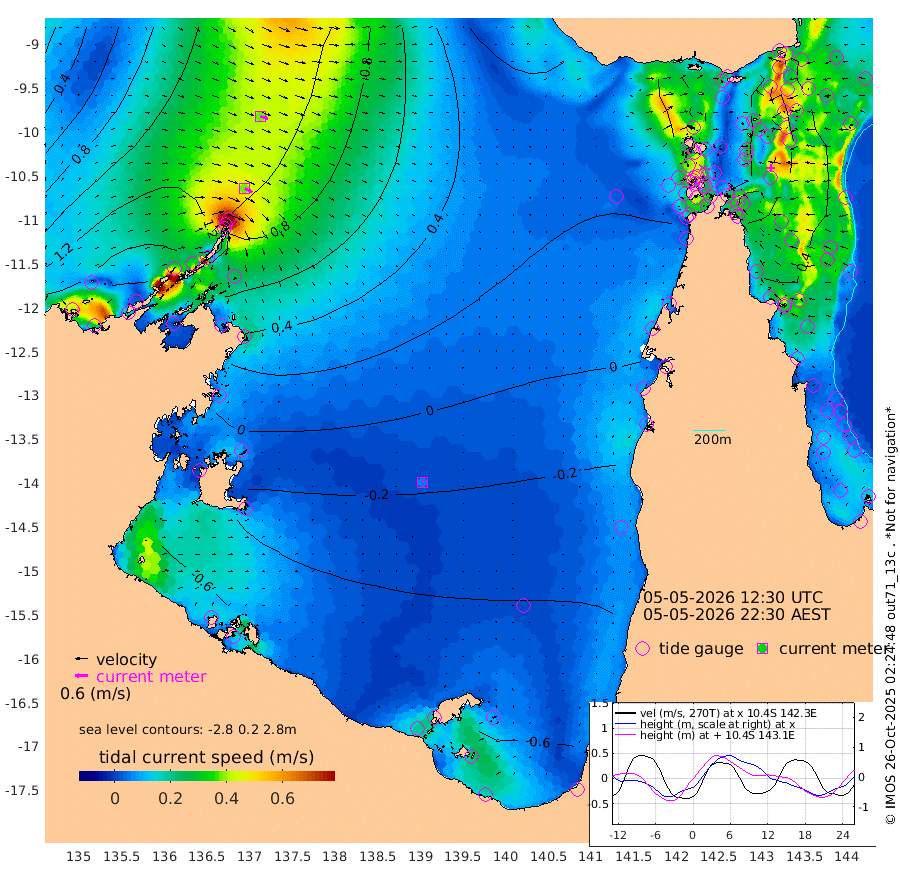 38cm/s 118T +3cm/s rms + 7cm/s -42T. ARA-GOC87 57m 6cm/s 35T +3cm/s rms + 2cm/s -2T. ARA-GOC87 60m 37cm/s 112T +2cm/s rms + 3cm/s 61T. ARA-GOC87 47m 48cm Daru 49cm Bobo Island 41cm Meer Island Barge 51cm Bramble Cay 55cm Unnamed Cay 50cm Pearce Cay 50cm Stephens Island 55cm Merrie England Shoals 50cm Mutacomal Reef 43cm Darnley Island Barge 43cm East Cay 42cm Yorke Island Barge 49cm Rennel Island 37cm Aureed Island 44cm Dungeness Reef 34cm Zagai Island 36cm Yam Island 22cm Dauan Island 12cm Saibai Island 30cm Phipi Reef 26cm Warrior Reef - West 33cm Mabuiag Island Barge 47cm Half Way Island 51cm Coconut Island 42cm Dugong Islet 41cm Poll Island 43cm Kirkcaldie Reef 32cm Suarji Island 32cm Sue Islet 87cm Hawkesbury Island 44cm Alert Patches 44cm Twin Island 78cm Badu Island 40cm St Pauls (Moa Island) 74cm Kubin (Moa Island) 47cm Ince Point 51cm Thursday Island 50cm Nardana Patches 62cm Turtle Head 86cm Round Island 80cm Goods Island 80cm Booby Island 78cm White Rocks Area 51cm Carpentaria 46cm Papou Point 113cm Bampfield Head 69cm Crab Island 70cm Red Wallis Island 71cm Packe Island 47cm Harrington Reef 83cm Herald Camp -1cm Sharp Point 52cm Red Island Point 61cm Possession Island 37cm Alpha Rock 46cm Frederick Point 59cm Wyborn Reef Light 57cm Tetley Island 37cm Triangle Reef 74cm Turtle Head Island 37cm Maclennan Cay 40cm Raine Island 45cm Mcsweeny Reef 44cm Collette Reef 39cm Shadwell Reef 50cm Hannibal Island 54cm Round Point 54cm Vrilya Point 44cm Cape Grenville 47cm Hicks Island 41cm Sir Charles Hardy Island 13cm Harvey Island 42cm Kay Reef 37cm Rocky Island 35cm Chapman Island 33cm Ham Reef 37cm Jubilee Reef 33cm Night Island 32cm Unnamed Reef No. 3 41cm Morris Island 43cm 1st 3 Mile Opening 37cm Creech Reef 30cm Fife Island 46cm Eden Reef 40cm Stanley Island 41cm Normanby River 172cm Yabooma Island 206cm Hutchison River 170cm Elcho Island 157cm North West Crocodile Island 114cm Cape Wessel 160cm Stevens Island 112cm Guluwuru Island 140cm Hopeful Bay 132cm Auster Point 134cm Two Island Bay 167cm Cadell Strait 79cm Mallison Island 100cm Melville Bay (Gove Harbour) 111cm Truant Island 63cm Cape Arnhem 25cm Cape Grey 8cm Hawk Island -35cm Milner Bay (Groote Eylandt) -51cm Cape Beatrice -107cm West Island -101cm Centre Island -111cm Mornington Island -121cm West Wellesley Islands -130cm Bountiful Island -131cm Albert River Mouth -142cm Sweers Island -129cm Karumba -89cm Nassau River Offshore -50cm Christmas Creek -2cm Archer River 15cm Boyd Point 19cm Weipa (Humbug Point) 32cm Pennefather River 41cm Cullen Point
