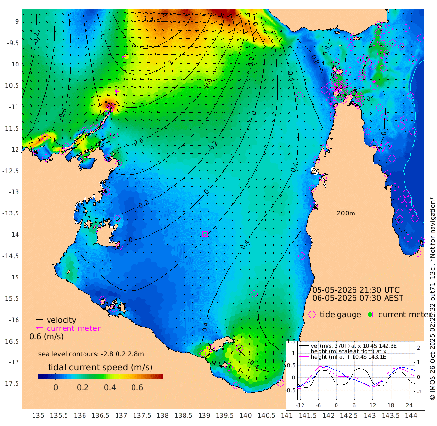 43cm/s -90T +3cm/s rms + 7cm/s -42T. ARA-GOC87 57m 18cm/s -162T +3cm/s rms + 2cm/s -2T. ARA-GOC87 60m 45cm/s -98T +2cm/s rms + 3cm/s 61T. ARA-GOC87 47m 7cm Daru -1cm Bobo Island 9cm Meer Island Barge 6cm Bramble Cay 6cm Unnamed Cay 9cm Pearce Cay 11cm Stephens Island 5cm Merrie England Shoals 4cm Mutacomal Reef 5cm Darnley Island Barge 16cm East Cay 4cm Yorke Island Barge 14cm Rennel Island 6cm Aureed Island 21cm Dungeness Reef 0cm Zagai Island 19cm Yam Island 25cm Dauan Island 11cm Saibai Island 45cm Phipi Reef 16cm Warrior Reef - West 30cm Mabuiag Island Barge 15cm Half Way Island 6cm Coconut Island 19cm Dugong Islet 14cm Poll Island 28cm Kirkcaldie Reef 30cm Suarji Island 9cm Sue Islet 83cm Hawkesbury Island 37cm Alert Patches 29cm Twin Island 66cm Badu Island 29cm St Pauls (Moa Island) 63cm Kubin (Moa Island) 43cm Ince Point 52cm Thursday Island 49cm Nardana Patches 68cm Turtle Head 66cm Round Island 82cm Goods Island 89cm Booby Island 84cm White Rocks Area 54cm Carpentaria 25cm Papou Point 73cm Bampfield Head 74cm Crab Island 82cm Red Wallis Island 75cm Packe Island 18cm Harrington Reef 95cm Herald Camp 6cm Sharp Point 69cm Red Island Point 46cm Possession Island 10cm Alpha Rock 21cm Frederick Point -4cm Wyborn Reef Light -3cm Tetley Island 7cm Triangle Reef 9cm Turtle Head Island 19cm Maclennan Cay 15cm Raine Island 8cm Mcsweeny Reef 6cm Collette Reef 8cm Shadwell Reef 4cm Hannibal Island 9cm Round Point 67cm Vrilya Point 14cm Cape Grenville 17cm Hicks Island 17cm Sir Charles Hardy Island 6cm Harvey Island 13cm Kay Reef 17cm Rocky Island 13cm Chapman Island 14cm Ham Reef 13cm Jubilee Reef 15cm Night Island 15cm Unnamed Reef No. 3 17cm Morris Island 18cm 1st 3 Mile Opening 18cm Creech Reef 16cm Fife Island 14cm Eden Reef 17cm Stanley Island 18cm Normanby River -67cm Yabooma Island -90cm Hutchison River -80cm Elcho Island -66cm North West Crocodile Island -106cm Cape Wessel -106cm Stevens Island -125cm Guluwuru Island -87cm Hopeful Bay -94cm Auster Point -93cm Two Island Bay -115cm Cadell Strait -255cm Mallison Island -101cm Melville Bay (Gove Harbour) -114cm Truant Island -79cm Cape Arnhem -45cm Cape Grey -34cm Hawk Island -17cm Milner Bay (Groote Eylandt) 2cm Cape Beatrice 35cm West Island 32cm Centre Island 62cm Mornington Island 59cm West Wellesley Islands 93cm Bountiful Island 66cm Albert River Mouth 63cm Sweers Island 91cm Karumba 90cm Nassau River Offshore 88cm Christmas Creek 73cm Archer River 62cm Boyd Point 78cm Weipa (Humbug Point) 51cm Pennefather River 68cm Cullen Point