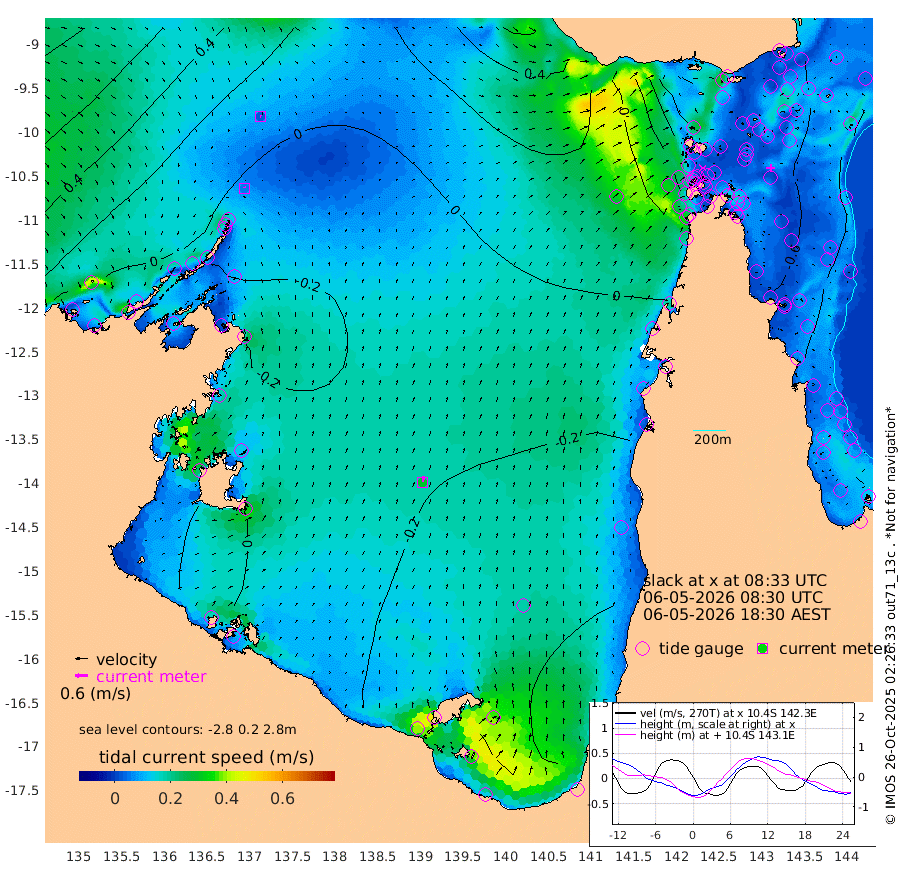 6cm/s -25T +3cm/s rms + 7cm/s -42T. ARA-GOC87 57m 30cm/s 10T +3cm/s rms + 2cm/s -2T. ARA-GOC87 60m 3cm/s 97T +2cm/s rms + 3cm/s 61T. ARA-GOC87 47m -83cm Daru -73cm Bobo Island -42cm Meer Island Barge -56cm Bramble Cay -72cm Unnamed Cay -70cm Pearce Cay -59cm Stephens Island -65cm Merrie England Shoals -81cm Mutacomal Reef -60cm Darnley Island Barge -42cm East Cay -70cm Yorke Island Barge -67cm Rennel Island -68cm Aureed Island -84cm Dungeness Reef -94cm Zagai Island -92cm Yam Island -126cm Dauan Island -115cm Saibai Island -139cm Phipi Reef -113cm Warrior Reef - West -81cm Mabuiag Island Barge -61cm Half Way Island -75cm Coconut Island -70cm Dugong Islet -80cm Poll Island -78cm Kirkcaldie Reef -85cm Suarji Island -83cm Sue Islet -64cm Hawkesbury Island -79cm Alert Patches -75cm Twin Island -75cm Badu Island -83cm St Pauls (Moa Island) -65cm Kubin (Moa Island) -71cm Ince Point -63cm Thursday Island -67cm Nardana Patches -67cm Turtle Head -59cm Round Island -51cm Goods Island -27cm Booby Island -25cm White Rocks Area 20cm Carpentaria -66cm Papou Point -27cm Bampfield Head -17cm Crab Island -25cm Red Wallis Island -57cm Packe Island -65cm Harrington Reef -56cm Herald Camp -25cm Sharp Point -56cm Red Island Point -63cm Possession Island -67cm Alpha Rock -74cm Frederick Point -77cm Wyborn Reef Light -78cm Tetley Island -48cm Triangle Reef -67cm Turtle Head Island -40cm Maclennan Cay -30cm Raine Island -61cm Mcsweeny Reef -60cm Collette Reef -47cm Shadwell Reef -64cm Hannibal Island -55cm Round Point 1cm Vrilya Point -46cm Cape Grenville -46cm Hicks Island -55cm Sir Charles Hardy Island -14cm Harvey Island -40cm Kay Reef -39cm Rocky Island -38cm Chapman Island -31cm Ham Reef -35cm Jubilee Reef -31cm Night Island -29cm Unnamed Reef No. 3 -35cm Morris Island -32cm 1st 3 Mile Opening -32cm Creech Reef -28cm Fife Island -38cm Eden Reef -33cm Stanley Island -32cm Normanby River -7cm Yabooma Island -23cm Hutchison River -3cm Elcho Island -4cm North West Crocodile Island 4cm Cape Wessel -8cm Stevens Island -36cm Guluwuru Island -9cm Hopeful Bay 0cm Auster Point 0cm Two Island Bay -35cm Cadell Strait -99cm Mallison Island -29cm Melville Bay (Gove Harbour) -25cm Truant Island -19cm Cape Arnhem -9cm Cape Grey -11cm Hawk Island 24cm Milner Bay (Groote Eylandt) 19cm Cape Beatrice 39cm West Island 41cm Centre Island -26cm Mornington Island -19cm West Wellesley Islands -58cm Bountiful Island -38cm Albert River Mouth -29cm Sweers Island -49cm Karumba -59cm Nassau River Offshore -68cm Christmas Creek -47cm Archer River -34cm Boyd Point -45cm Weipa (Humbug Point) -11cm Pennefather River -15cm Cullen Point