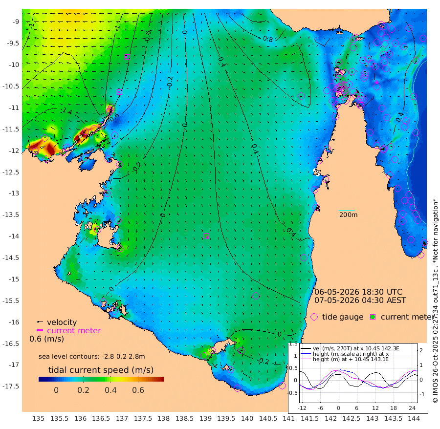 14cm/s -95T +3cm/s rms + 7cm/s -42T. ARA-GOC87 57m 32cm/s 164T +3cm/s rms + 2cm/s -2T. ARA-GOC87 60m 25cm/s -96T +2cm/s rms + 3cm/s 61T. ARA-GOC87 47m 50cm Daru 44cm Bobo Island 38cm Meer Island Barge 40cm Bramble Cay 47cm Unnamed Cay 44cm Pearce Cay 45cm Stephens Island 48cm Merrie England Shoals 54cm Mutacomal Reef 48cm Darnley Island Barge 43cm East Cay 50cm Yorke Island Barge 47cm Rennel Island 51cm Aureed Island 49cm Dungeness Reef 49cm Zagai Island 53cm Yam Island 63cm Dauan Island 69cm Saibai Island 55cm Phipi Reef 60cm Warrior Reef - West 56cm Mabuiag Island Barge 45cm Half Way Island 50cm Coconut Island 51cm Dugong Islet 50cm Poll Island 52cm Kirkcaldie Reef 57cm Suarji Island 58cm Sue Islet 70cm Hawkesbury Island 62cm Alert Patches 60cm Twin Island 57cm Badu Island 58cm St Pauls (Moa Island) 60cm Kubin (Moa Island) 60cm Ince Point 63cm Thursday Island 61cm Nardana Patches 64cm Turtle Head 64cm Round Island 63cm Goods Island 69cm Booby Island 60cm White Rocks Area 77cm Carpentaria 45cm Papou Point 82cm Bampfield Head 56cm Crab Island 73cm Red Wallis Island 75cm Packe Island 52cm Harrington Reef 90cm Herald Camp 18cm Sharp Point 55cm Red Island Point 56cm Possession Island 59cm Alpha Rock 58cm Frederick Point 52cm Wyborn Reef Light 54cm Tetley Island 45cm Triangle Reef 42cm Turtle Head Island 43cm Maclennan Cay 34cm Raine Island 49cm Mcsweeny Reef 50cm Collette Reef 44cm Shadwell Reef 49cm Hannibal Island 46cm Round Point 60cm Vrilya Point 48cm Cape Grenville 41cm Hicks Island 57cm Sir Charles Hardy Island 14cm Harvey Island 47cm Kay Reef 42cm Rocky Island 48cm Chapman Island 46cm Ham Reef 40cm Jubilee Reef 39cm Night Island 47cm Unnamed Reef No. 3 39cm Morris Island 35cm 1st 3 Mile Opening 42cm Creech Reef 46cm Fife Island 40cm Eden Reef 44cm Stanley Island 40cm Normanby River -158cm Yabooma Island -191cm Hutchison River -173cm Elcho Island -170cm North West Crocodile Island -84cm Cape Wessel -141cm Stevens Island -71cm Guluwuru Island -120cm Hopeful Bay -106cm Auster Point -110cm Two Island Bay -144cm Cadell Strait 67cm Mallison Island -70cm Melville Bay (Gove Harbour) -68cm Truant Island -42cm Cape Arnhem -46cm Cape Grey -39cm Hawk Island -50cm Milner Bay (Groote Eylandt) -43cm Cape Beatrice -27cm West Island -26cm Centre Island -17cm Mornington Island -12cm West Wellesley Islands -30cm Bountiful Island -97cm Albert River Mouth -98cm Sweers Island -74cm Karumba 25cm Nassau River Offshore 58cm Christmas Creek 60cm Archer River 67cm Boyd Point 65cm Weipa (Humbug Point) 49cm Pennefather River 71cm Cullen Point