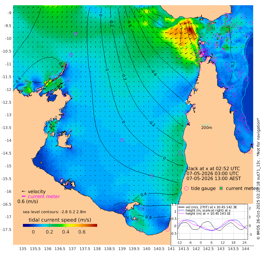 13cm/s 39T +3cm/s rms + 7cm/s -42T. ARA-GOC87 57m 14cm/s -59T +3cm/s rms + 2cm/s -2T. ARA-GOC87 60m 20cm/s 37T +2cm/s rms + 3cm/s 61T. ARA-GOC87 47m -21cm Daru -22cm Bobo Island -30cm Meer Island Barge -27cm Bramble Cay -27cm Unnamed Cay -27cm Pearce Cay -34cm Stephens Island -29cm Merrie England Shoals -25cm Mutacomal Reef -27cm Darnley Island Barge -37cm East Cay -23cm Yorke Island Barge -34cm Rennel Island -27cm Aureed Island -26cm Dungeness Reef -10cm Zagai Island -23cm Yam Island 1cm Dauan Island 2cm Saibai Island 9cm Phipi Reef -5cm Warrior Reef - West -34cm Mabuiag Island Barge -35cm Half Way Island -32cm Coconut Island -35cm Dugong Islet -30cm Poll Island -36cm Kirkcaldie Reef -36cm Suarji Island -22cm Sue Islet -111cm Hawkesbury Island -50cm Alert Patches -50cm Twin Island -82cm Badu Island -42cm St Pauls (Moa Island) -91cm Kubin (Moa Island) -61cm Ince Point -75cm Thursday Island -69cm Nardana Patches -86cm Turtle Head -103cm Round Island -112cm Goods Island -137cm Booby Island -131cm White Rocks Area -148cm Carpentaria -45cm Papou Point -163cm Bampfield Head -117cm Crab Island -135cm Red Wallis Island -112cm Packe Island -44cm Harrington Reef -137cm Herald Camp -3cm Sharp Point -76cm Red Island Point -71cm Possession Island -41cm Alpha Rock -45cm Frederick Point -31cm Wyborn Reef Light -32cm Tetley Island -30cm Triangle Reef -44cm Turtle Head Island -39cm Maclennan Cay -35cm Raine Island -31cm Mcsweeny Reef -27cm Collette Reef -27cm Shadwell Reef -27cm Hannibal Island -35cm Round Point -119cm Vrilya Point -38cm Cape Grenville -37cm Hicks Island -41cm Sir Charles Hardy Island -12cm Harvey Island -38cm Kay Reef -34cm Rocky Island -36cm Chapman Island -37cm Ham Reef -34cm Jubilee Reef -35cm Night Island -40cm Unnamed Reef No. 3 -37cm Morris Island -39cm 1st 3 Mile Opening -39cm Creech Reef -39cm Fife Island -35cm Eden Reef -40cm Stanley Island -40cm Normanby River 46cm Yabooma Island 69cm Hutchison River 60cm Elcho Island 62cm North West Crocodile Island 27cm Cape Wessel 58cm Stevens Island 57cm Guluwuru Island 50cm Hopeful Bay 35cm Auster Point 36cm Two Island Bay 78cm Cadell Strait 87cm Mallison Island 52cm Melville Bay (Gove Harbour) 44cm Truant Island 37cm Cape Arnhem 49cm Cape Grey 53cm Hawk Island 56cm Milner Bay (Groote Eylandt) 58cm Cape Beatrice 54cm West Island 50cm Centre Island 93cm Mornington Island 91cm West Wellesley Islands 130cm Bountiful Island 182cm Albert River Mouth 193cm Sweers Island 165cm Karumba 55cm Nassau River Offshore 5cm Christmas Creek -39cm Archer River -66cm Boyd Point -65cm Weipa (Humbug Point) -72cm Pennefather River -108cm Cullen Point