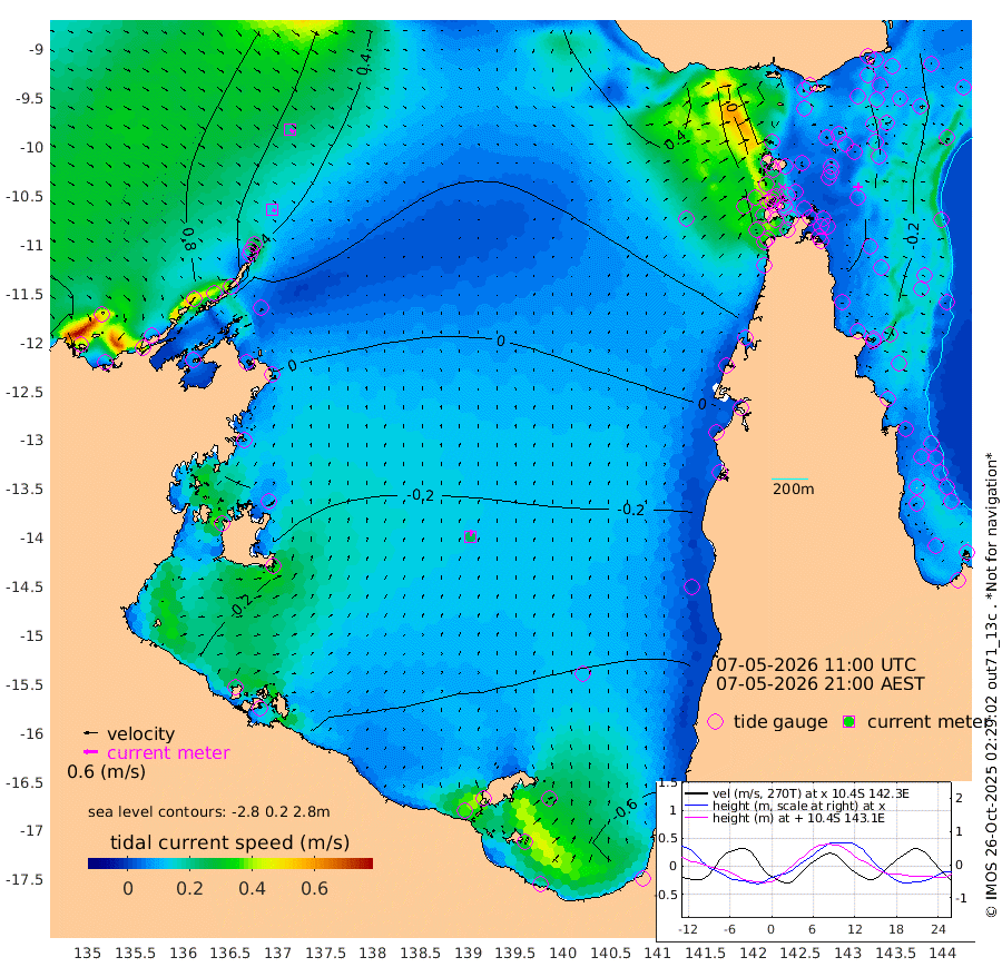 13cm/s 128T +3cm/s rms + 7cm/s -42T. ARA-GOC87 57m 25cm/s 10T +3cm/s rms + 2cm/s -2T. ARA-GOC87 60m 21cm/s 127T +2cm/s rms + 3cm/s 61T. ARA-GOC87 47m -31cm Daru -23cm Bobo Island -12cm Meer Island Barge -19cm Bramble Cay -25cm Unnamed Cay -19cm Pearce Cay -15cm Stephens Island -24cm Merrie England Shoals -32cm Mutacomal Reef -24cm Darnley Island Barge -11cm East Cay -28cm Yorke Island Barge -18cm Rennel Island -24cm Aureed Island -25cm Dungeness Reef -34cm Zagai Island -28cm Yam Island -59cm Dauan Island -62cm Saibai Island -61cm Phipi Reef -51cm Warrior Reef - West -20cm Mabuiag Island Barge -14cm Half Way Island -18cm Coconut Island -19cm Dugong Islet -21cm Poll Island -18cm Kirkcaldie Reef -18cm Suarji Island -33cm Sue Islet 31cm Hawkesbury Island -13cm Alert Patches -9cm Twin Island 21cm Badu Island -14cm St Pauls (Moa Island) 24cm Kubin (Moa Island) -1cm Ince Point 10cm Thursday Island 6cm Nardana Patches 15cm Turtle Head 31cm Round Island 40cm Goods Island 58cm Booby Island 61cm White Rocks Area 67cm Carpentaria 2cm Papou Point 72cm Bampfield Head 52cm Crab Island 53cm Red Wallis Island 27cm Packe Island -10cm Harrington Reef 35cm Herald Camp -14cm Sharp Point 17cm Red Island Point 11cm Possession Island -18cm Alpha Rock -13cm Frederick Point -23cm Wyborn Reef Light -23cm Tetley Island -17cm Triangle Reef -2cm Turtle Head Island -8cm Maclennan Cay -4cm Raine Island -22cm Mcsweeny Reef -26cm Collette Reef -20cm Shadwell Reef -26cm Hannibal Island -17cm Round Point 51cm Vrilya Point -16cm Cape Grenville -10cm Hicks Island -20cm Sir Charles Hardy Island -4cm Harvey Island -15cm Kay Reef -13cm Rocky Island -17cm Chapman Island -12cm Ham Reef -11cm Jubilee Reef -9cm Night Island -11cm Unnamed Reef No. 3 -8cm Morris Island -2cm 1st 3 Mile Opening -8cm Creech Reef -13cm Fife Island -10cm Eden Reef -10cm Stanley Island -7cm Normanby River 102cm Yabooma Island 113cm Hutchison River 104cm Elcho Island 98cm North West Crocodile Island 60cm Cape Wessel 79cm Stevens Island 22cm Guluwuru Island 65cm Hopeful Bay 70cm Auster Point 72cm Two Island Bay 65cm Cadell Strait -133cm Mallison Island 22cm Melville Bay (Gove Harbour) 30cm Truant Island 10cm Cape Arnhem 2cm Cape Grey -12cm Hawk Island -4cm Milner Bay (Groote Eylandt) -15cm Cape Beatrice -27cm West Island -23cm Centre Island -80cm Mornington Island -81cm West Wellesley Islands -105cm Bountiful Island -92cm Albert River Mouth -101cm Sweers Island -99cm Karumba -87cm Nassau River Offshore -70cm Christmas Creek -28cm Archer River -6cm Boyd Point -7cm Weipa (Humbug Point) 17cm Pennefather River 30cm Cullen Point