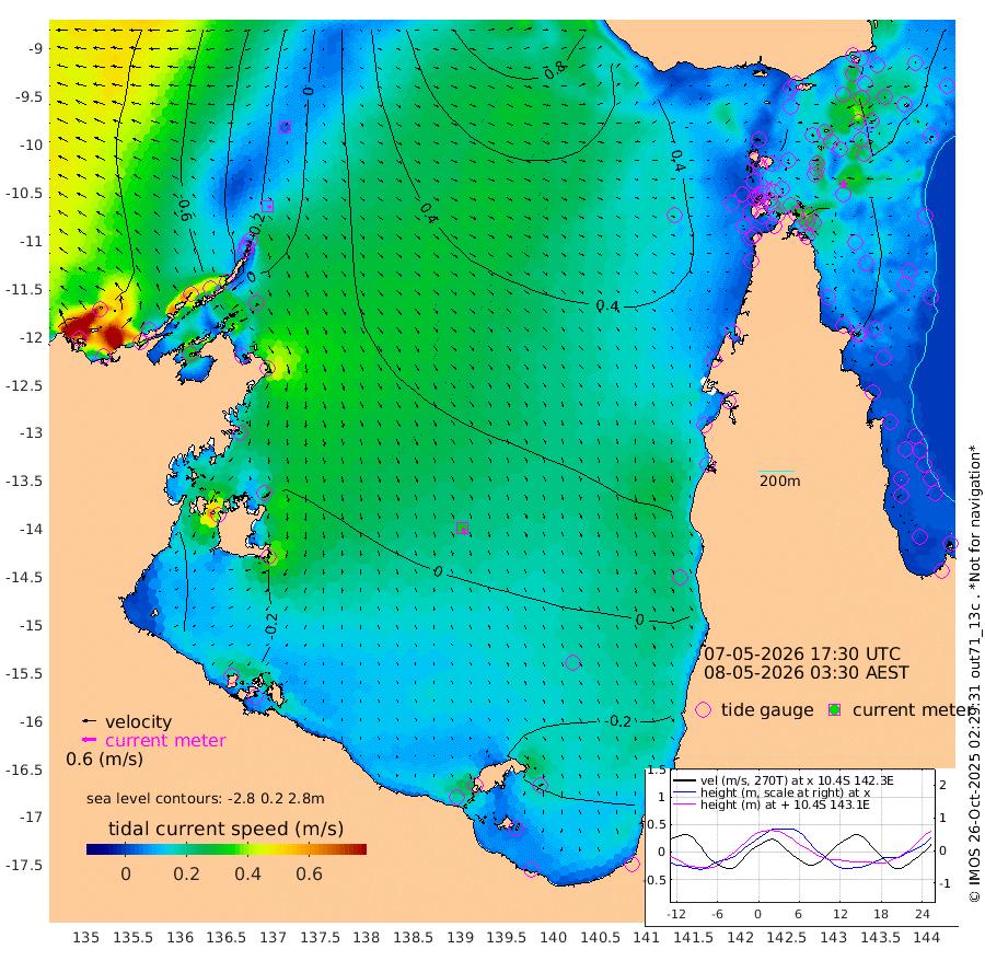 13cm/s 121T +3cm/s rms + 7cm/s -42T. ARA-GOC87 57m 31cm/s 161T +3cm/s rms + 2cm/s -2T. ARA-GOC87 60m 4cm/s 171T +2cm/s rms + 3cm/s 61T. ARA-GOC87 47m 67cm Daru 59cm Bobo Island 53cm Meer Island Barge 61cm Bramble Cay 70cm Unnamed Cay 57cm Pearce Cay 60cm Stephens Island 69cm Merrie England Shoals 73cm Mutacomal Reef 65cm Darnley Island Barge 55cm East Cay 66cm Yorke Island Barge 61cm Rennel Island 60cm Aureed Island 58cm Dungeness Reef 61cm Zagai Island 61cm Yam Island 72cm Dauan Island 76cm Saibai Island 56cm Phipi Reef 68cm Warrior Reef - West 57cm Mabuiag Island Barge 58cm Half Way Island 61cm Coconut Island 62cm Dugong Islet 58cm Poll Island 58cm Kirkcaldie Reef 51cm Suarji Island 67cm Sue Islet 66cm Hawkesbury Island 59cm Alert Patches 59cm Twin Island 57cm Badu Island 58cm St Pauls (Moa Island) 60cm Kubin (Moa Island) 57cm Ince Point 57cm Thursday Island 56cm Nardana Patches 58cm Turtle Head 60cm Round Island 57cm Goods Island 56cm Booby Island 48cm White Rocks Area 59cm Carpentaria 46cm Papou Point 76cm Bampfield Head 44cm Crab Island 58cm Red Wallis Island 67cm Packe Island 57cm Harrington Reef 77cm Herald Camp 15cm Sharp Point 41cm Red Island Point 50cm Possession Island 66cm Alpha Rock 61cm Frederick Point 73cm Wyborn Reef Light 73cm Tetley Island 56cm Triangle Reef 61cm Turtle Head Island 52cm Maclennan Cay 46cm Raine Island 64cm Mcsweeny Reef 66cm Collette Reef 59cm Shadwell Reef 69cm Hannibal Island 63cm Round Point 45cm Vrilya Point 61cm Cape Grenville 55cm Hicks Island 72cm Sir Charles Hardy Island 17cm Harvey Island 61cm Kay Reef 53cm Rocky Island 59cm Chapman Island 55cm Ham Reef 53cm Jubilee Reef 48cm Night Island 55cm Unnamed Reef No. 3 51cm Morris Island 49cm 1st 3 Mile Opening 52cm Creech Reef 54cm Fife Island 57cm Eden Reef 57cm Stanley Island 53cm Normanby River -69cm Yabooma Island -84cm Hutchison River -83cm Elcho Island -89cm North West Crocodile Island -10cm Cape Wessel -45cm Stevens Island 19cm Guluwuru Island -39cm Hopeful Bay -30cm Auster Point -29cm Two Island Bay -37cm Cadell Strait 215cm Mallison Island 6cm Melville Bay (Gove Harbour) 13cm Truant Island 10cm Cape Arnhem -18cm Cape Grey -23cm Hawk Island -54cm Milner Bay (Groote Eylandt) -57cm Cape Beatrice -71cm West Island -71cm Centre Island -61cm Mornington Island -56cm West Wellesley Islands -80cm Bountiful Island -134cm Albert River Mouth -145cm Sweers Island -124cm Karumba -17cm Nassau River Offshore 26cm Christmas Creek 39cm Archer River 51cm Boyd Point 48cm Weipa (Humbug Point) 36cm Pennefather River 54cm Cullen Point