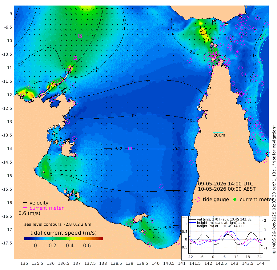 28cm/s 121T +3cm/s rms + 7cm/s -42T. ARA-GOC87 57m 11cm/s 27T +3cm/s rms + 2cm/s -2T. ARA-GOC87 60m 30cm/s 118T +2cm/s rms + 3cm/s 61T. ARA-GOC87 47m -22cm Daru -16cm Bobo Island -8cm Meer Island Barge -21cm Bramble Cay -24cm Unnamed Cay -14cm Pearce Cay -18cm Stephens Island -34cm Merrie England Shoals -30cm Mutacomal Reef -18cm Darnley Island Barge -15cm East Cay -17cm Yorke Island Barge -18cm Rennel Island -14cm Aureed Island -7cm Dungeness Reef 10cm Zagai Island 11cm Yam Island 27cm Dauan Island 19cm Saibai Island 11cm Phipi Reef 2cm Warrior Reef - West 33cm Mabuiag Island Barge -13cm Half Way Island -9cm Coconut Island -11cm Dugong Islet 1cm Poll Island -3cm Kirkcaldie Reef 13cm Suarji Island -5cm Sue Islet 72cm Hawkesbury Island 12cm Alert Patches 16cm Twin Island 71cm Badu Island 22cm St Pauls (Moa Island) 62cm Kubin (Moa Island) 31cm Ince Point 41cm Thursday Island 39cm Nardana Patches 51cm Turtle Head 62cm Round Island 76cm Goods Island 88cm Booby Island 84cm White Rocks Area 79cm Carpentaria 30cm Papou Point 97cm Bampfield Head 71cm Crab Island 78cm Red Wallis Island 57cm Packe Island -14cm Harrington Reef 73cm Herald Camp -4cm Sharp Point 43cm Red Island Point 34cm Possession Island 1cm Alpha Rock 1cm Frederick Point -19cm Wyborn Reef Light -15cm Tetley Island -8cm Triangle Reef -2cm Turtle Head Island -5cm Maclennan Cay -3cm Raine Island -22cm Mcsweeny Reef -26cm Collette Reef -16cm Shadwell Reef -29cm Hannibal Island -25cm Round Point 60cm Vrilya Point -24cm Cape Grenville -12cm Hicks Island -8cm Sir Charles Hardy Island -6cm Harvey Island -23cm Kay Reef -12cm Rocky Island -12cm Chapman Island -10cm Ham Reef -8cm Jubilee Reef -12cm Night Island -12cm Unnamed Reef No. 3 -11cm Morris Island 2cm 1st 3 Mile Opening -7cm Creech Reef -23cm Fife Island -9cm Eden Reef -15cm Stanley Island -16cm Normanby River 118cm Yabooma Island 137cm Hutchison River 115cm Elcho Island 107cm North West Crocodile Island 81cm Cape Wessel 92cm Stevens Island 68cm Guluwuru Island 76cm Hopeful Bay 86cm Auster Point 92cm Two Island Bay 106cm Cadell Strait -49cm Mallison Island 56cm Melville Bay (Gove Harbour) 66cm Truant Island 36cm Cape Arnhem 12cm Cape Grey -13cm Hawk Island -25cm Milner Bay (Groote Eylandt) -40cm Cape Beatrice -71cm West Island -67cm Centre Island -103cm Mornington Island -102cm West Wellesley Islands -110cm Bountiful Island -113cm Albert River Mouth -136cm Sweers Island -125cm Karumba -86cm Nassau River Offshore -53cm Christmas Creek -10cm Archer River 16cm Boyd Point 19cm Weipa (Humbug Point) 21cm Pennefather River 48cm Cullen Point