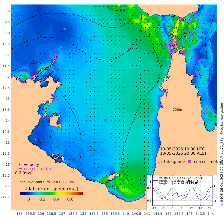 9cm/s 10T +3cm/s rms + 7cm/s -42T. ARA-GOC87 57m 28cm/s 11T +3cm/s rms + 2cm/s -2T. ARA-GOC87 60m 9cm/s 51T +2cm/s rms + 3cm/s 61T. ARA-GOC87 47m 11cm Daru 21cm Bobo Island -7cm Meer Island Barge 6cm Bramble Cay 13cm Unnamed Cay 10cm Pearce Cay 10cm Stephens Island 20cm Merrie England Shoals 19cm Mutacomal Reef 4cm Darnley Island Barge 2cm East Cay 7cm Yorke Island Barge 14cm Rennel Island 13cm Aureed Island -1cm Dungeness Reef -3cm Zagai Island -10cm Yam Island -64cm Dauan Island -39cm Saibai Island -52cm Phipi Reef -22cm Warrior Reef - West -25cm Mabuiag Island Barge 9cm Half Way Island 22cm Coconut Island 6cm Dugong Islet 4cm Poll Island 5cm Kirkcaldie Reef 5cm Suarji Island 6cm Sue Islet -60cm Hawkesbury Island -1cm Alert Patches 1cm Twin Island -53cm Badu Island -8cm St Pauls (Moa Island) -51cm Kubin (Moa Island) -17cm Ince Point -25cm Thursday Island -24cm Nardana Patches -44cm Turtle Head -40cm Round Island -59cm Goods Island -59cm Booby Island -45cm White Rocks Area -19cm Carpentaria 1cm Papou Point -36cm Bampfield Head -45cm Crab Island -54cm Red Wallis Island -56cm Packe Island 27cm Harrington Reef -68cm Herald Camp 2cm Sharp Point -23cm Red Island Point -8cm Possession Island 10cm Alpha Rock 12cm Frederick Point 24cm Wyborn Reef Light 22cm Tetley Island -5cm Triangle Reef 20cm Turtle Head Island -6cm Maclennan Cay -10cm Raine Island 13cm Mcsweeny Reef 12cm Collette Reef -4cm Shadwell Reef 13cm Hannibal Island 9cm Round Point -37cm Vrilya Point 7cm Cape Grenville -1cm Hicks Island -11cm Sir Charles Hardy Island 1cm Harvey Island 6cm Kay Reef -7cm Rocky Island -8cm Chapman Island -7cm Ham Reef -8cm Jubilee Reef -8cm Night Island -4cm Unnamed Reef No. 3 -5cm Morris Island -14cm 1st 3 Mile Opening -9cm Creech Reef -3cm Fife Island -14cm Eden Reef -6cm Stanley Island -1cm Normanby River -32cm Yabooma Island -31cm Hutchison River -21cm Elcho Island -23cm North West Crocodile Island 7cm Cape Wessel -9cm Stevens Island -8cm Guluwuru Island -11cm Hopeful Bay -1cm Auster Point -18cm Two Island Bay -38cm Cadell Strait -10cm Mallison Island -6cm Melville Bay (Gove Harbour) -4cm Truant Island -1cm Cape Arnhem 16cm Cape Grey 13cm Hawk Island 34cm Milner Bay (Groote Eylandt) 27cm Cape Beatrice 42cm West Island 46cm Centre Island 0cm Mornington Island 0cm West Wellesley Islands -17cm Bountiful Island -16cm Albert River Mouth 7cm Sweers Island -19cm Karumba -43cm Nassau River Offshore -57cm Christmas Creek -48cm Archer River -46cm Boyd Point -61cm Weipa (Humbug Point) -31cm Pennefather River -48cm Cullen Point