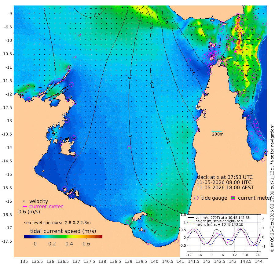 17cm/s 47T +3cm/s rms + 7cm/s -42T. ARA-GOC87 57m 18cm/s -6T +3cm/s rms + 2cm/s -2T. ARA-GOC87 60m 22cm/s 47T +2cm/s rms + 3cm/s 61T. ARA-GOC87 47m 16cm Daru 22cm Bobo Island 34cm Meer Island Barge 42cm Bramble Cay 36cm Unnamed Cay 21cm Pearce Cay 34cm Stephens Island 47cm Merrie England Shoals 21cm Mutacomal Reef 36cm Darnley Island Barge 37cm East Cay 24cm Yorke Island Barge 20cm Rennel Island 13cm Aureed Island -9cm Dungeness Reef -42cm Zagai Island -53cm Yam Island -101cm Dauan Island -86cm Saibai Island -79cm Phipi Reef -56cm Warrior Reef - West -87cm Mabuiag Island Barge 15cm Half Way Island 1cm Coconut Island 2cm Dugong Islet -28cm Poll Island -21cm Kirkcaldie Reef -56cm Suarji Island -20cm Sue Islet -123cm Hawkesbury Island -54cm Alert Patches -57cm Twin Island -120cm Badu Island -70cm St Pauls (Moa Island) -112cm Kubin (Moa Island) -79cm Ince Point -91cm Thursday Island -89cm Nardana Patches -102cm Turtle Head -99cm Round Island -121cm Goods Island -131cm Booby Island -125cm White Rocks Area -106cm Carpentaria -61cm Papou Point -111cm Bampfield Head -105cm Crab Island -132cm Red Wallis Island -121cm Packe Island 8cm Harrington Reef -129cm Herald Camp -17cm Sharp Point -86cm Red Island Point -63cm Possession Island -37cm Alpha Rock -28cm Frederick Point 16cm Wyborn Reef Light 5cm Tetley Island 15cm Triangle Reef 19cm Turtle Head Island 20cm Maclennan Cay 28cm Raine Island 31cm Mcsweeny Reef 38cm Collette Reef 34cm Shadwell Reef 46cm Hannibal Island 43cm Round Point -92cm Vrilya Point 40cm Cape Grenville 34cm Hicks Island 22cm Sir Charles Hardy Island 11cm Harvey Island 45cm Kay Reef 33cm Rocky Island 30cm Chapman Island 30cm Ham Reef 32cm Jubilee Reef 27cm Night Island 30cm Unnamed Reef No. 3 37cm Morris Island 29cm 1st 3 Mile Opening 31cm Creech Reef 40cm Fife Island 42cm Eden Reef 42cm Stanley Island 46cm Normanby River 7cm Yabooma Island 15cm Hutchison River 15cm Elcho Island 8cm North West Crocodile Island 25cm Cape Wessel 34cm Stevens Island 45cm Guluwuru Island 35cm Hopeful Bay 31cm Auster Point 21cm Two Island Bay 30cm Cadell Strait 140cm Mallison Island 41cm Melville Bay (Gove Harbour) 41cm Truant Island 33cm Cape Arnhem 43cm Cape Grey 42cm Hawk Island 46cm Milner Bay (Groote Eylandt) 40cm Cape Beatrice 39cm West Island 40cm Centre Island 43cm Mornington Island 43cm West Wellesley Islands 40cm Bountiful Island 57cm Albert River Mouth 93cm Sweers Island 54cm Karumba -3cm Nassau River Offshore -31cm Christmas Creek -44cm Archer River -61cm Boyd Point -70cm Weipa (Humbug Point) -48cm Pennefather River -95cm Cullen Point