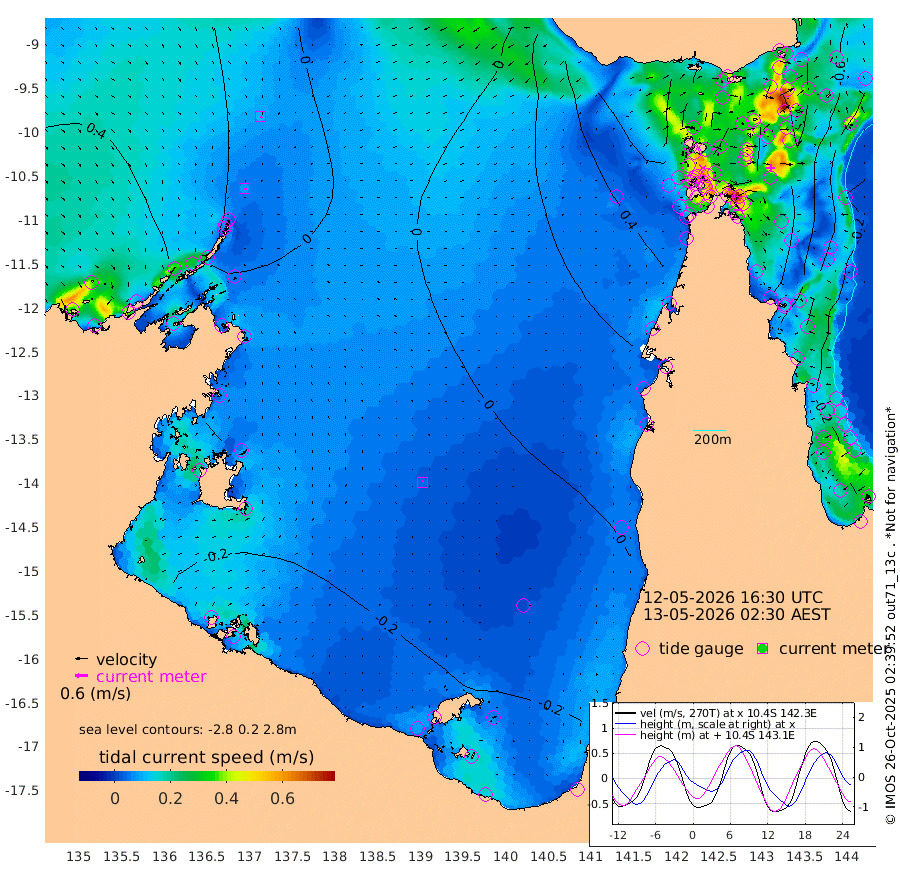 8cm/s 148T +3cm/s rms + 7cm/s -42T. ARA-GOC87 57m 4cm/s 44T +3cm/s rms + 2cm/s -2T. ARA-GOC87 60m 11cm/s 139T +2cm/s rms + 3cm/s 61T. ARA-GOC87 47m -83cm Daru -78cm Bobo Island -29cm Meer Island Barge -59cm Bramble Cay -78cm Unnamed Cay -70cm Pearce Cay -68cm Stephens Island -90cm Merrie England Shoals -93cm Mutacomal Reef -57cm Darnley Island Barge -37cm East Cay -64cm Yorke Island Barge -74cm Rennel Island -66cm Aureed Island -64cm Dungeness Reef -44cm Zagai Island -42cm Yam Island 7cm Dauan Island 6cm Saibai Island -19cm Phipi Reef -44cm Warrior Reef - West 10cm Mabuiag Island Barge -73cm Half Way Island -75cm Coconut Island -70cm Dugong Islet -60cm Poll Island -64cm Kirkcaldie Reef -40cm Suarji Island -53cm Sue Islet 57cm Hawkesbury Island -39cm Alert Patches -41cm Twin Island 48cm Badu Island -34cm St Pauls (Moa Island) 29cm Kubin (Moa Island) -13cm Ince Point 4cm Thursday Island 0cm Nardana Patches 23cm Turtle Head 35cm Round Island 58cm Goods Island 79cm Booby Island 69cm White Rocks Area 74cm Carpentaria -24cm Papou Point 80cm Bampfield Head 60cm Crab Island 66cm Red Wallis Island 30cm Packe Island -85cm Harrington Reef 68cm Herald Camp -17cm Sharp Point 22cm Red Island Point -9cm Possession Island -50cm Alpha Rock -61cm Frederick Point -87cm Wyborn Reef Light -83cm Tetley Island -30cm Triangle Reef -78cm Turtle Head Island -26cm Maclennan Cay -12cm Raine Island -70cm Mcsweeny Reef -65cm Collette Reef -36cm Shadwell Reef -74cm Hannibal Island -63cm Round Point 53cm Vrilya Point -54cm Cape Grenville -38cm Hicks Island -25cm Sir Charles Hardy Island -15cm Harvey Island -42cm Kay Reef -21cm Rocky Island -13cm Chapman Island -11cm Ham Reef -18cm Jubilee Reef -26cm Night Island -17cm Unnamed Reef No. 3 -25cm Morris Island -10cm 1st 3 Mile Opening -18cm Creech Reef -32cm Fife Island -20cm Eden Reef -27cm Stanley Island -31cm Normanby River 63cm Yabooma Island 54cm Hutchison River 48cm Elcho Island 47cm North West Crocodile Island 33cm Cape Wessel 27cm Stevens Island 13cm Guluwuru Island 31cm Hopeful Bay 35cm Auster Point 38cm Two Island Bay 38cm Cadell Strait -68cm Mallison Island 10cm Melville Bay (Gove Harbour) 15cm Truant Island 4cm Cape Arnhem -3cm Cape Grey -21cm Hawk Island -20cm Milner Bay (Groote Eylandt) -30cm Cape Beatrice -39cm West Island -38cm Centre Island -60cm Mornington Island -52cm West Wellesley Islands -38cm Bountiful Island -62cm Albert River Mouth -72cm Sweers Island -67cm Karumba -39cm Nassau River Offshore -14cm Christmas Creek 15cm Archer River 32cm Boyd Point 41cm Weipa (Humbug Point) 18cm Pennefather River 55cm Cullen Point