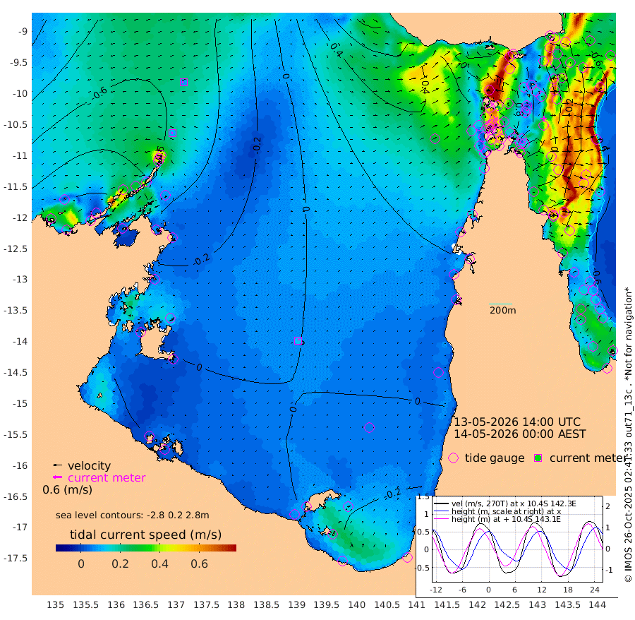 10cm/s -73T +3cm/s rms + 7cm/s -42T. ARA-GOC87 57m 13cm/s 29T +3cm/s rms + 2cm/s -2T. ARA-GOC87 60m 8cm/s -94T +2cm/s rms + 3cm/s 61T. ARA-GOC87 47m 4cm Daru 1cm Bobo Island -46cm Meer Island Barge -44cm Bramble Cay -20cm Unnamed Cay -17cm Pearce Cay -31cm Stephens Island -30cm Merrie England Shoals 2cm Mutacomal Reef -30cm Darnley Island Barge -48cm East Cay -8cm Yorke Island Barge -7cm Rennel Island 4cm Aureed Island 19cm Dungeness Reef 70cm Zagai Island 63cm Yam Island 85cm Dauan Island 97cm Saibai Island 82cm Phipi Reef 65cm Warrior Reef - West 91cm Mabuiag Island Barge -12cm Half Way Island 29cm Coconut Island 4cm Dugong Islet 44cm Poll Island 33cm Kirkcaldie Reef 90cm Suarji Island 51cm Sue Islet 53cm Hawkesbury Island 75cm Alert Patches 71cm Twin Island 67cm Badu Island 83cm St Pauls (Moa Island) 56cm Kubin (Moa Island) 73cm Ince Point 72cm Thursday Island 74cm Nardana Patches 60cm Turtle Head 69cm Round Island 47cm Goods Island 51cm Booby Island 52cm White Rocks Area 67cm Carpentaria 73cm Papou Point 82cm Bampfield Head 39cm Crab Island 49cm Red Wallis Island 48cm Packe Island 17cm Harrington Reef 62cm Herald Camp 31cm Sharp Point 57cm Red Island Point 77cm Possession Island 62cm Alpha Rock 49cm Frederick Point 17cm Wyborn Reef Light 28cm Tetley Island -22cm Triangle Reef 4cm Turtle Head Island -37cm Maclennan Cay -49cm Raine Island -19cm Mcsweeny Reef -23cm Collette Reef -37cm Shadwell Reef -32cm Hannibal Island -45cm Round Point 32cm Vrilya Point -41cm Cape Grenville -44cm Hicks Island -39cm Sir Charles Hardy Island -13cm Harvey Island -50cm Kay Reef -48cm Rocky Island -46cm Chapman Island -46cm Ham Reef -49cm Jubilee Reef -46cm Night Island -47cm Unnamed Reef No. 3 -55cm Morris Island -48cm 1st 3 Mile Opening -50cm Creech Reef -62cm Fife Island -71cm Eden Reef -59cm Stanley Island -68cm Normanby River -99cm Yabooma Island -109cm Hutchison River -97cm Elcho Island -94cm North West Crocodile Island -51cm Cape Wessel -88cm Stevens Island -58cm Guluwuru Island -80cm Hopeful Bay -61cm Auster Point -77cm Two Island Bay -116cm Cadell Strait -97cm Mallison Island -53cm Melville Bay (Gove Harbour) -51cm Truant Island -30cm Cape Arnhem -15cm Cape Grey -10cm Hawk Island 5cm Milner Bay (Groote Eylandt) -3cm Cape Beatrice 18cm West Island 28cm Centre Island -11cm Mornington Island -12cm West Wellesley Islands -17cm Bountiful Island -43cm Albert River Mouth -33cm Sweers Island -38cm Karumba -28cm Nassau River Offshore -17cm Christmas Creek -4cm Archer River 13cm Boyd Point 5cm Weipa (Humbug Point) 10cm Pennefather River 34cm Cullen Point