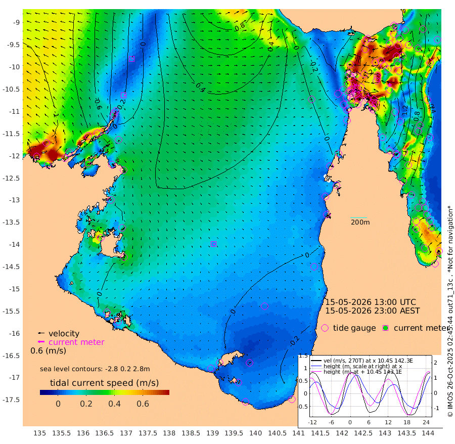 12cm/s 91T +3cm/s rms + 7cm/s -42T. ARA-GOC87 57m 9cm/s 131T +3cm/s rms + 2cm/s -2T. ARA-GOC87 60m 7cm/s 66T +2cm/s rms + 3cm/s 61T. ARA-GOC87 47m 154cm Daru 147cm Bobo Island 63cm Meer Island Barge 94cm Bramble Cay 136cm Unnamed Cay 129cm Pearce Cay 118cm Stephens Island 133cm Merrie England Shoals 156cm Mutacomal Reef 110cm Darnley Island Barge 67cm East Cay 131cm Yorke Island Barge 136cm Rennel Island 137cm Aureed Island 146cm Dungeness Reef 151cm Zagai Island 143cm Yam Island 107cm Dauan Island 108cm Saibai Island 130cm Phipi Reef 148cm Warrior Reef - West 90cm Mabuiag Island Barge 132cm Half Way Island 158cm Coconut Island 142cm Dugong Islet 149cm Poll Island 149cm Kirkcaldie Reef 158cm Suarji Island 147cm Sue Islet 26cm Hawkesbury Island 142cm Alert Patches 142cm Twin Island 46cm Badu Island 144cm St Pauls (Moa Island) 60cm Kubin (Moa Island) 110cm Ince Point 92cm Thursday Island 97cm Nardana Patches 68cm Turtle Head 62cm Round Island 25cm Goods Island 1cm Booby Island 8cm White Rocks Area 7cm Carpentaria 123cm Papou Point 43cm Bampfield Head -1cm Crab Island 4cm Red Wallis Island 46cm Packe Island 163cm Harrington Reef 31cm Herald Camp 46cm Sharp Point 54cm Red Island Point 113cm Possession Island 138cm Alpha Rock 151cm Frederick Point 162cm Wyborn Reef Light 163cm Tetley Island 69cm Triangle Reef 159cm Turtle Head Island 63cm Maclennan Cay 34cm Raine Island 123cm Mcsweeny Reef 113cm Collette Reef 69cm Shadwell Reef 121cm Hannibal Island 96cm Round Point -7cm Vrilya Point 86cm Cape Grenville 75cm Hicks Island 72cm Sir Charles Hardy Island 26cm Harvey Island 66cm Kay Reef 46cm Rocky Island 36cm Chapman Island 34cm Ham Reef 43cm Jubilee Reef 46cm Night Island 36cm Unnamed Reef No. 3 47cm Morris Island 44cm 1st 3 Mile Opening 45cm Creech Reef 41cm Fife Island 41cm Eden Reef 47cm Stanley Island 47cm Normanby River -101cm Yabooma Island -86cm Hutchison River -93cm Elcho Island -99cm North West Crocodile Island -29cm Cape Wessel -61cm Stevens Island 18cm Guluwuru Island -65cm Hopeful Bay -39cm Auster Point -52cm Two Island Bay -62cm Cadell Strait 98cm Mallison Island 5cm Melville Bay (Gove Harbour) 10cm Truant Island 16cm Cape Arnhem 11cm Cape Grey 11cm Hawk Island -6cm Milner Bay (Groote Eylandt) -11cm Cape Beatrice -14cm West Island -5cm Centre Island -5cm Mornington Island -9cm West Wellesley Islands -30cm Bountiful Island -57cm Albert River Mouth -53cm Sweers Island -50cm Karumba -13cm Nassau River Offshore 2cm Christmas Creek -3cm Archer River 4cm Boyd Point -10cm Weipa (Humbug Point) 4cm Pennefather River -6cm Cullen Point