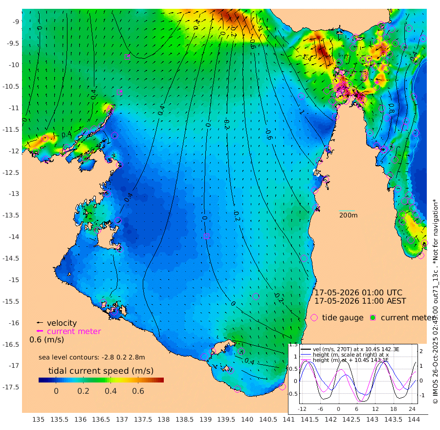 21cm/s 53T +3cm/s rms + 7cm/s -42T. ARA-GOC87 57m 6cm/s -37T +3cm/s rms + 2cm/s -2T. ARA-GOC87 60m 26cm/s 44T +2cm/s rms + 3cm/s 61T. ARA-GOC87 47m 85cm Daru 88cm Bobo Island 29cm Meer Island Barge 56cm Bramble Cay 76cm Unnamed Cay 77cm Pearce Cay 68cm Stephens Island 76cm Merrie England Shoals 87cm Mutacomal Reef 62cm Darnley Island Barge 31cm East Cay 74cm Yorke Island Barge 70cm Rennel Island 74cm Aureed Island 68cm Dungeness Reef 61cm Zagai Island 56cm Yam Island 6cm Dauan Island 13cm Saibai Island 21cm Phipi Reef 59cm Warrior Reef - West -21cm Mabuiag Island Barge 75cm Half Way Island 68cm Coconut Island 76cm Dugong Islet 62cm Poll Island 61cm Kirkcaldie Reef 35cm Suarji Island 61cm Sue Islet -118cm Hawkesbury Island 10cm Alert Patches 25cm Twin Island -104cm Badu Island 26cm St Pauls (Moa Island) -73cm Kubin (Moa Island) -17cm Ince Point -44cm Thursday Island -36cm Nardana Patches -79cm Turtle Head -98cm Round Island -132cm Goods Island -171cm Booby Island -152cm White Rocks Area -163cm Carpentaria 20cm Papou Point -182cm Bampfield Head -151cm Crab Island -156cm Red Wallis Island -103cm Packe Island 80cm Harrington Reef -140cm Herald Camp 17cm Sharp Point -65cm Red Island Point -26cm Possession Island 38cm Alpha Rock 50cm Frederick Point 81cm Wyborn Reef Light 77cm Tetley Island 23cm Triangle Reef 75cm Turtle Head Island 22cm Maclennan Cay -3cm Raine Island 65cm Mcsweeny Reef 56cm Collette Reef 23cm Shadwell Reef 66cm Hannibal Island 51cm Round Point -149cm Vrilya Point 40cm Cape Grenville 33cm Hicks Island 26cm Sir Charles Hardy Island 13cm Harvey Island 25cm Kay Reef 12cm Rocky Island -2cm Chapman Island -1cm Ham Reef 9cm Jubilee Reef 10cm Night Island -2cm Unnamed Reef No. 3 12cm Morris Island -3cm 1st 3 Mile Opening 5cm Creech Reef 12cm Fife Island 12cm Eden Reef 10cm Stanley Island 25cm Normanby River 41cm Yabooma Island 66cm Hutchison River 50cm Elcho Island 55cm North West Crocodile Island 58cm Cape Wessel 67cm Stevens Island 89cm Guluwuru Island 49cm Hopeful Bay 51cm Auster Point 64cm Two Island Bay 96cm Cadell Strait 134cm Mallison Island 74cm Melville Bay (Gove Harbour) 72cm Truant Island 53cm Cape Arnhem 53cm Cape Grey 53cm Hawk Island 47cm Milner Bay (Groote Eylandt) 46cm Cape Beatrice 42cm West Island 34cm Centre Island 54cm Mornington Island 51cm West Wellesley Islands 71cm Bountiful Island 93cm Albert River Mouth 104cm Sweers Island 83cm Karumba 18cm Nassau River Offshore -26cm Christmas Creek -78cm Archer River -93cm Boyd Point -106cm Weipa (Humbug Point) -102cm Pennefather River -136cm Cullen Point