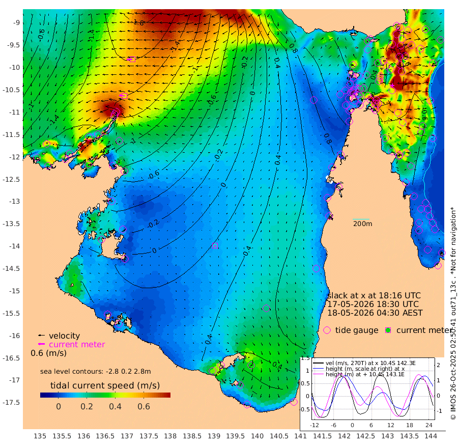 51cm/s -85T +3cm/s rms + 7cm/s -42T. ARA-GOC87 57m 14cm/s -178T +3cm/s rms + 2cm/s -2T. ARA-GOC87 60m 54cm/s -94T +2cm/s rms + 3cm/s 61T. ARA-GOC87 47m -54cm Daru -73cm Bobo Island -53cm Meer Island Barge -68cm Bramble Cay -64cm Unnamed Cay -76cm Pearce Cay -70cm Stephens Island -69cm Merrie England Shoals -54cm Mutacomal Reef -65cm Darnley Island Barge -55cm East Cay -59cm Yorke Island Barge -56cm Rennel Island -57cm Aureed Island -35cm Dungeness Reef -5cm Zagai Island 5cm Yam Island 67cm Dauan Island 63cm Saibai Island 57cm Phipi Reef 10cm Warrior Reef - West 67cm Mabuiag Island Barge -61cm Half Way Island -44cm Coconut Island -48cm Dugong Islet -20cm Poll Island -20cm Kirkcaldie Reef 24cm Suarji Island -11cm Sue Islet 93cm Hawkesbury Island 30cm Alert Patches 16cm Twin Island 88cm Badu Island 27cm St Pauls (Moa Island) 69cm Kubin (Moa Island) 47cm Ince Point 62cm Thursday Island 59cm Nardana Patches 79cm Turtle Head 88cm Round Island 96cm Goods Island 117cm Booby Island 105cm White Rocks Area 108cm Carpentaria 13cm Papou Point 122cm Bampfield Head 98cm Crab Island 111cm Red Wallis Island 89cm Packe Island -54cm Harrington Reef 127cm Herald Camp 14cm Sharp Point 63cm Red Island Point 45cm Possession Island 8cm Alpha Rock -14cm Frederick Point -55cm Wyborn Reef Light -46cm Tetley Island -36cm Triangle Reef -72cm Turtle Head Island -40cm Maclennan Cay -34cm Raine Island -58cm Mcsweeny Reef -54cm Collette Reef -39cm Shadwell Reef -67cm Hannibal Island -67cm Round Point 94cm Vrilya Point -52cm Cape Grenville -53cm Hicks Island -38cm Sir Charles Hardy Island -16cm Harvey Island -48cm Kay Reef -38cm Rocky Island -31cm Chapman Island -31cm Ham Reef -40cm Jubilee Reef -36cm Night Island -32cm Unnamed Reef No. 3 -45cm Morris Island -34cm 1st 3 Mile Opening -38cm Creech Reef -44cm Fife Island -58cm Eden Reef -43cm Stanley Island -60cm Normanby River -175cm Yabooma Island -227cm Hutchison River -190cm Elcho Island -180cm North West Crocodile Island -158cm Cape Wessel -192cm Stevens Island -177cm Guluwuru Island -160cm Hopeful Bay -162cm Auster Point -174cm Two Island Bay -235cm Cadell Strait -188cm Mallison Island -149cm Melville Bay (Gove Harbour) -159cm Truant Island -102cm Cape Arnhem -68cm Cape Grey -48cm Hawk Island -15cm Milner Bay (Groote Eylandt) -3cm Cape Beatrice 46cm West Island 49cm Centre Island 55cm Mornington Island 60cm West Wellesley Islands 74cm Bountiful Island 39cm Albert River Mouth 37cm Sweers Island 56cm Karumba 76cm Nassau River Offshore 87cm Christmas Creek 81cm Archer River 82cm Boyd Point 94cm Weipa (Humbug Point) 65cm Pennefather River 104cm Cullen Point