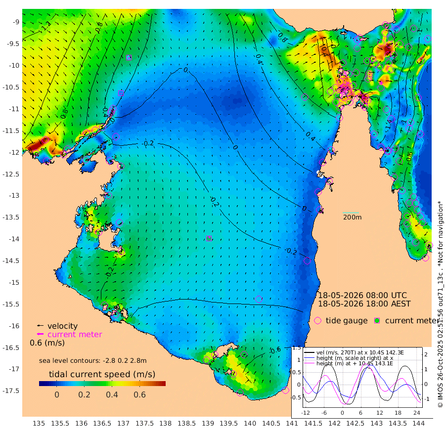 7cm/s 179T +3cm/s rms + 7cm/s -42T. ARA-GOC87 57m 24cm/s 12T +3cm/s rms + 2cm/s -2T. ARA-GOC87 60m 15cm/s 157T +2cm/s rms + 3cm/s 61T. ARA-GOC87 47m -153cm Daru -146cm Bobo Island -80cm Meer Island Barge -106cm Bramble Cay -137cm Unnamed Cay -137cm Pearce Cay -126cm Stephens Island -130cm Merrie England Shoals -149cm Mutacomal Reef -122cm Darnley Island Barge -83cm East Cay -137cm Yorke Island Barge -134cm Rennel Island -142cm Aureed Island -147cm Dungeness Reef -141cm Zagai Island -136cm Yam Island -120cm Dauan Island -109cm Saibai Island -145cm Phipi Reef -155cm Warrior Reef - West -60cm Mabuiag Island Barge -133cm Half Way Island -138cm Coconut Island -143cm Dugong Islet -135cm Poll Island -135cm Kirkcaldie Reef -134cm Suarji Island -132cm Sue Islet 27cm Hawkesbury Island -102cm Alert Patches -108cm Twin Island 5cm Badu Island -113cm St Pauls (Moa Island) -21cm Kubin (Moa Island) -72cm Ince Point -47cm Thursday Island -55cm Nardana Patches -27cm Turtle Head -5cm Round Island 27cm Goods Island 69cm Booby Island 59cm White Rocks Area 89cm Carpentaria -87cm Papou Point 58cm Bampfield Head 69cm Crab Island 61cm Red Wallis Island -3cm Packe Island -146cm Harrington Reef 16cm Herald Camp -38cm Sharp Point -12cm Red Island Point -64cm Possession Island -105cm Alpha Rock -124cm Frederick Point -141cm Wyborn Reef Light -139cm Tetley Island -78cm Triangle Reef -132cm Turtle Head Island -78cm Maclennan Cay -47cm Raine Island -124cm Mcsweeny Reef -115cm Collette Reef -79cm Shadwell Reef -126cm Hannibal Island -103cm Round Point 83cm Vrilya Point -94cm Cape Grenville -89cm Hicks Island -95cm Sir Charles Hardy Island -30cm Harvey Island -75cm Kay Reef -65cm Rocky Island -53cm Chapman Island -49cm Ham Reef -58cm Jubilee Reef -60cm Night Island -48cm Unnamed Reef No. 3 -63cm Morris Island -56cm 1st 3 Mile Opening -60cm Creech Reef -61cm Fife Island -67cm Eden Reef -63cm Stanley Island -70cm Normanby River 73cm Yabooma Island 58cm Hutchison River 72cm Elcho Island 71cm North West Crocodile Island 30cm Cape Wessel 51cm Stevens Island -32cm Guluwuru Island 50cm Hopeful Bay 39cm Auster Point 37cm Two Island Bay 21cm Cadell Strait -113cm Mallison Island -21cm Melville Bay (Gove Harbour) -16cm Truant Island -23cm Cape Arnhem -23cm Cape Grey -30cm Hawk Island -10cm Milner Bay (Groote Eylandt) -18cm Cape Beatrice -20cm West Island -18cm Centre Island -84cm Mornington Island -81cm West Wellesley Islands -111cm Bountiful Island -92cm Albert River Mouth -90cm Sweers Island -96cm Karumba -86cm Nassau River Offshore -70cm Christmas Creek -8cm Archer River 8cm Boyd Point 9cm Weipa (Humbug Point) 44cm Pennefather River 55cm Cullen Point