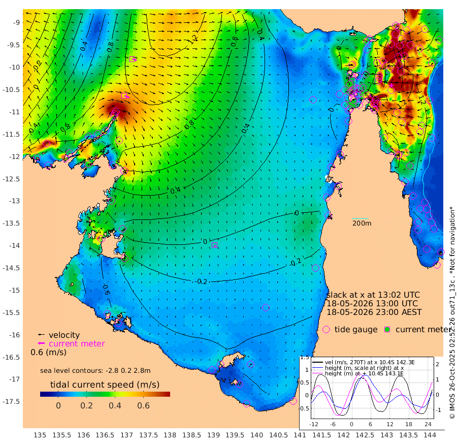 50cm/s 113T +3cm/s rms + 7cm/s -42T. ARA-GOC87 57m 18cm/s 162T +3cm/s rms + 2cm/s -2T. ARA-GOC87 60m 43cm/s 105T +2cm/s rms + 3cm/s 61T. ARA-GOC87 47m 140cm Daru 151cm Bobo Island 120cm Meer Island Barge 138cm Bramble Cay 144cm Unnamed Cay 157cm Pearce Cay 149cm Stephens Island 144cm Merrie England Shoals 136cm Mutacomal Reef 141cm Darnley Island Barge 127cm East Cay 139cm Yorke Island Barge 141cm Rennel Island 141cm Aureed Island 131cm Dungeness Reef 99cm Zagai Island 94cm Yam Island 56cm Dauan Island 44cm Saibai Island 69cm Phipi Reef 97cm Warrior Reef - West 38cm Mabuiag Island Barge 140cm Half Way Island 136cm Coconut Island 135cm Dugong Islet 113cm Poll Island 117cm Kirkcaldie Reef 89cm Suarji Island 100cm Sue Islet 58cm Hawkesbury Island 87cm Alert Patches 94cm Twin Island 62cm Badu Island 84cm St Pauls (Moa Island) 70cm Kubin (Moa Island) 72cm Ince Point 65cm Thursday Island 66cm Nardana Patches 68cm Turtle Head 58cm Round Island 63cm Goods Island 46cm Booby Island 49cm White Rocks Area 24cm Carpentaria 83cm Papou Point 65cm Bampfield Head 37cm Crab Island 44cm Red Wallis Island 66cm Packe Island 144cm Harrington Reef 47cm Herald Camp 10cm Sharp Point 56cm Red Island Point 75cm Possession Island 81cm Alpha Rock 114cm Frederick Point 139cm Wyborn Reef Light 132cm Tetley Island 107cm Triangle Reef 160cm Turtle Head Island 114cm Maclennan Cay 102cm Raine Island 137cm Mcsweeny Reef 130cm Collette Reef 110cm Shadwell Reef 144cm Hannibal Island 141cm Round Point 25cm Vrilya Point 124cm Cape Grenville 126cm Hicks Island 127cm Sir Charles Hardy Island 39cm Harvey Island 118cm Kay Reef 107cm Rocky Island 103cm Chapman Island 98cm Ham Reef 107cm Jubilee Reef 100cm Night Island 101cm Unnamed Reef No. 3 114cm Morris Island 110cm 1st 3 Mile Opening 110cm Creech Reef 108cm Fife Island 131cm Eden Reef 113cm Stanley Island 124cm Normanby River 103cm Yabooma Island 150cm Hutchison River 107cm Elcho Island 90cm North West Crocodile Island 107cm Cape Wessel 112cm Stevens Island 150cm Guluwuru Island 91cm Hopeful Bay 106cm Auster Point 107cm Two Island Bay 162cm Cadell Strait 189cm Mallison Island 117cm Melville Bay (Gove Harbour) 131cm Truant Island 84cm Cape Arnhem 33cm Cape Grey 6cm Hawk Island -54cm Milner Bay (Groote Eylandt) -63cm Cape Beatrice -125cm West Island -122cm Centre Island -100cm Mornington Island -104cm West Wellesley Islands -127cm Bountiful Island -148cm Albert River Mouth -173cm Sweers Island -148cm Karumba -61cm Nassau River Offshore -15cm Christmas Creek 13cm Archer River 24cm Boyd Point 22cm Weipa (Humbug Point) 23cm Pennefather River 17cm Cullen Point