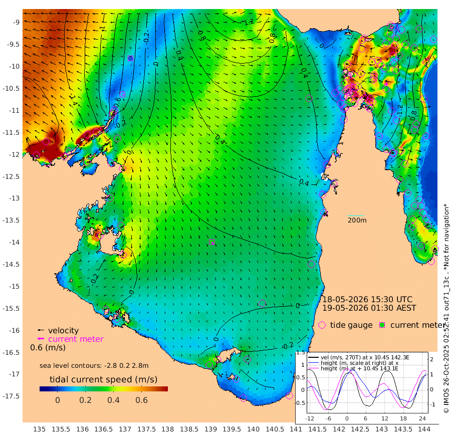 13cm/s 115T +3cm/s rms + 7cm/s -42T. ARA-GOC87 57m 33cm/s 159T +3cm/s rms + 2cm/s -2T. ARA-GOC87 60m 2cm/s -160T +2cm/s rms + 3cm/s 61T. ARA-GOC87 47m 151cm Daru 139cm Bobo Island 74cm Meer Island Barge 93cm Bramble Cay 130cm Unnamed Cay 127cm Pearce Cay 119cm Stephens Island 123cm Merrie England Shoals 147cm Mutacomal Reef 117cm Darnley Island Barge 73cm East Cay 135cm Yorke Island Barge 133cm Rennel Island 137cm Aureed Island 149cm Dungeness Reef 158cm Zagai Island 155cm Yam Island 150cm Dauan Island 144cm Saibai Island 149cm Phipi Reef 166cm Warrior Reef - West 115cm Mabuiag Island Barge 135cm Half Way Island 150cm Coconut Island 148cm Dugong Islet 152cm Poll Island 155cm Kirkcaldie Reef 157cm Suarji Island 155cm Sue Islet 71cm Hawkesbury Island 150cm Alert Patches 151cm Twin Island 84cm Badu Island 157cm St Pauls (Moa Island) 96cm Kubin (Moa Island) 130cm Ince Point 119cm Thursday Island 122cm Nardana Patches 103cm Turtle Head 82cm Round Island 70cm Goods Island 54cm Booby Island 51cm White Rocks Area 56cm Carpentaria 130cm Papou Point 71cm Bampfield Head 44cm Crab Island 57cm Red Wallis Island 89cm Packe Island 156cm Harrington Reef 78cm Herald Camp 49cm Sharp Point 80cm Red Island Point 117cm Possession Island 141cm Alpha Rock 152cm Frederick Point 149cm Wyborn Reef Light 152cm Tetley Island 79cm Triangle Reef 150cm Turtle Head Island 75cm Maclennan Cay 47cm Raine Island 123cm Mcsweeny Reef 112cm Collette Reef 78cm Shadwell Reef 117cm Hannibal Island 92cm Round Point 43cm Vrilya Point 87cm Cape Grenville 80cm Hicks Island 89cm Sir Charles Hardy Island 28cm Harvey Island 69cm Kay Reef 56cm Rocky Island 50cm Chapman Island 49cm Ham Reef 57cm Jubilee Reef 57cm Night Island 50cm Unnamed Reef No. 3 56cm Morris Island 59cm 1st 3 Mile Opening 60cm Creech Reef 55cm Fife Island 55cm Eden Reef 59cm Stanley Island 55cm Normanby River -161cm Yabooma Island -167cm Hutchison River -166cm Elcho Island -170cm North West Crocodile Island -64cm Cape Wessel -124cm Stevens Island -2cm Guluwuru Island -125cm Hopeful Bay -87cm Auster Point -90cm Two Island Bay -100cm Cadell Strait 139cm Mallison Island -23cm Melville Bay (Gove Harbour) -16cm Truant Island -2cm Cape Arnhem -16cm Cape Grey -24cm Hawk Island -46cm Milner Bay (Groote Eylandt) -45cm Cape Beatrice -45cm West Island -42cm Centre Island -30cm Mornington Island -25cm West Wellesley Islands -61cm Bountiful Island -113cm Albert River Mouth -131cm Sweers Island -104cm Karumba 1cm Nassau River Offshore 41cm Christmas Creek 36cm Archer River 51cm Boyd Point 39cm Weipa (Humbug Point) 41cm Pennefather River 44cm Cullen Point