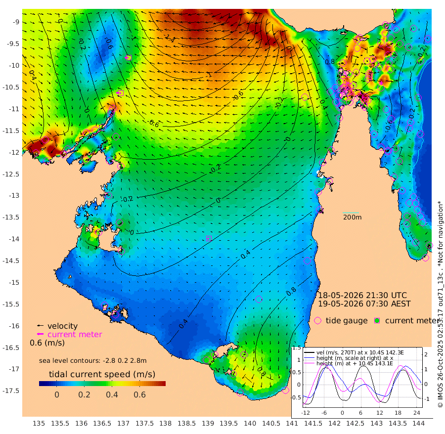 45cm/s -87T +3cm/s rms + 7cm/s -42T. ARA-GOC87 57m 16cm/s -113T +3cm/s rms + 2cm/s -2T. ARA-GOC87 60m 41cm/s -94T +2cm/s rms + 3cm/s 61T. ARA-GOC87 47m -61cm Daru -66cm Bobo Island -24cm Meer Island Barge -35cm Bramble Cay -53cm Unnamed Cay -56cm Pearce Cay -50cm Stephens Island -52cm Merrie England Shoals -59cm Mutacomal Reef -51cm Darnley Island Barge -18cm East Cay -61cm Yorke Island Barge -52cm Rennel Island -58cm Aureed Island -49cm Dungeness Reef -57cm Zagai Island -44cm Yam Island -9cm Dauan Island -23cm Saibai Island 8cm Phipi Reef -40cm Warrior Reef - West -10cm Mabuiag Island Barge -59cm Half Way Island -61cm Coconut Island -60cm Dugong Islet -54cm Poll Island -52cm Kirkcaldie Reef -33cm Suarji Island -61cm Sue Islet 43cm Hawkesbury Island -32cm Alert Patches -42cm Twin Island 35cm Badu Island -42cm St Pauls (Moa Island) 21cm Kubin (Moa Island) -16cm Ince Point -4cm Thursday Island -6cm Nardana Patches 25cm Turtle Head 37cm Round Island 52cm Goods Island 59cm Booby Island 57cm White Rocks Area 15cm Carpentaria -40cm Papou Point 50cm Bampfield Head 46cm Crab Island 53cm Red Wallis Island 42cm Packe Island -68cm Harrington Reef 65cm Herald Camp -16cm Sharp Point 21cm Red Island Point -9cm Possession Island -50cm Alpha Rock -53cm Frederick Point -69cm Wyborn Reef Light -69cm Tetley Island -22cm Triangle Reef -79cm Turtle Head Island -17cm Maclennan Cay -1cm Raine Island -51cm Mcsweeny Reef -43cm Collette Reef -21cm Shadwell Reef -48cm Hannibal Island -32cm Round Point 28cm Vrilya Point -26cm Cape Grenville -21cm Hicks Island -15cm Sir Charles Hardy Island -9cm Harvey Island -15cm Kay Reef -4cm Rocky Island 2cm Chapman Island -3cm Ham Reef -10cm Jubilee Reef -8cm Night Island -2cm Unnamed Reef No. 3 -6cm Morris Island -6cm 1st 3 Mile Opening -8cm Creech Reef -8cm Fife Island -6cm Eden Reef -8cm Stanley Island -11cm Normanby River 21cm Yabooma Island 10cm Hutchison River 16cm Elcho Island 24cm North West Crocodile Island -59cm Cape Wessel -25cm Stevens Island -94cm Guluwuru Island -3cm Hopeful Bay -40cm Auster Point -45cm Two Island Bay -53cm Cadell Strait -213cm Mallison Island -63cm Melville Bay (Gove Harbour) -78cm Truant Island -55cm Cape Arnhem -29cm Cape Grey -8cm Hawk Island 8cm Milner Bay (Groote Eylandt) 24cm Cape Beatrice 42cm West Island 42cm Centre Island 93cm Mornington Island 86cm West Wellesley Islands 146cm Bountiful Island 156cm Albert River Mouth 152cm Sweers Island 167cm Karumba 108cm Nassau River Offshore 90cm Christmas Creek 67cm Archer River 44cm Boyd Point 73cm Weipa (Humbug Point) 22cm Pennefather River 46cm Cullen Point