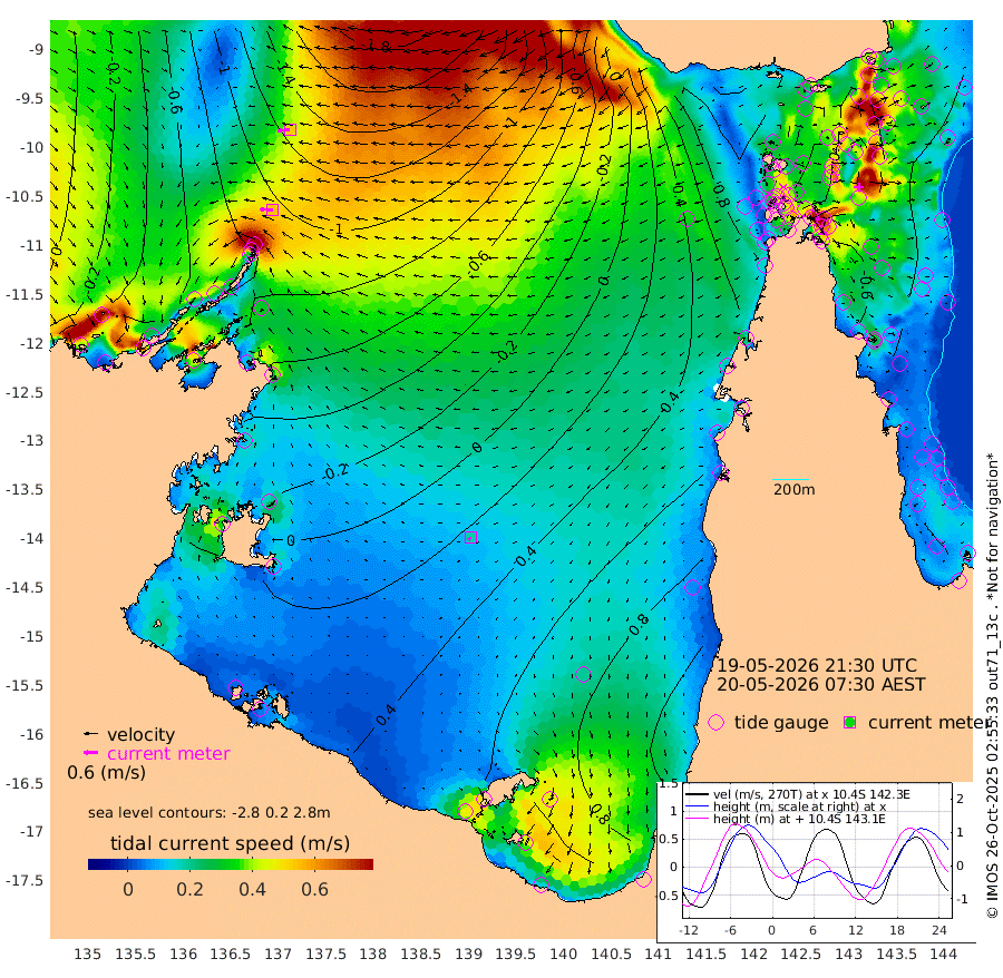 54cm/s -89T +3cm/s rms + 7cm/s -42T. ARA-GOC87 57m 18cm/s -137T +3cm/s rms + 2cm/s -2T. ARA-GOC87 60m 54cm/s -97T +2cm/s rms + 3cm/s 61T. ARA-GOC87 47m -47cm Daru -61cm Bobo Island -37cm Meer Island Barge -43cm Bramble Cay -49cm Unnamed Cay -56cm Pearce Cay -52cm Stephens Island -48cm Merrie England Shoals -44cm Mutacomal Reef -55cm Darnley Island Barge -32cm East Cay -56cm Yorke Island Barge -43cm Rennel Island -52cm Aureed Island -31cm Dungeness Reef -28cm Zagai Island -12cm Yam Island 30cm Dauan Island 15cm Saibai Island 44cm Phipi Reef -9cm Warrior Reef - West 30cm Mabuiag Island Barge -49cm Half Way Island -42cm Coconut Island -45cm Dugong Islet -28cm Poll Island -23cm Kirkcaldie Reef 2cm Suarji Island -34cm Sue Islet 80cm Hawkesbury Island 9cm Alert Patches -4cm Twin Island 76cm Badu Island 0cm St Pauls (Moa Island) 57cm Kubin (Moa Island) 25cm Ince Point 38cm Thursday Island 36cm Nardana Patches 64cm Turtle Head 70cm Round Island 88cm Goods Island 98cm Booby Island 94cm White Rocks Area 56cm Carpentaria -6cm Papou Point 83cm Bampfield Head 84cm Crab Island 94cm Red Wallis Island 81cm Packe Island -49cm Harrington Reef 101cm Herald Camp 1cm Sharp Point 56cm Red Island Point 23cm Possession Island -16cm Alpha Rock -24cm Frederick Point -53cm Wyborn Reef Light -49cm Tetley Island -27cm Triangle Reef -66cm Turtle Head Island -26cm Maclennan Cay -15cm Raine Island -47cm Mcsweeny Reef -43cm Collette Reef -27cm Shadwell Reef -50cm Hannibal Island -40cm Round Point 70cm Vrilya Point -32cm Cape Grenville -32cm Hicks Island -26cm Sir Charles Hardy Island -11cm Harvey Island -27cm Kay Reef -19cm Rocky Island -14cm Chapman Island -18cm Ham Reef -24cm Jubilee Reef -18cm Night Island -16cm Unnamed Reef No. 3 -21cm Morris Island -19cm 1st 3 Mile Opening -21cm Creech Reef -23cm Fife Island -29cm Eden Reef -23cm Stanley Island -31cm Normanby River -59cm Yabooma Island -82cm Hutchison River -65cm Elcho Island -52cm North West Crocodile Island -117cm Cape Wessel -97cm Stevens Island -147cm Guluwuru Island -74cm Hopeful Bay -102cm Auster Point -110cm Two Island Bay -135cm Cadell Strait -251cm Mallison Island -114cm Melville Bay (Gove Harbour) -131cm Truant Island -88cm Cape Arnhem -55cm Cape Grey -28cm Hawk Island -5cm Milner Bay (Groote Eylandt) 17cm Cape Beatrice 50cm West Island 50cm Centre Island 96cm Mornington Island 90cm West Wellesley Islands 135cm Bountiful Island 139cm Albert River Mouth 128cm Sweers Island 154cm Karumba 119cm Nassau River Offshore 108cm Christmas Creek 88cm Archer River 68cm Boyd Point 94cm Weipa (Humbug Point) 54cm Pennefather River 79cm Cullen Point