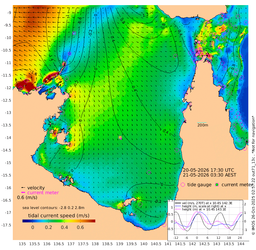 4cm/s 178T +3cm/s rms + 7cm/s -42T. ARA-GOC87 57m 41cm/s 162T +3cm/s rms + 2cm/s -2T. ARA-GOC87 60m 15cm/s -104T +2cm/s rms + 3cm/s 61T. ARA-GOC87 47m 126cm Daru 113cm Bobo Island 73cm Meer Island Barge 85cm Bramble Cay 111cm Unnamed Cay 108cm Pearce Cay 106cm Stephens Island 108cm Merrie England Shoals 122cm Mutacomal Reef 106cm Darnley Island Barge 76cm East Cay 116cm Yorke Island Barge 114cm Rennel Island 114cm Aureed Island 122cm Dungeness Reef 118cm Zagai Island 124cm Yam Island 119cm Dauan Island 116cm Saibai Island 110cm Phipi Reef 131cm Warrior Reef - West 94cm Mabuiag Island Barge 118cm Half Way Island 118cm Coconut Island 129cm Dugong Islet 121cm Poll Island 131cm Kirkcaldie Reef 117cm Suarji Island 127cm Sue Islet 81cm Hawkesbury Island 121cm Alert Patches 122cm Twin Island 78cm Badu Island 125cm St Pauls (Moa Island) 90cm Kubin (Moa Island) 110cm Ince Point 104cm Thursday Island 104cm Nardana Patches 95cm Turtle Head 73cm Round Island 75cm Goods Island 69cm Booby Island 61cm White Rocks Area 74cm Carpentaria 103cm Papou Point 70cm Bampfield Head 60cm Crab Island 73cm Red Wallis Island 91cm Packe Island 130cm Harrington Reef 89cm Herald Camp 39cm Sharp Point 80cm Red Island Point 92cm Possession Island 115cm Alpha Rock 125cm Frederick Point 119cm Wyborn Reef Light 121cm Tetley Island 73cm Triangle Reef 124cm Turtle Head Island 77cm Maclennan Cay 54cm Raine Island 108cm Mcsweeny Reef 100cm Collette Reef 76cm Shadwell Reef 103cm Hannibal Island 86cm Round Point 66cm Vrilya Point 85cm Cape Grenville 79cm Hicks Island 91cm Sir Charles Hardy Island 28cm Harvey Island 73cm Kay Reef 62cm Rocky Island 57cm Chapman Island 59cm Ham Reef 64cm Jubilee Reef 61cm Night Island 60cm Unnamed Reef No. 3 63cm Morris Island 63cm 1st 3 Mile Opening 67cm Creech Reef 67cm Fife Island 62cm Eden Reef 68cm Stanley Island 66cm Normanby River -182cm Yabooma Island -207cm Hutchison River -197cm Elcho Island -195cm North West Crocodile Island -89cm Cape Wessel -156cm Stevens Island -38cm Guluwuru Island -150cm Hopeful Bay -115cm Auster Point -112cm Two Island Bay -130cm Cadell Strait 113cm Mallison Island -55cm Melville Bay (Gove Harbour) -50cm Truant Island -28cm Cape Arnhem -36cm Cape Grey -45cm Hawk Island -61cm Milner Bay (Groote Eylandt) -53cm Cape Beatrice -42cm West Island -45cm Centre Island -31cm Mornington Island -22cm West Wellesley Islands -58cm Bountiful Island -125cm Albert River Mouth -146cm Sweers Island -108cm Karumba 18cm Nassau River Offshore 60cm Christmas Creek 55cm Archer River 68cm Boyd Point 59cm Weipa (Humbug Point) 56cm Pennefather River 65cm Cullen Point