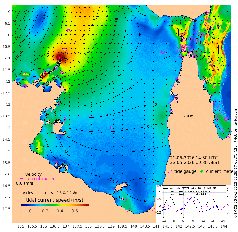 50cm/s 114T +3cm/s rms + 7cm/s -42T. ARA-GOC87 57m 14cm/s 153T +3cm/s rms + 2cm/s -2T. ARA-GOC87 60m 46cm/s 107T +2cm/s rms + 3cm/s 61T. ARA-GOC87 47m 43cm Daru 58cm Bobo Island 66cm Meer Island Barge 65cm Bramble Cay 53cm Unnamed Cay 68cm Pearce Cay 60cm Stephens Island 49cm Merrie England Shoals 41cm Mutacomal Reef 62cm Darnley Island Barge 69cm East Cay 55cm Yorke Island Barge 50cm Rennel Island 54cm Aureed Island 43cm Dungeness Reef 36cm Zagai Island 32cm Yam Island 39cm Dauan Island 35cm Saibai Island 24cm Phipi Reef 35cm Warrior Reef - West 32cm Mabuiag Island Barge 47cm Half Way Island 45cm Coconut Island 43cm Dugong Islet 36cm Poll Island 32cm Kirkcaldie Reef 23cm Suarji Island 32cm Sue Islet 86cm Hawkesbury Island 27cm Alert Patches 34cm Twin Island 76cm Badu Island 28cm St Pauls (Moa Island) 68cm Kubin (Moa Island) 36cm Ince Point 41cm Thursday Island 39cm Nardana Patches 56cm Turtle Head 64cm Round Island 79cm Goods Island 78cm Booby Island 76cm White Rocks Area 55cm Carpentaria 37cm Papou Point 95cm Bampfield Head 60cm Crab Island 73cm Red Wallis Island 67cm Packe Island 40cm Harrington Reef 75cm Herald Camp -9cm Sharp Point 51cm Red Island Point 40cm Possession Island 25cm Alpha Rock 37cm Frederick Point 48cm Wyborn Reef Light 45cm Tetley Island 61cm Triangle Reef 61cm Turtle Head Island 62cm Maclennan Cay 65cm Raine Island 52cm Mcsweeny Reef 52cm Collette Reef 57cm Shadwell Reef 57cm Hannibal Island 67cm Round Point 46cm Vrilya Point 56cm Cape Grenville 65cm Hicks Island 76cm Sir Charles Hardy Island 17cm Harvey Island 62cm Kay Reef 65cm Rocky Island 72cm Chapman Island 67cm Ham Reef 66cm Jubilee Reef 55cm Night Island 66cm Unnamed Reef No. 3 66cm Morris Island 66cm 1st 3 Mile Opening 66cm Creech Reef 60cm Fife Island 84cm Eden Reef 64cm Stanley Island 72cm Normanby River 172cm Yabooma Island 206cm Hutchison River 164cm Elcho Island 149cm North West Crocodile Island 147cm Cape Wessel 160cm Stevens Island 155cm Guluwuru Island 143cm Hopeful Bay 146cm Auster Point 151cm Two Island Bay 204cm Cadell Strait 178cm Mallison Island 128cm Melville Bay (Gove Harbour) 144cm Truant Island 86cm Cape Arnhem 28cm Cape Grey -2cm Hawk Island -63cm Milner Bay (Groote Eylandt) -79cm Cape Beatrice -147cm West Island -146cm Centre Island -144cm Mornington Island -143cm West Wellesley Islands -153cm Bountiful Island -184cm Albert River Mouth -207cm Sweers Island -186cm Karumba -94cm Nassau River Offshore -39cm Christmas Creek 10cm Archer River 30cm Boyd Point 34cm Weipa (Humbug Point) 21cm Pennefather River 43cm Cullen Point