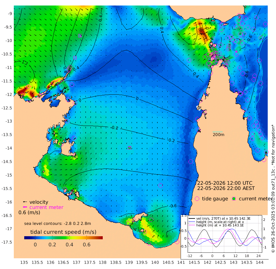 14cm/s 140T +3cm/s rms + 7cm/s -42T. ARA-GOC87 57m 25cm/s 11T +3cm/s rms + 2cm/s -2T. ARA-GOC87 60m 21cm/s 132T +2cm/s rms + 3cm/s 61T. ARA-GOC87 47m -59cm Daru -56cm Bobo Island -45cm Meer Island Barge -51cm Bramble Cay -54cm Unnamed Cay -58cm Pearce Cay -58cm Stephens Island -56cm Merrie England Shoals -53cm Mutacomal Reef -61cm Darnley Island Barge -46cm East Cay -59cm Yorke Island Barge -51cm Rennel Island -59cm Aureed Island -49cm Dungeness Reef -28cm Zagai Island -23cm Yam Island -17cm Dauan Island -11cm Saibai Island -27cm Phipi Reef -43cm Warrior Reef - West 28cm Mabuiag Island Barge -54cm Half Way Island -38cm Coconut Island -54cm Dugong Islet -32cm Poll Island -37cm Kirkcaldie Reef -12cm Suarji Island -34cm Sue Islet 93cm Hawkesbury Island 0cm Alert Patches -4cm Twin Island 78cm Badu Island -3cm St Pauls (Moa Island) 60cm Kubin (Moa Island) 19cm Ince Point 35cm Thursday Island 31cm Nardana Patches 47cm Turtle Head 83cm Round Island 83cm Goods Island 106cm Booby Island 104cm White Rocks Area 102cm Carpentaria 12cm Papou Point 136cm Bampfield Head 87cm Crab Island 95cm Red Wallis Island 61cm Packe Island -48cm Harrington Reef 91cm Herald Camp -9cm Sharp Point 48cm Red Island Point 35cm Possession Island -8cm Alpha Rock -23cm Frederick Point -38cm Wyborn Reef Light -33cm Tetley Island -34cm Triangle Reef -34cm Turtle Head Island -39cm Maclennan Cay -29cm Raine Island -55cm Mcsweeny Reef -53cm Collette Reef -42cm Shadwell Reef -59cm Hannibal Island -49cm Round Point 78cm Vrilya Point -47cm Cape Grenville -44cm Hicks Island -45cm Sir Charles Hardy Island -16cm Harvey Island -41cm Kay Reef -38cm Rocky Island -33cm Chapman Island -32cm Ham Reef -36cm Jubilee Reef -39cm Night Island -34cm Unnamed Reef No. 3 -38cm Morris Island -31cm 1st 3 Mile Opening -38cm Creech Reef -53cm Fife Island -44cm Eden Reef -42cm Stanley Island -46cm Normanby River 133cm Yabooma Island 144cm Hutchison River 131cm Elcho Island 126cm North West Crocodile Island 75cm Cape Wessel 107cm Stevens Island 27cm Guluwuru Island 97cm Hopeful Bay 89cm Auster Point 85cm Two Island Bay 75cm Cadell Strait -103cm Mallison Island 30cm Melville Bay (Gove Harbour) 38cm Truant Island 12cm Cape Arnhem 0cm Cape Grey -11cm Hawk Island -15cm Milner Bay (Groote Eylandt) -33cm Cape Beatrice -56cm West Island -48cm Centre Island -111cm Mornington Island -115cm West Wellesley Islands -122cm Bountiful Island -123cm Albert River Mouth -126cm Sweers Island -126cm Karumba -110cm Nassau River Offshore -81cm Christmas Creek -16cm Archer River 10cm Boyd Point 13cm Weipa (Humbug Point) 29cm Pennefather River 62cm Cullen Point