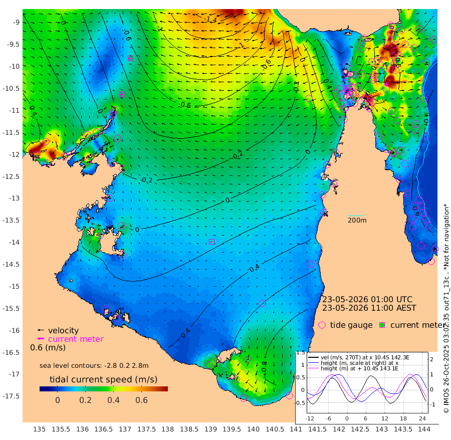 26cm/s -97T +3cm/s rms + 7cm/s -42T. ARA-GOC87 57m 17cm/s -112T +3cm/s rms + 2cm/s -2T. ARA-GOC87 60m 24cm/s -101T +2cm/s rms + 3cm/s 61T. ARA-GOC87 47m -60cm Daru -69cm Bobo Island -64cm Meer Island Barge -68cm Bramble Cay -72cm Unnamed Cay -65cm Pearce Cay -77cm Stephens Island -74cm Merrie England Shoals -61cm Mutacomal Reef -77cm Darnley Island Barge -68cm East Cay -71cm Yorke Island Barge -65cm Rennel Island -64cm Aureed Island -41cm Dungeness Reef -19cm Zagai Island -16cm Yam Island 44cm Dauan Island 25cm Saibai Island 57cm Phipi Reef -2cm Warrior Reef - West 24cm Mabuiag Island Barge -67cm Half Way Island -52cm Coconut Island -63cm Dugong Islet -32cm Poll Island -39cm Kirkcaldie Reef -9cm Suarji Island -40cm Sue Islet 36cm Hawkesbury Island -7cm Alert Patches -16cm Twin Island 53cm Badu Island -6cm St Pauls (Moa Island) 24cm Kubin (Moa Island) 6cm Ince Point 14cm Thursday Island 14cm Nardana Patches 31cm Turtle Head 21cm Round Island 42cm Goods Island 40cm Booby Island 38cm White Rocks Area -10cm Carpentaria -13cm Papou Point -1cm Bampfield Head 37cm Crab Island 39cm Red Wallis Island 35cm Packe Island -70cm Harrington Reef 23cm Herald Camp 2cm Sharp Point 26cm Red Island Point -5cm Possession Island -30cm Alpha Rock -39cm Frederick Point -67cm Wyborn Reef Light -61cm Tetley Island -49cm Triangle Reef -80cm Turtle Head Island -60cm Maclennan Cay -48cm Raine Island -71cm Mcsweeny Reef -68cm Collette Reef -56cm Shadwell Reef -75cm Hannibal Island -70cm Round Point 24cm Vrilya Point -69cm Cape Grenville -66cm Hicks Island -68cm Sir Charles Hardy Island -23cm Harvey Island -68cm Kay Reef -56cm Rocky Island -50cm Chapman Island -56cm Ham Reef -58cm Jubilee Reef -50cm Night Island -54cm Unnamed Reef No. 3 -59cm Morris Island -55cm 1st 3 Mile Opening -58cm Creech Reef -64cm Fife Island -64cm Eden Reef -64cm Stanley Island -72cm Normanby River 11cm Yabooma Island 16cm Hutchison River 20cm Elcho Island 30cm North West Crocodile Island -59cm Cape Wessel -14cm Stevens Island -74cm Guluwuru Island -8cm Hopeful Bay -38cm Auster Point -43cm Two Island Bay -26cm Cadell Strait -179cm Mallison Island -51cm Melville Bay (Gove Harbour) -67cm Truant Island -44cm Cape Arnhem -23cm Cape Grey 0cm Hawk Island 13cm Milner Bay (Groote Eylandt) 30cm Cape Beatrice 41cm West Island 43cm Centre Island 94cm Mornington Island 86cm West Wellesley Islands 129cm Bountiful Island 177cm Albert River Mouth 164cm Sweers Island 176cm Karumba 102cm Nassau River Offshore 75cm Christmas Creek 51cm Archer River 26cm Boyd Point 47cm Weipa (Humbug Point) 27cm Pennefather River 26cm Cullen Point