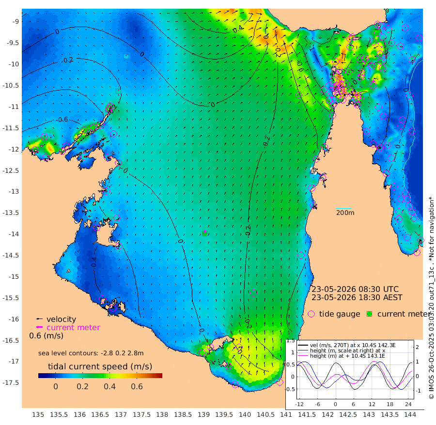 16cm/s -2T +3cm/s rms + 7cm/s -42T. ARA-GOC87 57m 29cm/s 10T +3cm/s rms + 2cm/s -2T. ARA-GOC87 60m 14cm/s 14T +2cm/s rms + 3cm/s 61T. ARA-GOC87 47m 11cm Daru 16cm Bobo Island 2cm Meer Island Barge 7cm Bramble Cay 16cm Unnamed Cay 5cm Pearce Cay 17cm Stephens Island 22cm Merrie England Shoals 13cm Mutacomal Reef 14cm Darnley Island Barge 2cm East Cay 14cm Yorke Island Barge 13cm Rennel Island 12cm Aureed Island -4cm Dungeness Reef -20cm Zagai Island -28cm Yam Island -93cm Dauan Island -76cm Saibai Island -83cm Phipi Reef -41cm Warrior Reef - West -68cm Mabuiag Island Barge 16cm Half Way Island 8cm Coconut Island 11cm Dugong Islet -8cm Poll Island -4cm Kirkcaldie Reef -18cm Suarji Island -5cm Sue Islet -130cm Hawkesbury Island -29cm Alert Patches -26cm Twin Island -124cm Badu Island -32cm St Pauls (Moa Island) -97cm Kubin (Moa Island) -51cm Ince Point -64cm Thursday Island -62cm Nardana Patches -91cm Turtle Head -90cm Round Island -120cm Goods Island -121cm Booby Island -113cm White Rocks Area -61cm Carpentaria -28cm Papou Point -95cm Bampfield Head -100cm Crab Island -118cm Red Wallis Island -109cm Packe Island 24cm Harrington Reef -118cm Herald Camp -2cm Sharp Point -82cm Red Island Point -39cm Possession Island -9cm Alpha Rock -6cm Frederick Point 15cm Wyborn Reef Light 10cm Tetley Island -10cm Triangle Reef 21cm Turtle Head Island -2cm Maclennan Cay -10cm Raine Island 16cm Mcsweeny Reef 13cm Collette Reef -1cm Shadwell Reef 17cm Hannibal Island 6cm Round Point -81cm Vrilya Point 11cm Cape Grenville 3cm Hicks Island -10cm Sir Charles Hardy Island 4cm Harvey Island 5cm Kay Reef -7cm Rocky Island -17cm Chapman Island -10cm Ham Reef -6cm Jubilee Reef -2cm Night Island -10cm Unnamed Reef No. 3 -3cm Morris Island -5cm 1st 3 Mile Opening -4cm Creech Reef 2cm Fife Island -9cm Eden Reef 1cm Stanley Island 3cm Normanby River -81cm Yabooma Island -88cm Hutchison River -70cm Elcho Island -73cm North West Crocodile Island -20cm Cape Wessel -50cm Stevens Island -14cm Guluwuru Island -49cm Hopeful Bay -29cm Auster Point -34cm Two Island Bay -72cm Cadell Strait 7cm Mallison Island -15cm Melville Bay (Gove Harbour) -13cm Truant Island 0cm Cape Arnhem 22cm Cape Grey 23cm Hawk Island 57cm Milner Bay (Groote Eylandt) 50cm Cape Beatrice 79cm West Island 81cm Centre Island 31cm Mornington Island 34cm West Wellesley Islands 6cm Bountiful Island 16cm Albert River Mouth 49cm Sweers Island 8cm Karumba -33cm Nassau River Offshore -62cm Christmas Creek -75cm Archer River -71cm Boyd Point -92cm Weipa (Humbug Point) -56cm Pennefather River -86cm Cullen Point