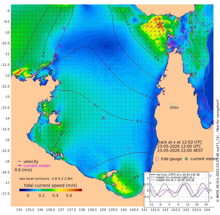 4cm/s -158T +3cm/s rms + 7cm/s -42T. ARA-GOC87 57m 27cm/s 11T +3cm/s rms + 2cm/s -2T. ARA-GOC87 60m 10cm/s 152T +2cm/s rms + 3cm/s 61T. ARA-GOC87 47m -40cm Daru -43cm Bobo Island -51cm Meer Island Barge -53cm Bramble Cay -42cm Unnamed Cay -52cm Pearce Cay -52cm Stephens Island -46cm Merrie England Shoals -34cm Mutacomal Reef -55cm Darnley Island Barge -54cm East Cay -46cm Yorke Island Barge -38cm Rennel Island -45cm Aureed Island -29cm Dungeness Reef -3cm Zagai Island 2cm Yam Island 0cm Dauan Island 6cm Saibai Island -5cm Phipi Reef -19cm Warrior Reef - West 41cm Mabuiag Island Barge -39cm Half Way Island -19cm Coconut Island -34cm Dugong Islet -9cm Poll Island -13cm Kirkcaldie Reef 18cm Suarji Island -9cm Sue Islet 73cm Hawkesbury Island 23cm Alert Patches 19cm Twin Island 64cm Badu Island 24cm St Pauls (Moa Island) 55cm Kubin (Moa Island) 35cm Ince Point 45cm Thursday Island 43cm Nardana Patches 46cm Turtle Head 78cm Round Island 66cm Goods Island 84cm Booby Island 85cm White Rocks Area 93cm Carpentaria 30cm Papou Point 119cm Bampfield Head 69cm Crab Island 75cm Red Wallis Island 51cm Packe Island -25cm Harrington Reef 79cm Herald Camp 5cm Sharp Point 43cm Red Island Point 49cm Possession Island 16cm Alpha Rock -1cm Frederick Point -20cm Wyborn Reef Light -13cm Tetley Island -39cm Triangle Reef -18cm Turtle Head Island -44cm Maclennan Cay -43cm Raine Island -46cm Mcsweeny Reef -47cm Collette Reef -46cm Shadwell Reef -53cm Hannibal Island -53cm Round Point 63cm Vrilya Point -48cm Cape Grenville -49cm Hicks Island -52cm Sir Charles Hardy Island -16cm Harvey Island -49cm Kay Reef -49cm Rocky Island -51cm Chapman Island -47cm Ham Reef -48cm Jubilee Reef -47cm Night Island -49cm Unnamed Reef No. 3 -51cm Morris Island -41cm 1st 3 Mile Opening -50cm Creech Reef -65cm Fife Island -63cm Eden Reef -53cm Stanley Island -59cm Normanby River 56cm Yabooma Island 56cm Hutchison River 55cm Elcho Island 53cm North West Crocodile Island 25cm Cape Wessel 39cm Stevens Island -14cm Guluwuru Island 34cm Hopeful Bay 35cm Auster Point 29cm Two Island Bay -3cm Cadell Strait -139cm Mallison Island -8cm Melville Bay (Gove Harbour) -2cm Truant Island -10cm Cape Arnhem -6cm Cape Grey -11cm Hawk Island 2cm Milner Bay (Groote Eylandt) -13cm Cape Beatrice -15cm West Island -6cm Centre Island -75cm Mornington Island -77cm West Wellesley Islands -88cm Bountiful Island -89cm Albert River Mouth -87cm Sweers Island -93cm Karumba -91cm Nassau River Offshore -72cm Christmas Creek -24cm Archer River 2cm Boyd Point 0cm Weipa (Humbug Point) 20cm Pennefather River 48cm Cullen Point