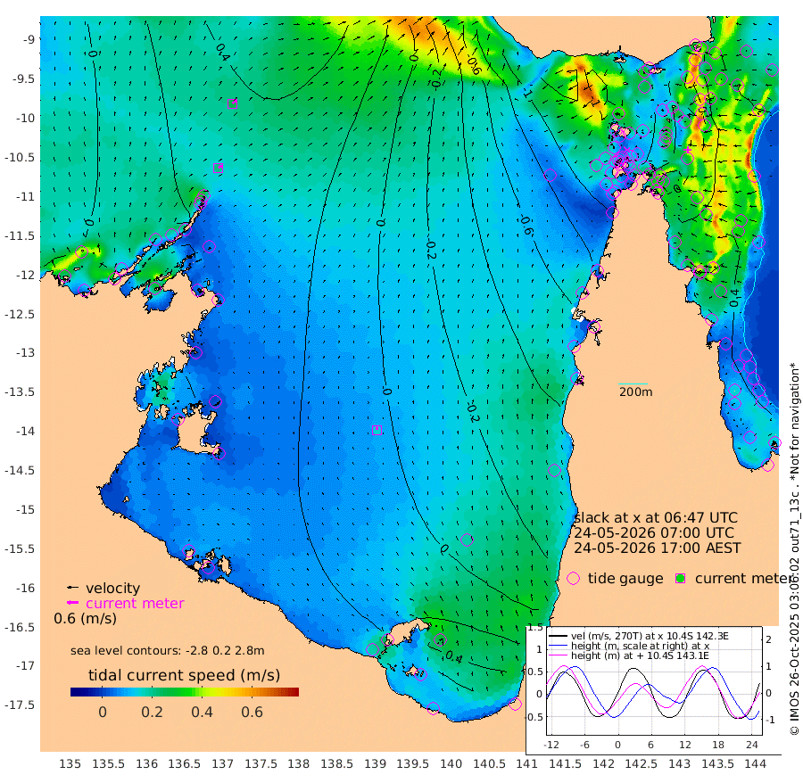 21cm/s 52T +3cm/s rms + 7cm/s -42T. ARA-GOC87 57m 16cm/s -11T +3cm/s rms + 2cm/s -2T. ARA-GOC87 60m 25cm/s 50T +2cm/s rms + 3cm/s 61T. ARA-GOC87 47m -4cm Daru 11cm Bobo Island 33cm Meer Island Barge 30cm Bramble Cay 12cm Unnamed Cay 15cm Pearce Cay 25cm Stephens Island 20cm Merrie England Shoals -8cm Mutacomal Reef 29cm Darnley Island Barge 34cm East Cay 13cm Yorke Island Barge 3cm Rennel Island 11cm Aureed Island -24cm Dungeness Reef -56cm Zagai Island -76cm Yam Island -115cm Dauan Island -105cm Saibai Island -104cm Phipi Reef -68cm Warrior Reef - West -121cm Mabuiag Island Barge 1cm Half Way Island -17cm Coconut Island -13cm Dugong Islet -46cm Poll Island -47cm Kirkcaldie Reef -73cm Suarji Island -45cm Sue Islet -184cm Hawkesbury Island -88cm Alert Patches -84cm Twin Island -166cm Badu Island -96cm St Pauls (Moa Island) -149cm Kubin (Moa Island) -110cm Ince Point -125cm Thursday Island -122cm Nardana Patches -136cm Turtle Head -153cm Round Island -160cm Goods Island -172cm Booby Island -164cm White Rocks Area -133cm Carpentaria -88cm Papou Point -169cm Bampfield Head -143cm Crab Island -168cm Red Wallis Island -155cm Packe Island -10cm Harrington Reef -183cm Herald Camp -26cm Sharp Point -128cm Red Island Point -103cm Possession Island -67cm Alpha Rock -53cm Frederick Point -13cm Wyborn Reef Light -25cm Tetley Island 12cm Triangle Reef -11cm Turtle Head Island 20cm Maclennan Cay 28cm Raine Island 18cm Mcsweeny Reef 22cm Collette Reef 25cm Shadwell Reef 29cm Hannibal Island 29cm Round Point -129cm Vrilya Point 27cm Cape Grenville 27cm Hicks Island 18cm Sir Charles Hardy Island 9cm Harvey Island 33cm Kay Reef 30cm Rocky Island 29cm Chapman Island 28cm Ham Reef 30cm Jubilee Reef 29cm Night Island 30cm Unnamed Reef No. 3 34cm Morris Island 28cm 1st 3 Mile Opening 31cm Creech Reef 47cm Fife Island 45cm Eden Reef 37cm Stanley Island 43cm Normanby River -7cm Yabooma Island 7cm Hutchison River 9cm Elcho Island -2cm North West Crocodile Island 35cm Cape Wessel 24cm Stevens Island 62cm Guluwuru Island 24cm Hopeful Bay 29cm Auster Point 22cm Two Island Bay 38cm Cadell Strait 149cm Mallison Island 53cm Melville Bay (Gove Harbour) 54cm Truant Island 48cm Cape Arnhem 50cm Cape Grey 47cm Hawk Island 56cm Milner Bay (Groote Eylandt) 53cm Cape Beatrice 54cm West Island 52cm Centre Island 62cm Mornington Island 66cm West Wellesley Islands 58cm Bountiful Island 89cm Albert River Mouth 118cm Sweers Island 72cm Karumba 12cm Nassau River Offshore -26cm Christmas Creek -57cm Archer River -74cm Boyd Point -85cm Weipa (Humbug Point) -75cm Pennefather River -123cm Cullen Point