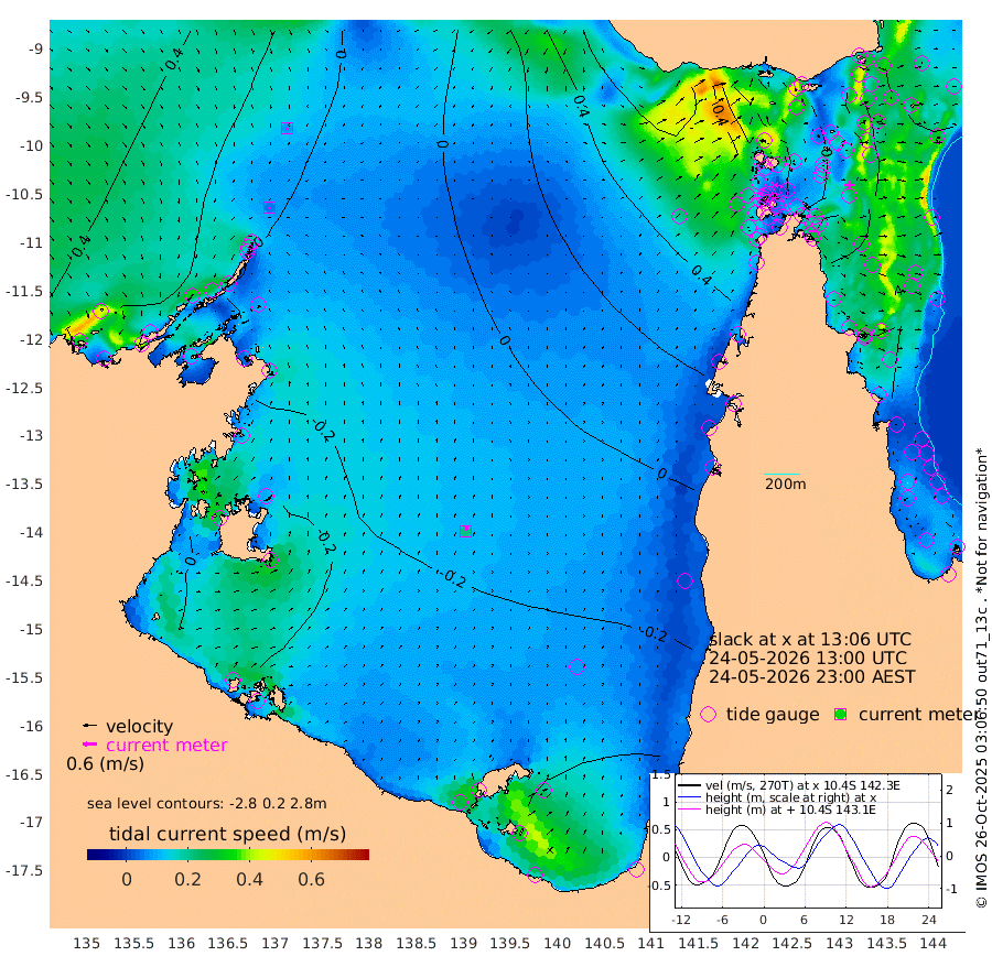 5cm/s -141T +3cm/s rms + 7cm/s -42T. ARA-GOC87 57m 21cm/s 12T +3cm/s rms + 2cm/s -2T. ARA-GOC87 60m 8cm/s 167T +2cm/s rms + 3cm/s 61T. ARA-GOC87 47m -31cm Daru -37cm Bobo Island -51cm Meer Island Barge -54cm Bramble Cay -38cm Unnamed Cay -48cm Pearce Cay -50cm Stephens Island -46cm Merrie England Shoals -27cm Mutacomal Reef -52cm Darnley Island Barge -57cm East Cay -39cm Yorke Island Barge -32cm Rennel Island -37cm Aureed Island -16cm Dungeness Reef 19cm Zagai Island 23cm Yam Island 37cm Dauan Island 39cm Saibai Island 29cm Phipi Reef 8cm Warrior Reef - West 63cm Mabuiag Island Barge -34cm Half Way Island -11cm Coconut Island -24cm Dugong Islet 6cm Poll Island 0cm Kirkcaldie Reef 40cm Suarji Island 7cm Sue Islet 83cm Hawkesbury Island 41cm Alert Patches 36cm Twin Island 81cm Badu Island 45cm St Pauls (Moa Island) 70cm Kubin (Moa Island) 52cm Ince Point 62cm Thursday Island 61cm Nardana Patches 63cm Turtle Head 89cm Round Island 78cm Goods Island 93cm Booby Island 93cm White Rocks Area 95cm Carpentaria 45cm Papou Point 126cm Bampfield Head 73cm Crab Island 83cm Red Wallis Island 65cm Packe Island -19cm Harrington Reef 93cm Herald Camp 12cm Sharp Point 52cm Red Island Point 62cm Possession Island 30cm Alpha Rock 11cm Frederick Point -14cm Wyborn Reef Light -5cm Tetley Island -36cm Triangle Reef -15cm Turtle Head Island -43cm Maclennan Cay -45cm Raine Island -42cm Mcsweeny Reef -44cm Collette Reef -45cm Shadwell Reef -51cm Hannibal Island -56cm Round Point 64cm Vrilya Point -49cm Cape Grenville -49cm Hicks Island -48cm Sir Charles Hardy Island -16cm Harvey Island -53cm Kay Reef -51cm Rocky Island -52cm Chapman Island -48cm Ham Reef -50cm Jubilee Reef -48cm Night Island -52cm Unnamed Reef No. 3 -53cm Morris Island -41cm 1st 3 Mile Opening -51cm Creech Reef -69cm Fife Island -66cm Eden Reef -56cm Stanley Island -65cm Normanby River 34cm Yabooma Island 32cm Hutchison River 31cm Elcho Island 29cm North West Crocodile Island 10cm Cape Wessel 17cm Stevens Island -19cm Guluwuru Island 13cm Hopeful Bay 18cm Auster Point 11cm Two Island Bay -20cm Cadell Strait -133cm Mallison Island -14cm Melville Bay (Gove Harbour) -9cm Truant Island -12cm Cape Arnhem -8cm Cape Grey -12cm Hawk Island 0cm Milner Bay (Groote Eylandt) -14cm Cape Beatrice -13cm West Island -4cm Centre Island -63cm Mornington Island -63cm West Wellesley Islands -69cm Bountiful Island -74cm Albert River Mouth -77cm Sweers Island -80cm Karumba -74cm Nassau River Offshore -54cm Christmas Creek -14cm Archer River 12cm Boyd Point 12cm Weipa (Humbug Point) 22cm Pennefather River 55cm Cullen Point