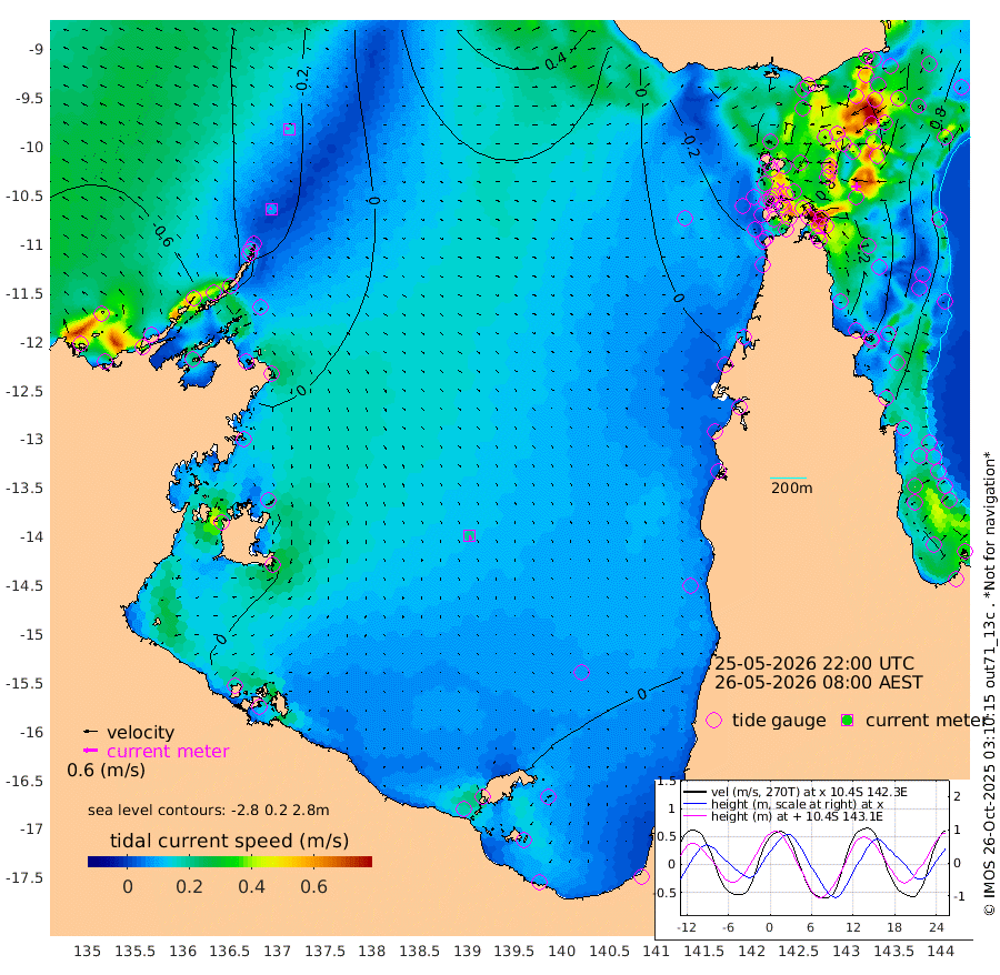 8cm/s -67T +3cm/s rms + 7cm/s -42T. ARA-GOC87 57m 20cm/s 168T +3cm/s rms + 2cm/s -2T. ARA-GOC87 60m 14cm/s -76T +2cm/s rms + 3cm/s 61T. ARA-GOC87 47m 105cm Daru 106cm Bobo Island 61cm Meer Island Barge 84cm Bramble Cay 100cm Unnamed Cay 102cm Pearce Cay 100cm Stephens Island 104cm Merrie England Shoals 110cm Mutacomal Reef 90cm Darnley Island Barge 73cm East Cay 95cm Yorke Island Barge 101cm Rennel Island 98cm Aureed Island 93cm Dungeness Reef 66cm Zagai Island 80cm Yam Island 22cm Dauan Island 25cm Saibai Island 35cm Phipi Reef 73cm Warrior Reef - West 16cm Mabuiag Island Barge 106cm Half Way Island 94cm Coconut Island 108cm Dugong Islet 87cm Poll Island 97cm Kirkcaldie Reef 63cm Suarji Island 81cm Sue Islet 5cm Hawkesbury Island 59cm Alert Patches 70cm Twin Island -12cm Badu Island 64cm St Pauls (Moa Island) 23cm Kubin (Moa Island) 44cm Ince Point 32cm Thursday Island 34cm Nardana Patches 15cm Turtle Head 7cm Round Island -11cm Goods Island -27cm Booby Island -20cm White Rocks Area -22cm Carpentaria 58cm Papou Point -30cm Bampfield Head -23cm Crab Island -12cm Red Wallis Island 21cm Packe Island 116cm Harrington Reef 8cm Herald Camp 21cm Sharp Point 24cm Red Island Point 39cm Possession Island 71cm Alpha Rock 89cm Frederick Point 102cm Wyborn Reef Light 100cm Tetley Island 57cm Triangle Reef 106cm Turtle Head Island 65cm Maclennan Cay 38cm Raine Island 94cm Mcsweeny Reef 84cm Collette Reef 56cm Shadwell Reef 93cm Hannibal Island 88cm Round Point -19cm Vrilya Point 81cm Cape Grenville 73cm Hicks Island 73cm Sir Charles Hardy Island 26cm Harvey Island 69cm Kay Reef 53cm Rocky Island 43cm Chapman Island 45cm Ham Reef 49cm Jubilee Reef 52cm Night Island 47cm Unnamed Reef No. 3 55cm Morris Island 38cm 1st 3 Mile Opening 51cm Creech Reef 60cm Fife Island 55cm Eden Reef 57cm Stanley Island 71cm Normanby River -59cm Yabooma Island -65cm Hutchison River -65cm Elcho Island -56cm North West Crocodile Island -24cm Cape Wessel -48cm Stevens Island -13cm Guluwuru Island -47cm Hopeful Bay -39cm Auster Point -23cm Two Island Bay -31cm Cadell Strait 30cm Mallison Island -18cm Melville Bay (Gove Harbour) -19cm Truant Island -13cm Cape Arnhem -16cm Cape Grey -11cm Hawk Island -23cm Milner Bay (Groote Eylandt) -12cm Cape Beatrice -2cm West Island -8cm Centre Island 7cm Mornington Island 2cm West Wellesley Islands -3cm Bountiful Island -35cm Albert River Mouth -41cm Sweers Island -16cm Karumba 26cm Nassau River Offshore 28cm Christmas Creek 2cm Archer River -1cm Boyd Point -9cm Weipa (Humbug Point) -11cm Pennefather River -11cm Cullen Point